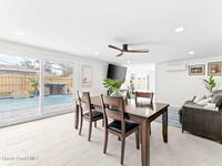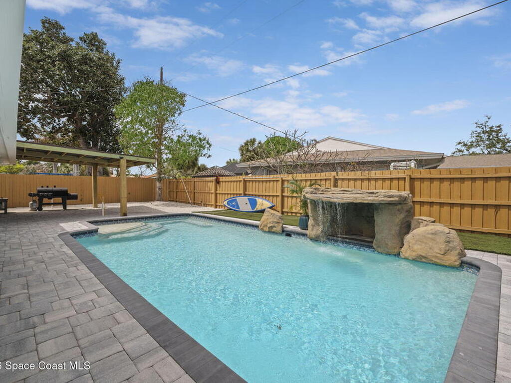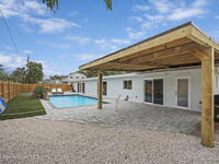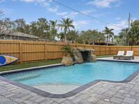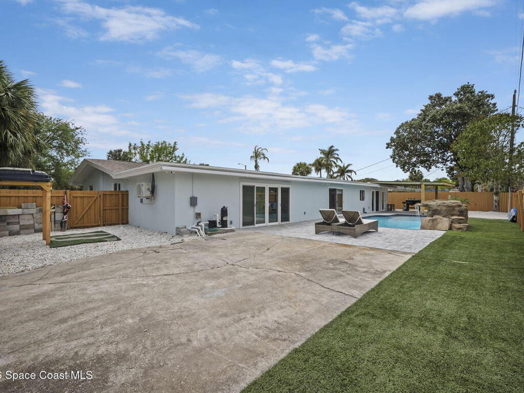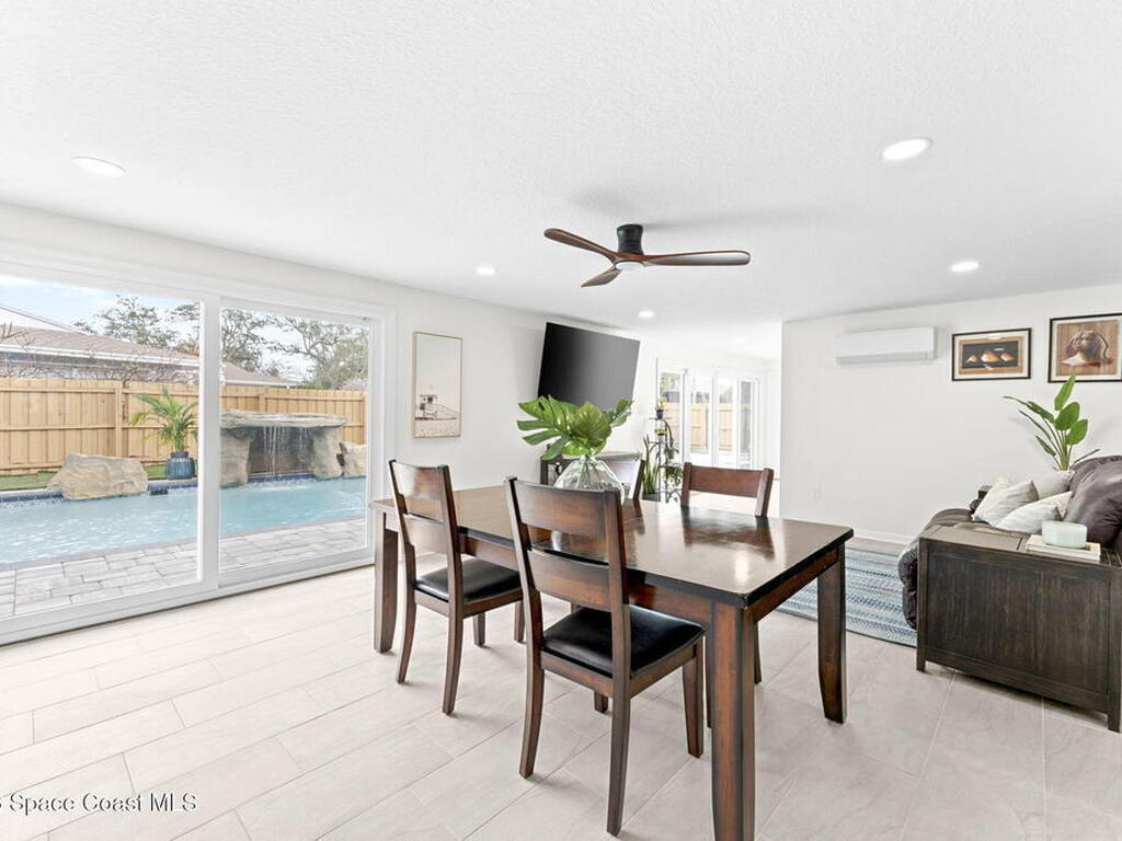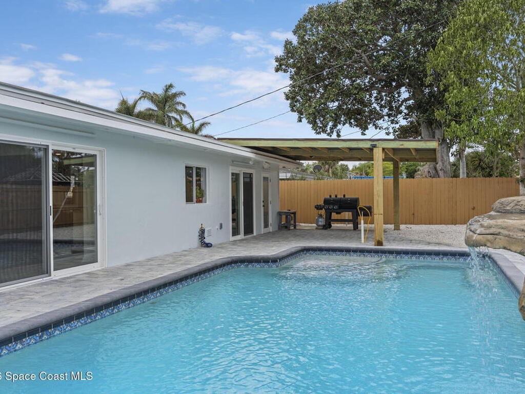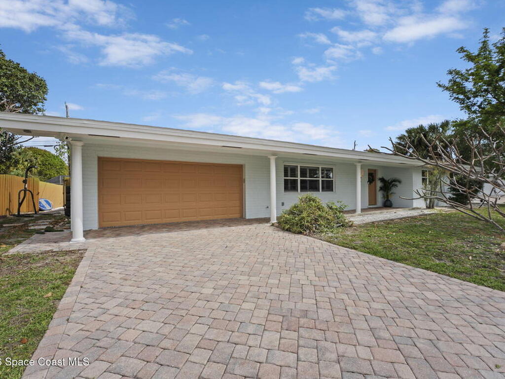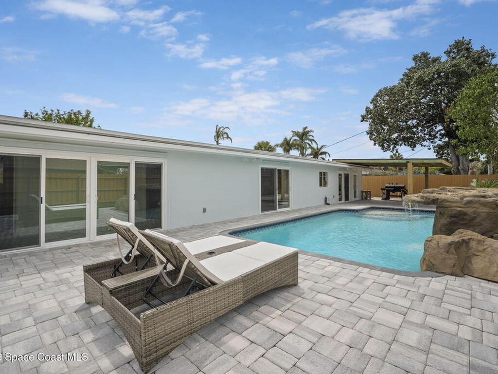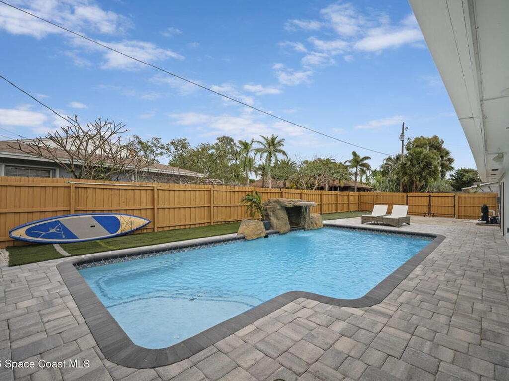 This stunning, fully remodeled Indialantic home offers a thoughtfully redesigned living space with updated mechanical systems, providing both peace of mind and the coastal lifestyle you've been dreaming of. Custom upgrades throughout include a luxurious primary suite, open and bright living areas with pool views, and an exceptional outdoor entertaining space. The main living area features vaulted ceilings, while the primary suite boasts an oversized dressing area, built-in closet systems, and an impressive new bathroom with one of the largest walk-in showers you'll ever see. Step outside to an incredible outdoor oasis with a massive pool, paver patio, and an 18' x 18' awning, perfect for entertaining and relaxing. The remodeled garage is climate-controlled with a new mini-split, epoxy flooring, and a separate workshop. A side-entry double gate and concrete drive provide ample space for boat or RV parking. Recent mechanical updates include PVC plumbing, new electrical system, new HVAC