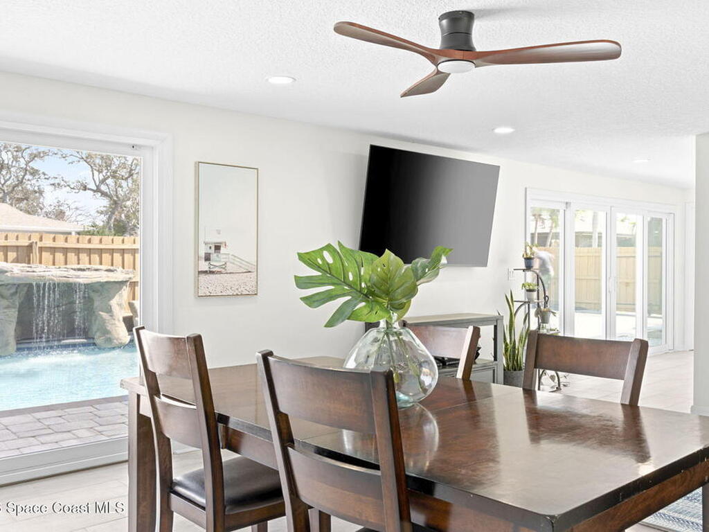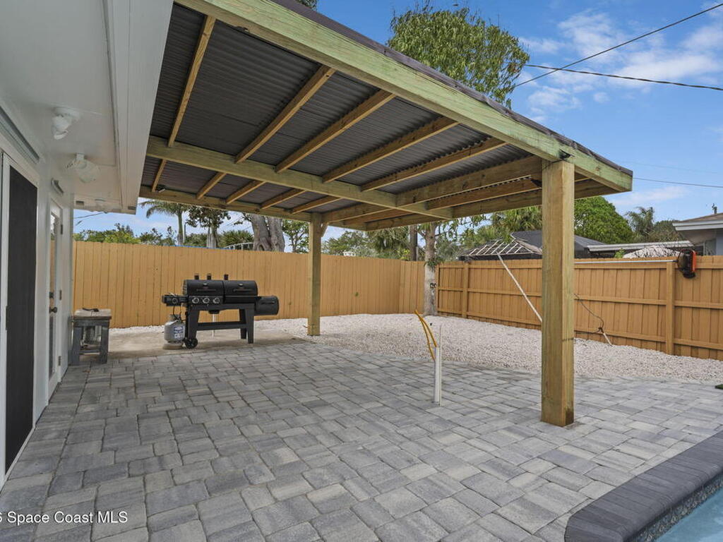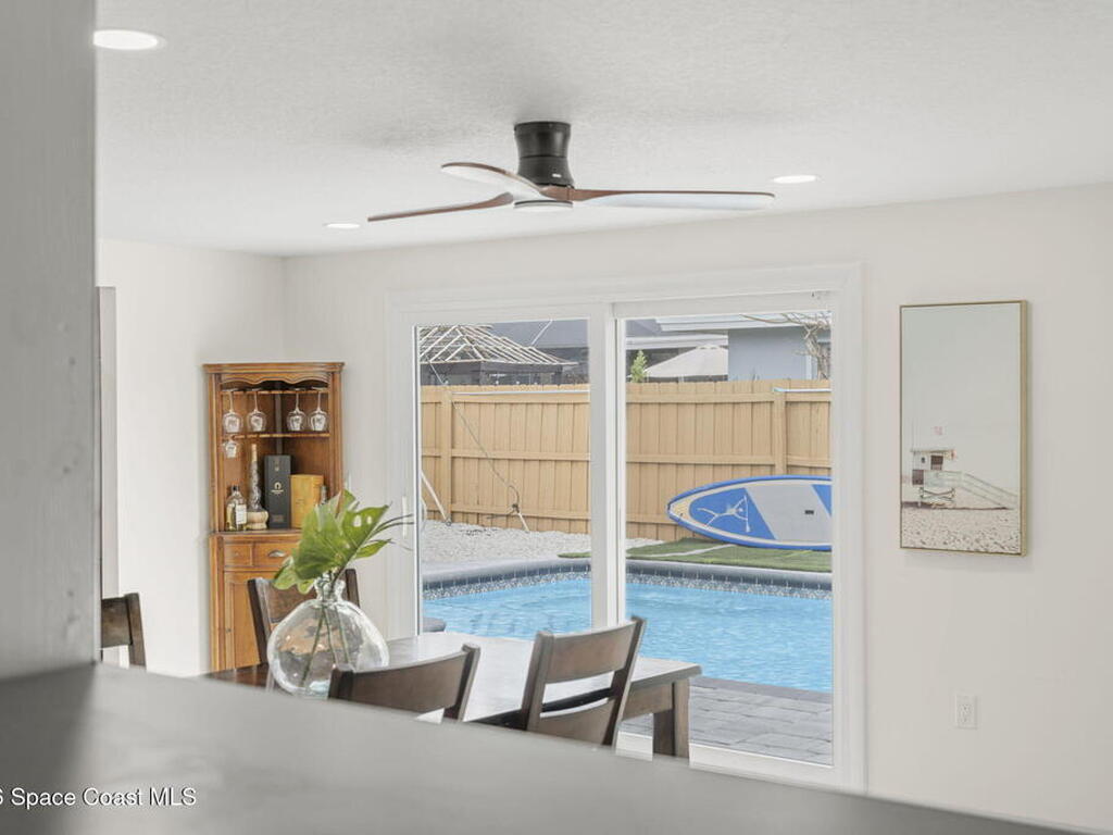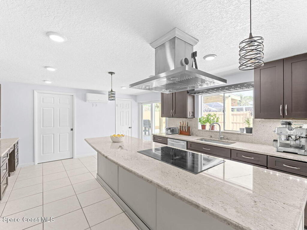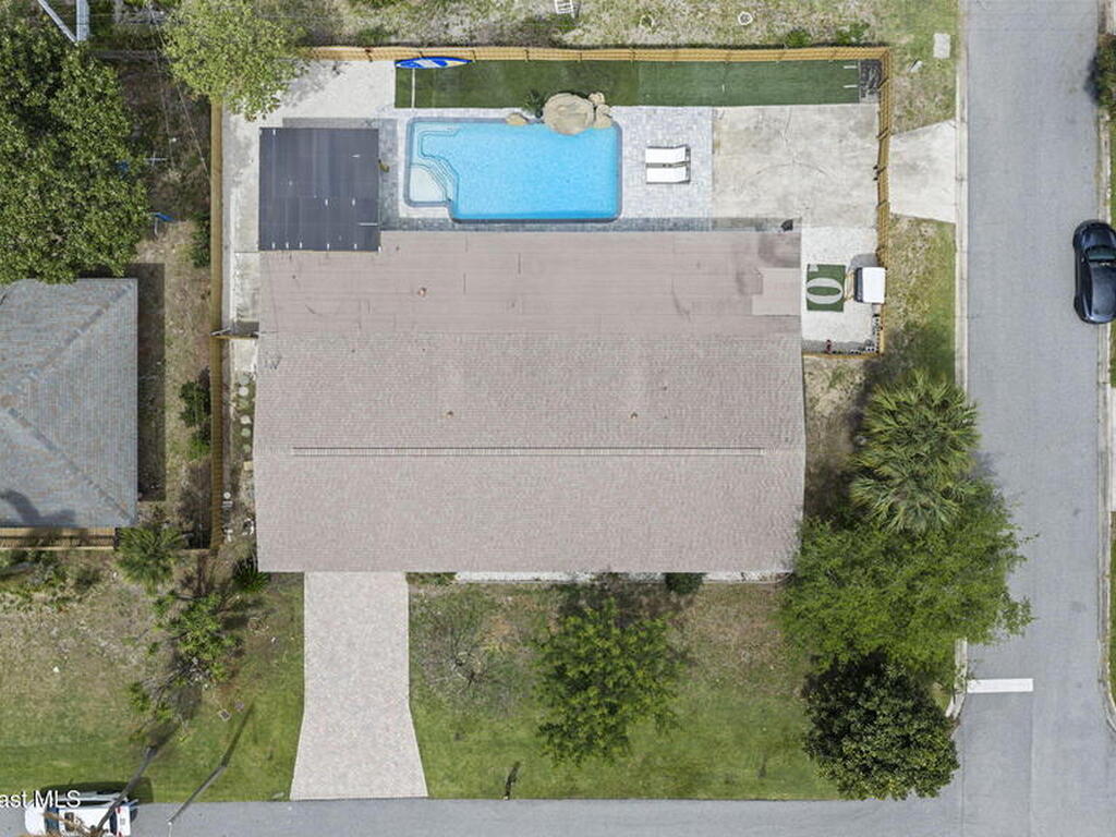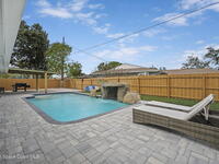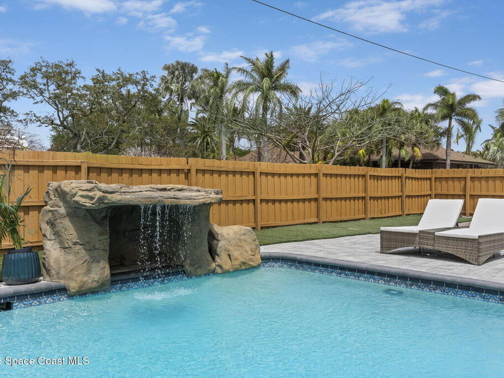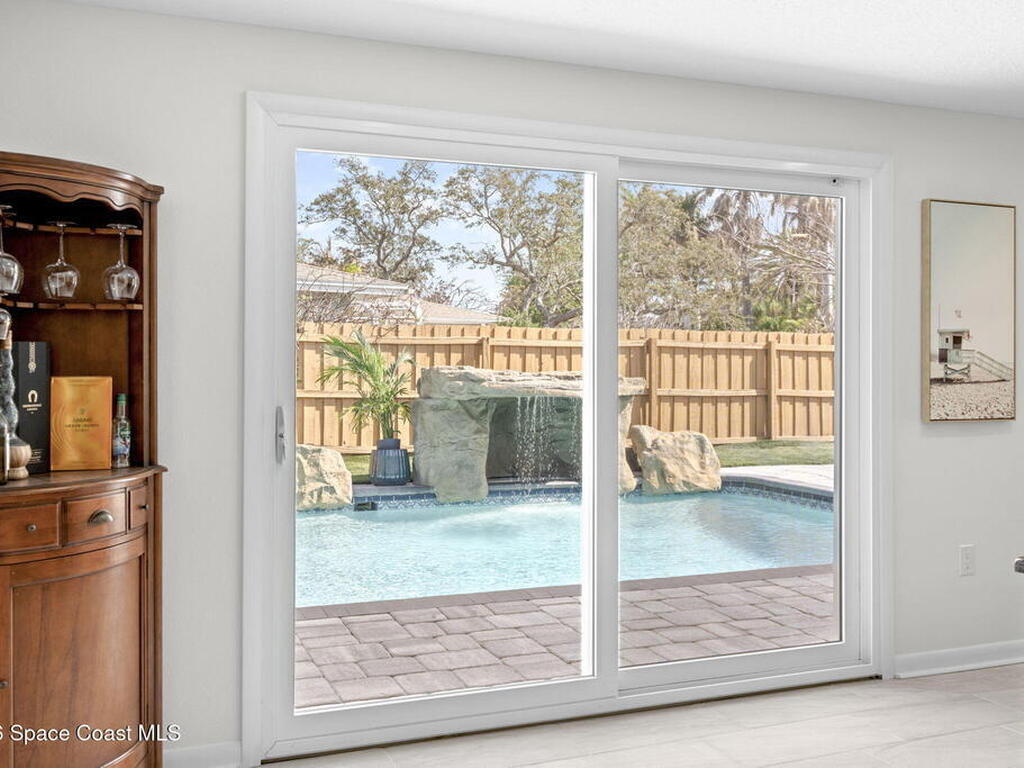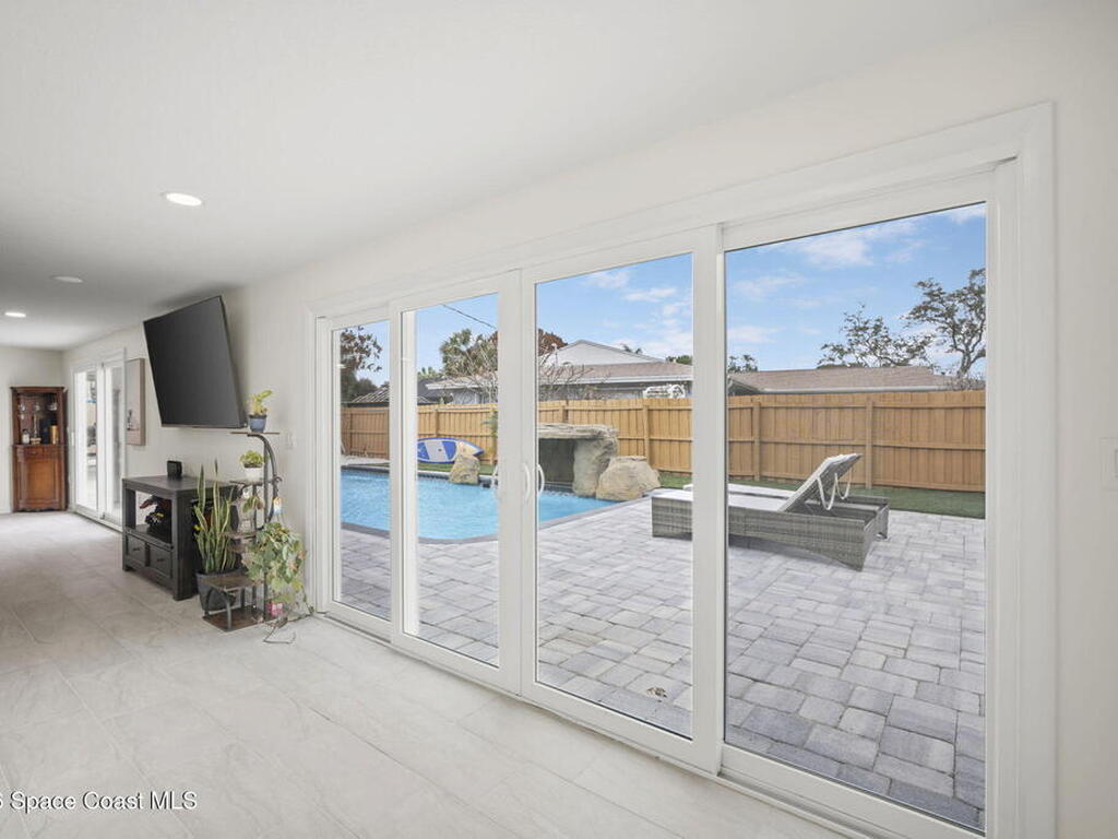 This stunning, fully remodeled Indialantic home offers a thoughtfully redesigned living space with updated mechanical systems, providing both peace of mind and the coastal lifestyle you've been dreaming of. Custom upgrades throughout include a luxurious primary suite, open and bright living areas with pool views, and an exceptional outdoor entertaining space. The main living area features vaulted ceilings, while the primary suite boasts an oversized dressing area, built-in closet systems, and an impressive new bathroom with one of the largest walk-in showers you'll ever see. Step outside to an incredible outdoor oasis with a massive pool, paver patio, and an 18' x 18' awning, perfect for entertaining and relaxing. The remodeled garage is climate-controlled with a new mini-split, epoxy flooring, and a separate workshop. A side-entry double gate and concrete drive provide ample space for boat or RV parking. Recent mechanical updates include PVC plumbing, new electrical system, new HVAC