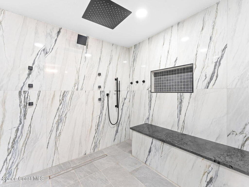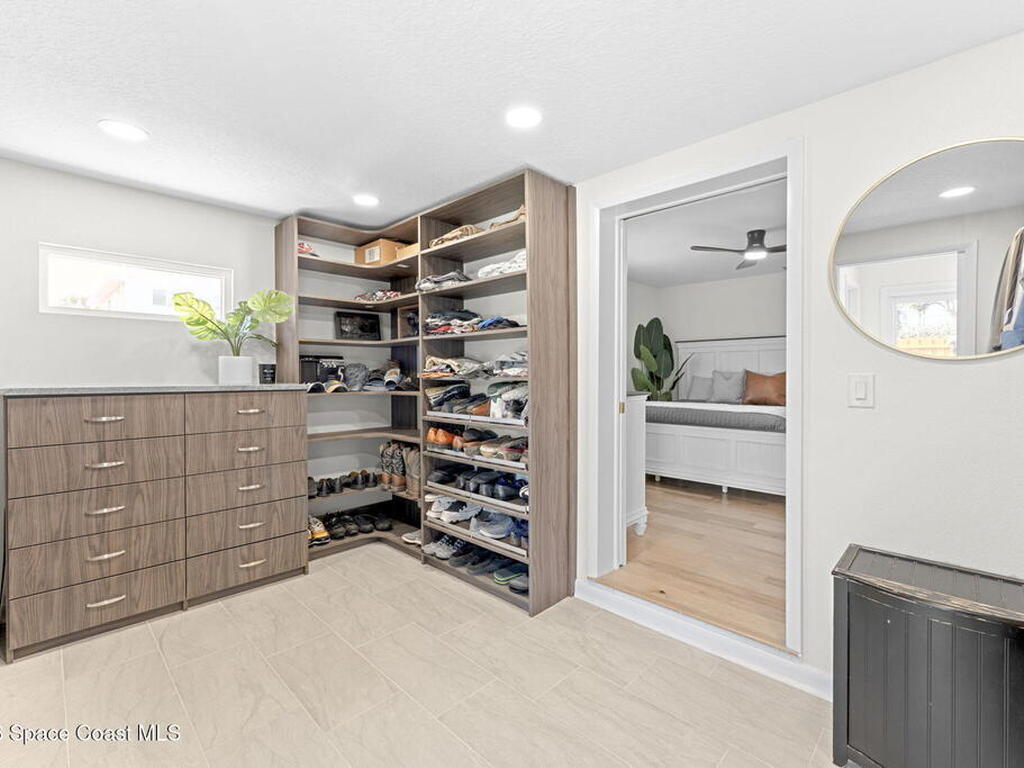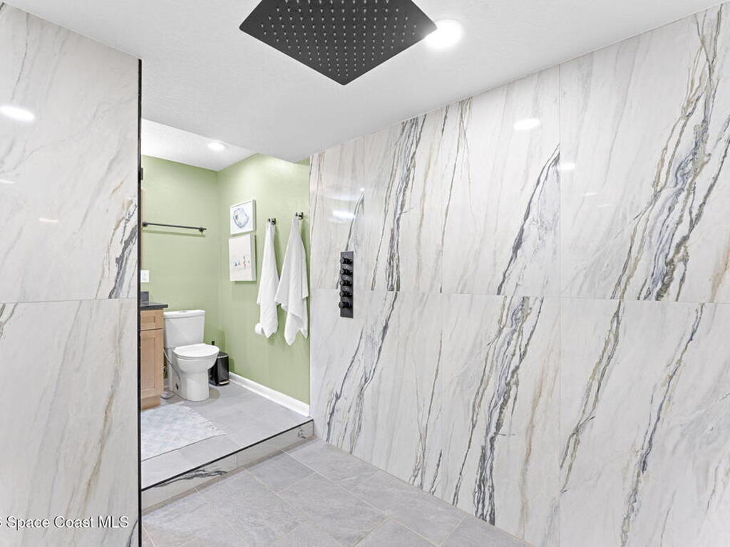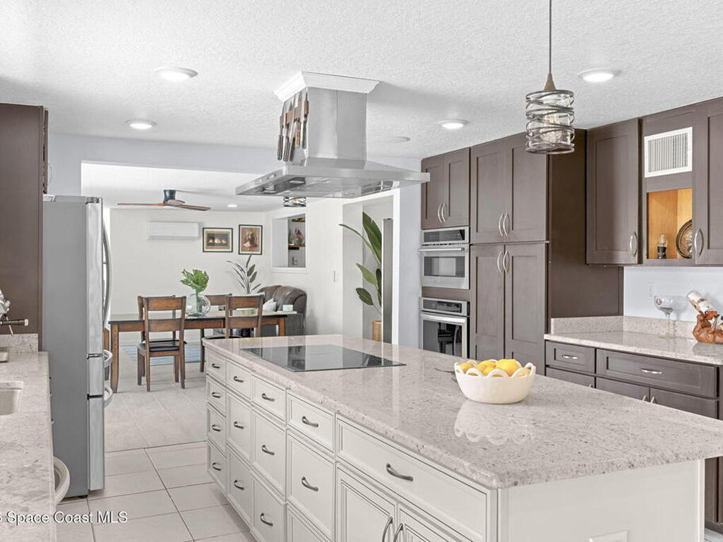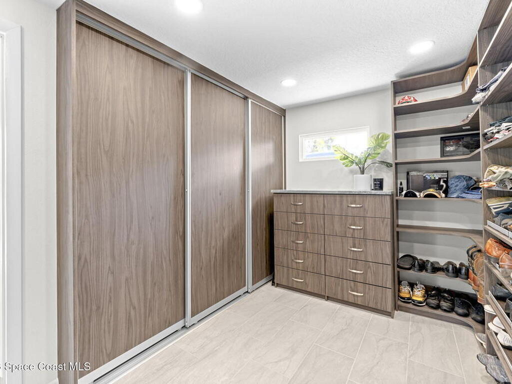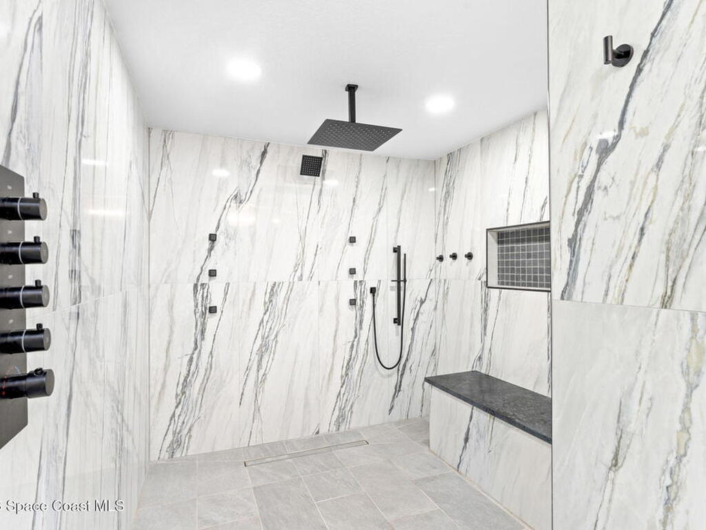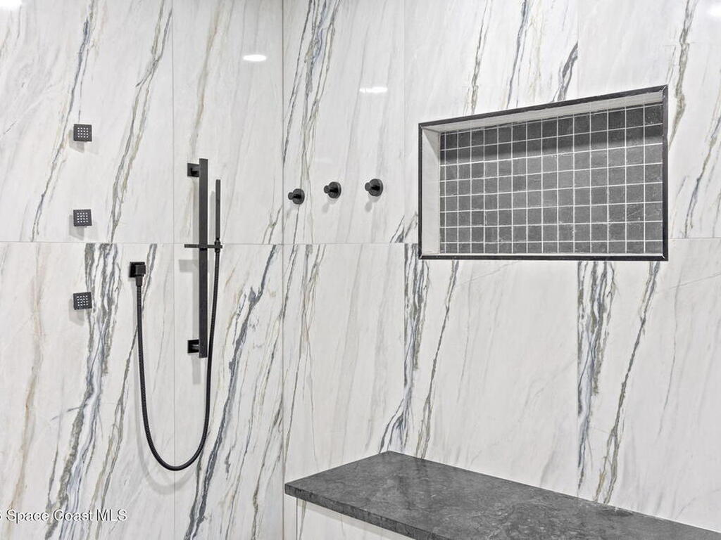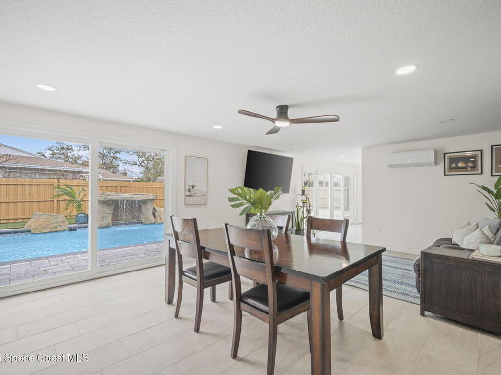 This stunning, fully remodeled Indialantic home offers a thoughtfully redesigned living space with updated mechanical systems, providing both peace of mind and the coastal lifestyle you've been dreaming of. Custom upgrades throughout include a luxurious primary suite, open and bright living areas with pool views, and an exceptional outdoor entertaining space. The main living area features vaulted ceilings, while the primary suite boasts an oversized dressing area, built-in closet systems, and an impressive new bathroom with one of the largest walk-in showers you'll ever see. Step outside to an incredible outdoor oasis with a massive pool, paver patio, and an 18' x 18' awning, perfect for entertaining and relaxing. The remodeled garage is climate-controlled with a new mini-split, epoxy flooring, and a separate workshop. A side-entry double gate and concrete drive provide ample space for boat or RV parking. Recent mechanical updates include PVC plumbing, new electrical system, new HVAC
