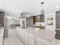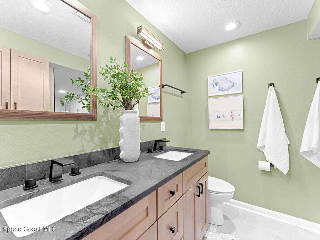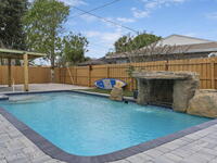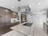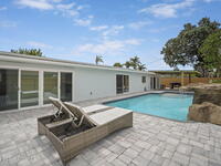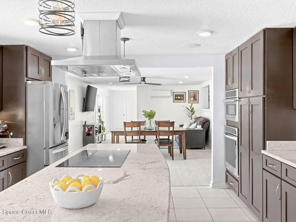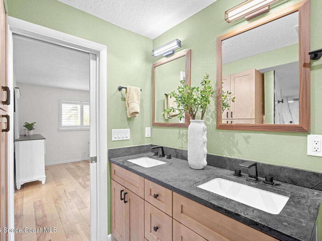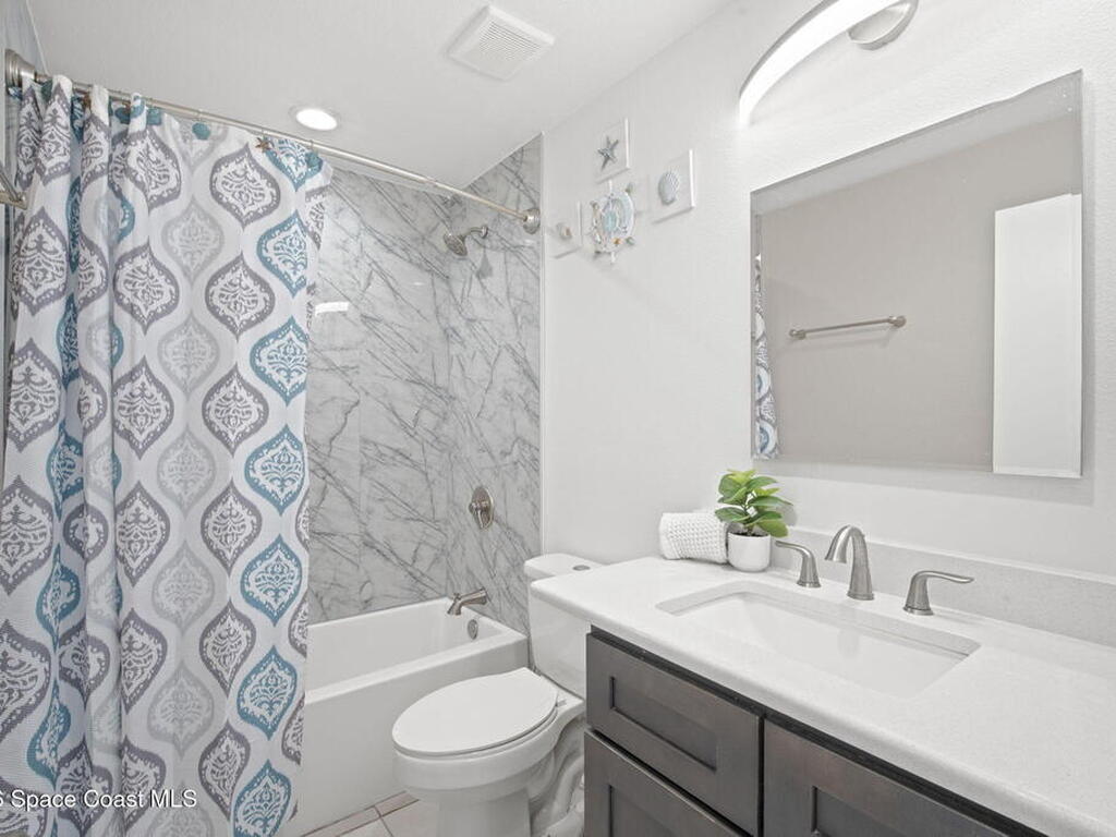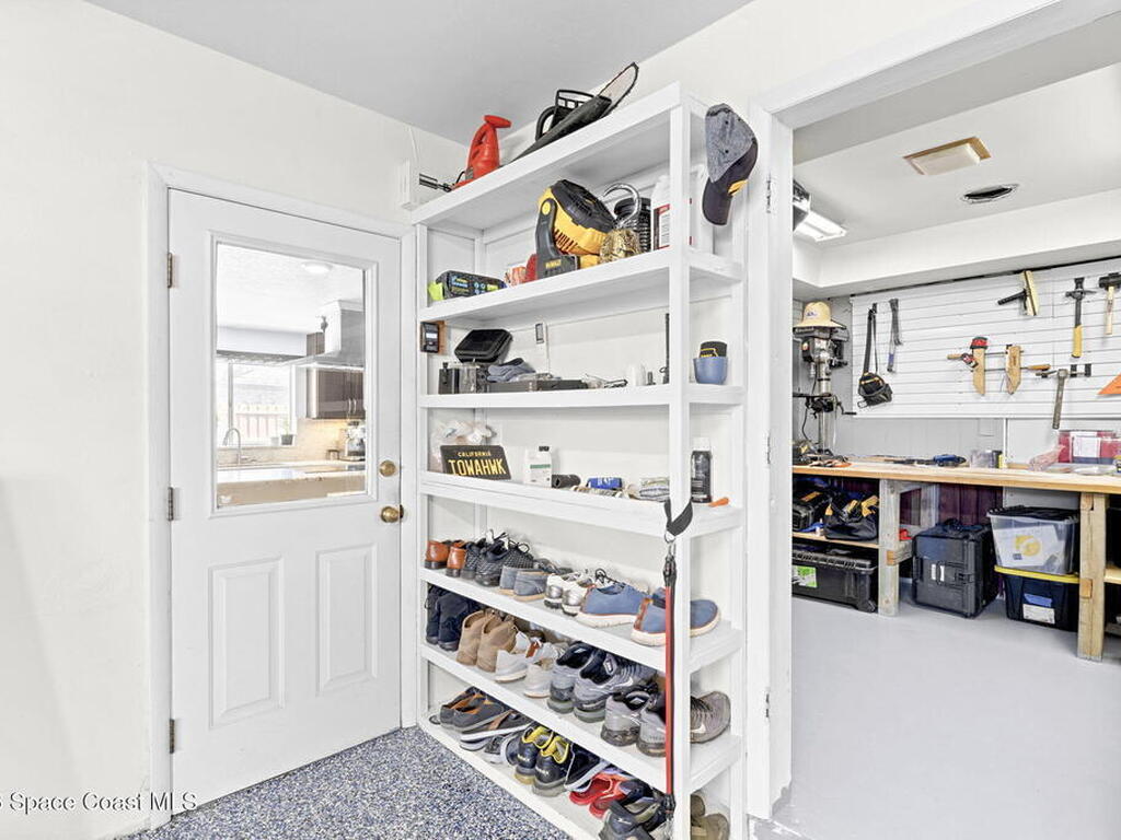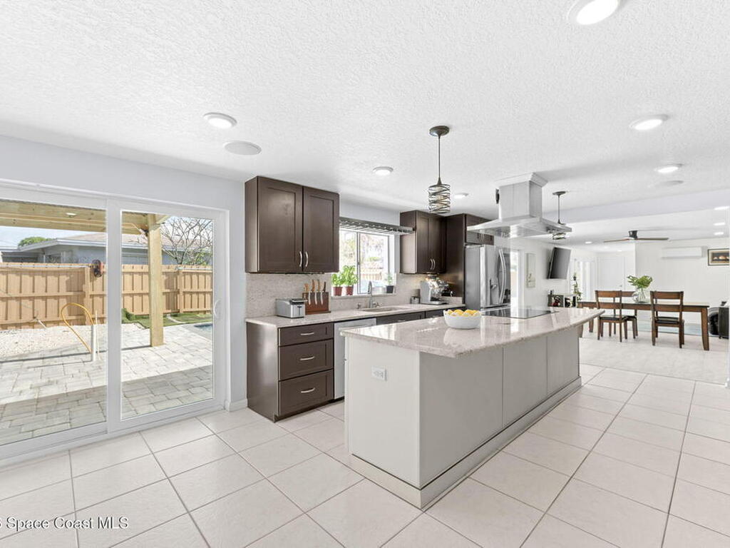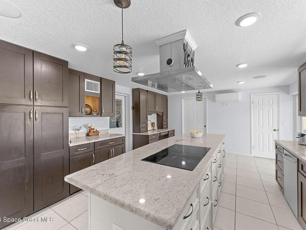 This stunning, fully remodeled Indialantic home offers a thoughtfully redesigned living space with updated mechanical systems, providing both peace of mind and the coastal lifestyle you've been dreaming of. Custom upgrades throughout include a luxurious primary suite, open and bright living areas with pool views, and an exceptional outdoor entertaining space. The main living area features vaulted ceilings, while the primary suite boasts an oversized dressing area, built-in closet systems, and an impressive new bathroom with one of the largest walk-in showers you'll ever see. Step outside to an incredible outdoor oasis with a massive pool, paver patio, and an 18' x 18' awning, perfect for entertaining and relaxing. The remodeled garage is climate-controlled with a new mini-split, epoxy flooring, and a separate workshop. A side-entry double gate and concrete drive provide ample space for boat or RV parking. Recent mechanical updates include PVC plumbing, new electrical system, new HVAC