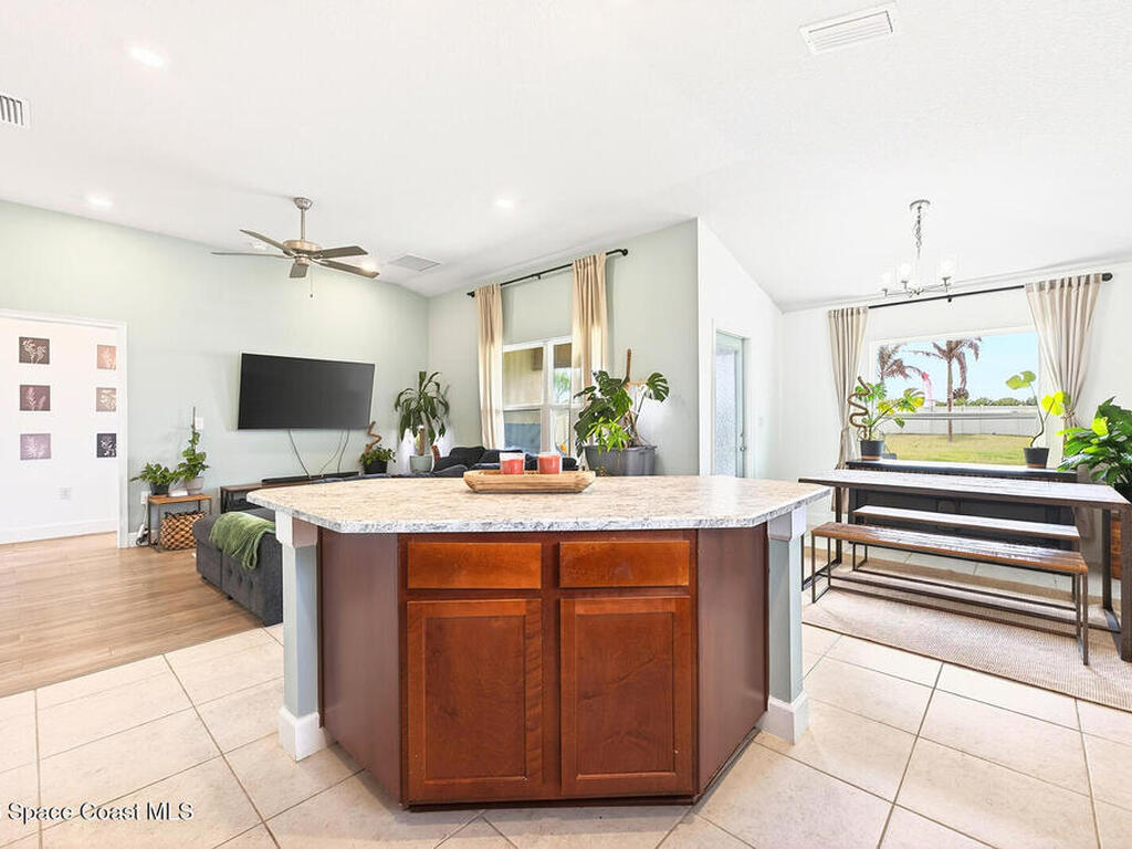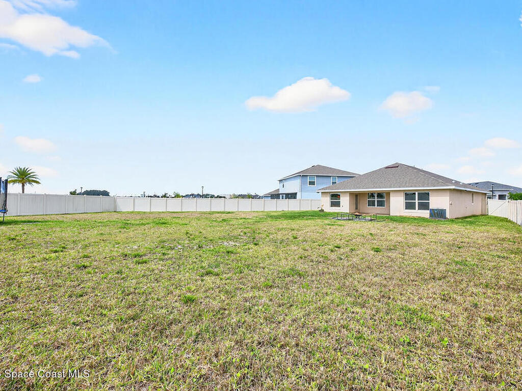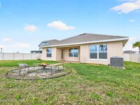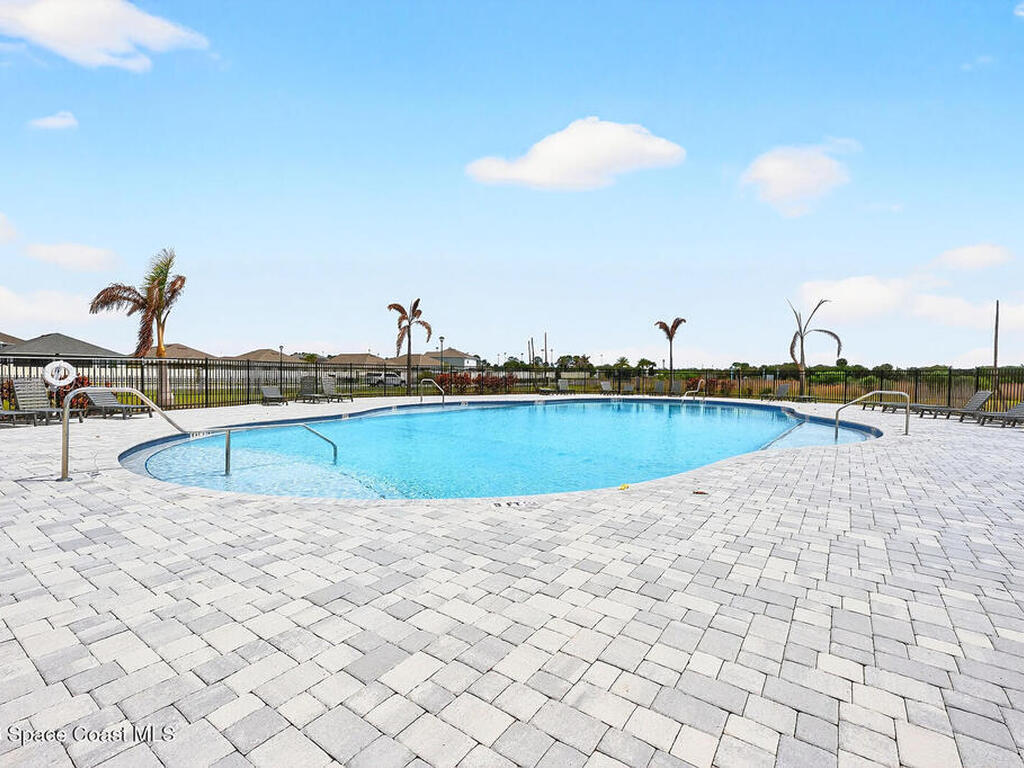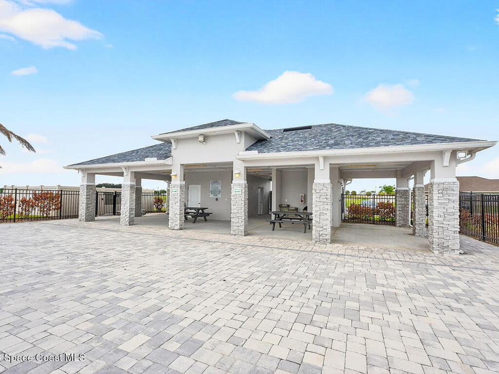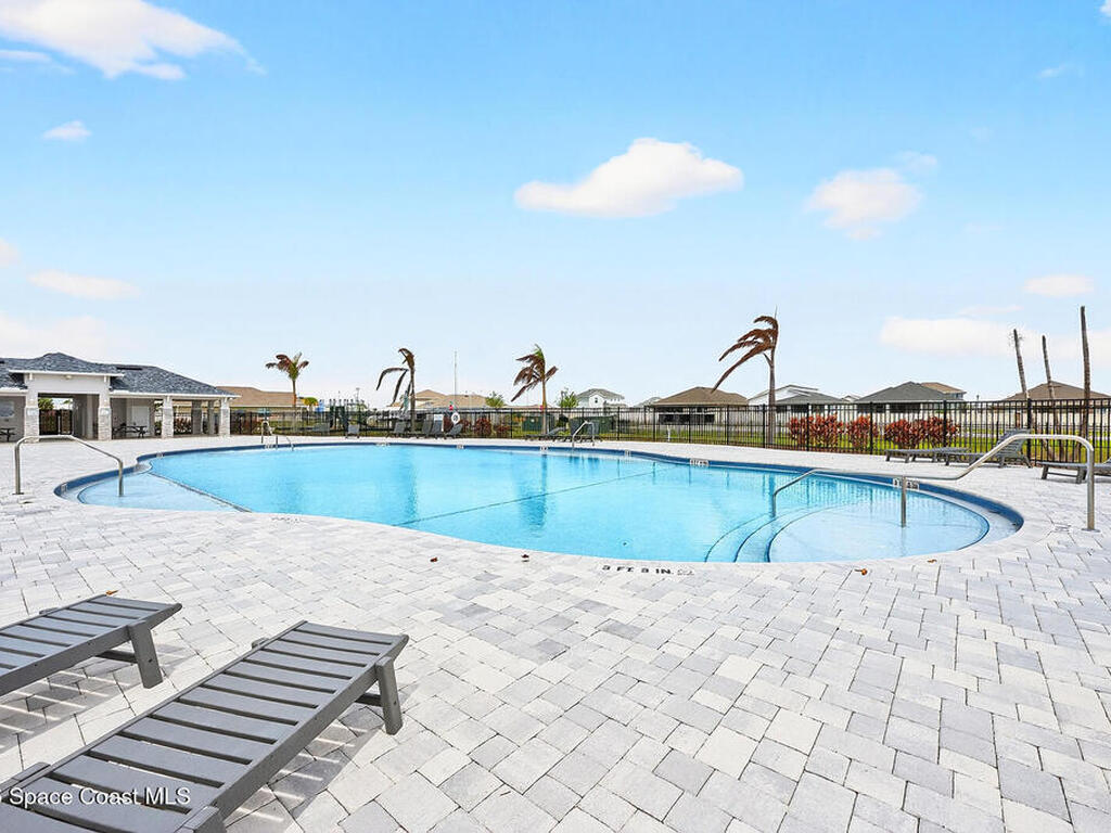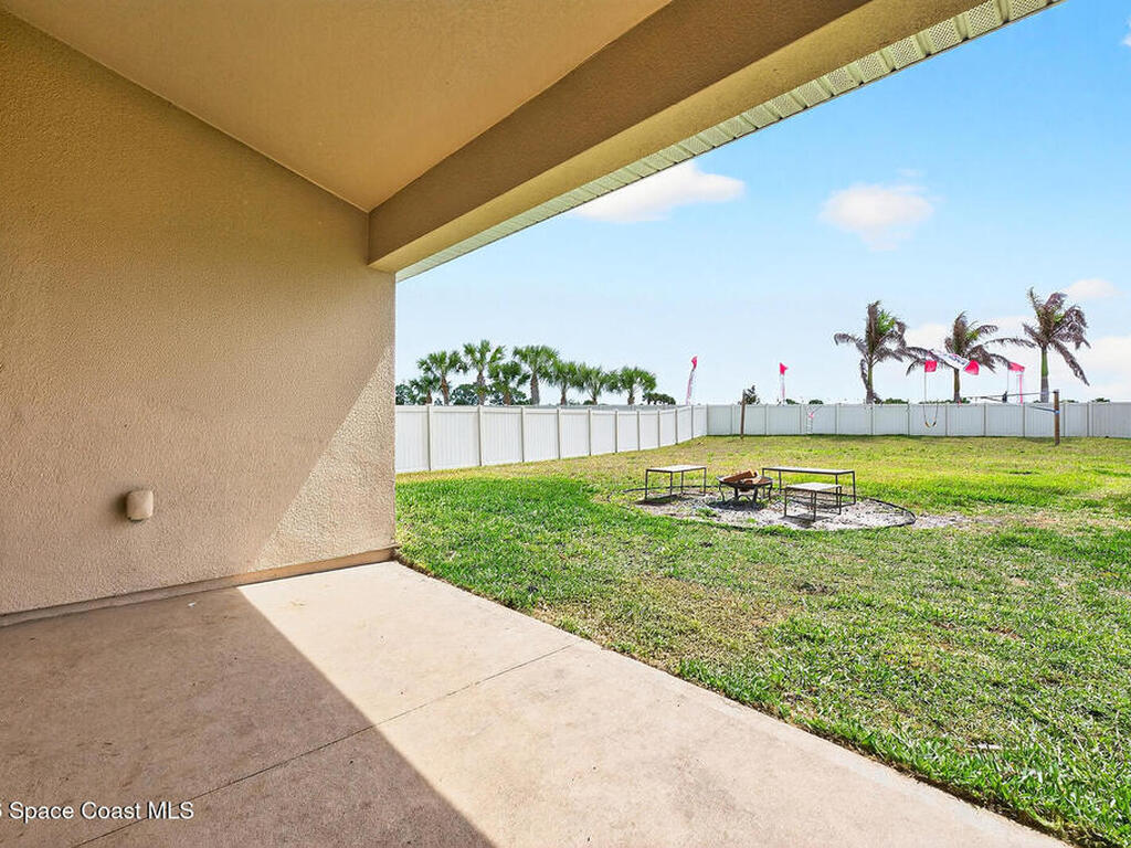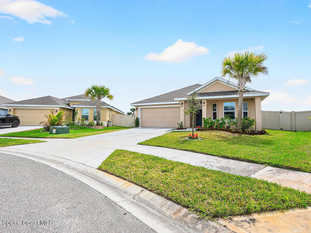 BUILT IN 2022, this MOVE-IN READY single-story block home in St Johns Preserve offers the comfort of newer construction with one of the largest lots in the community at .33 ACRES! Well maintained and thoughtfully designed, this 3-bedroom, 2-bath home still feels like new and sits in a GOLF CART FRIENDLY ~ GATED COMMUNITY with great AMENITIES and an ideal location close to everything Palm Bay has to offer. Inside, the light, bright OPEN CONCEPT layout creates a welcoming space for everyday living and entertaining. The kitchen, dining, and living areas flow seamlessly together, anchored by the well-appointed kitchen designed for both style and function. The home chef will appreciate the large CENTER ISLAND with bar seating, STAINLESS STEEL APPLIANCES, pantry storage, cabinets topped with crown molding, and a cheerful window over the sink that fills the space with natural light. The SPLIT BEDROOM floor plan provides privacy and flexibility with the primary suite perfectly situated