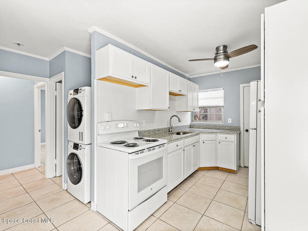 A few blocks from the beach. Two income streams. One smart investment. Located in one of the Space Coast's strongest beachside rental markets, just minutes from Port Canaveral & the Atlantic Ocean, this Cape Canaveral duplex delivers the trifecta: location, income potential, and no HOA. The front unit will soon be vacant and ready for your finishing touch, while the rear unit is updated with white shaker cabinets, granite countertops, hexagon tile backsplash, and a full-size GE washer and dryer- making it ideal for short-term, long-term, or vacation rental use. Both units feature easy-care tile flooring throughout, plus a newer roof and hot water heaters. The property also offers what renters & owners value most: ample parking, including a covered carport and additional on-site spaces. A fenced yard & storage shed add extra convenience. Live in one and rent the other--or rent both and create multiple income streams in one of the Space Coast's most desirable beachside locations.