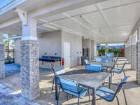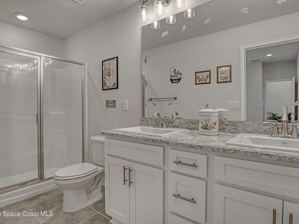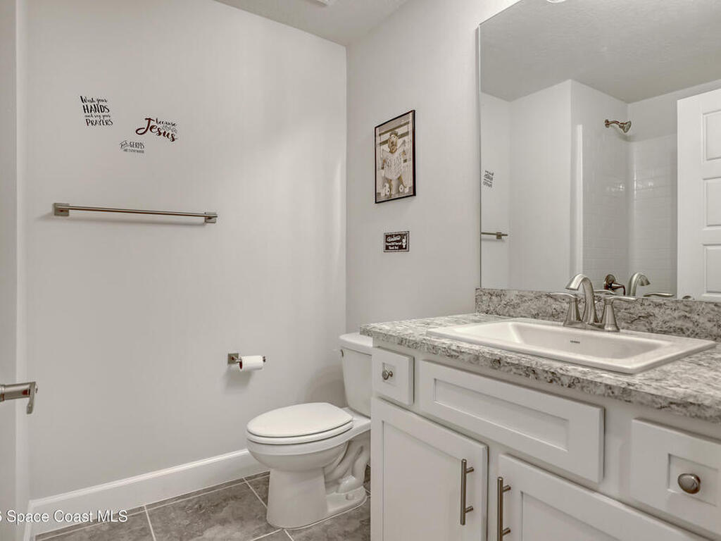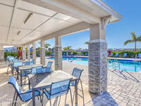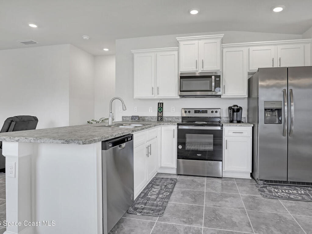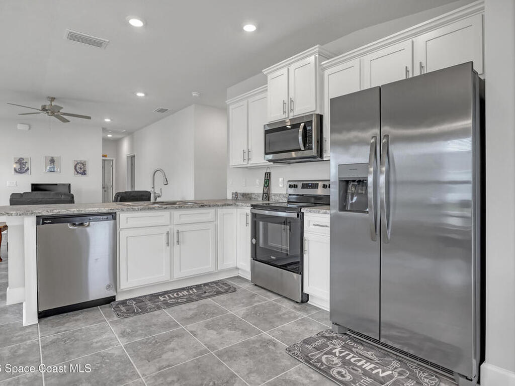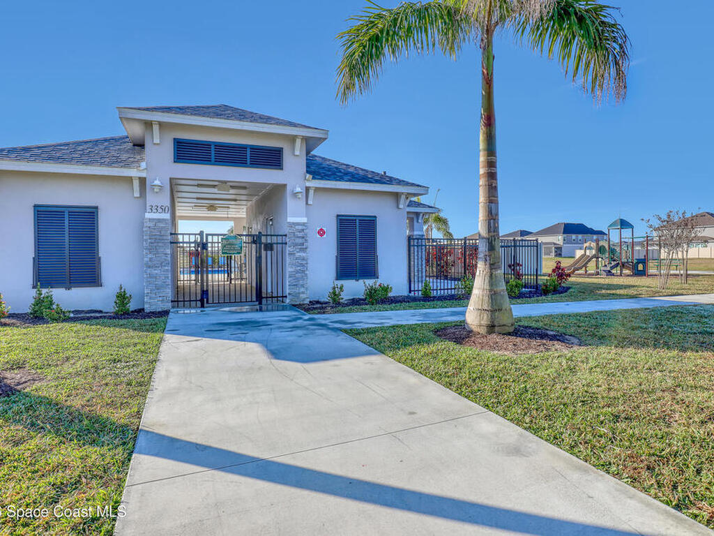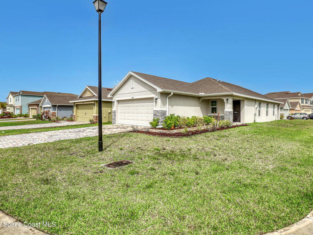 Stunning CORNER lot with 3-bedroom, 2-bath concrete block residence built in 2023, located in the highly sought-after GATED community of The Gardens at Waterstone. Beautifully maintained and designed for modern living, this home features gorgeous GRANITE countertops and a lovely eat-in kitchen , an ISLAND--perfect for culinary prep, entertaining, and everyday enjoyment. All upgraded cabinets, hardware, blinds, and STAINLESS-STEEL kitchen appliances which convey with the purchase. Other features include, paver drive and stone accents.The open-concept floor plan offers SPLIT bedrooms for added privacy. The lovely primary suite is a true retreat, complete with a walk-in closet and a double-vanity en-suite featuring a stunning walk-in shower. Two comfortable guest bedrooms provide flexibility for family, visitors, or a home office, while the guest bathroom includes a spacious tub and tasteful finishes. Have peace of mind with hurricane shutters and a complete irrigation system.