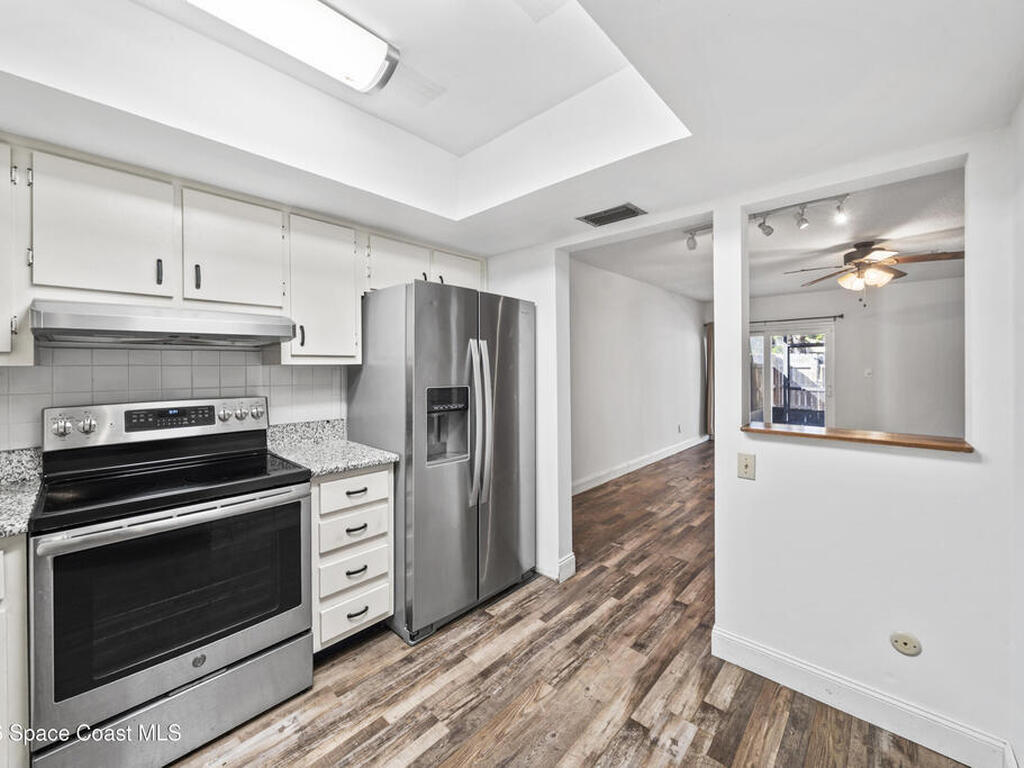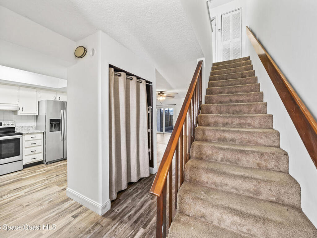 Beachside living in the desirable Burns Village community of Indian Harbour Beach! This two-story townhome is ideally located just minutes from the Atlantic Ocean and the Indian River. Enjoy a private courtyard perfect for relaxing or entertaining, along with convenient access to nearby parks, shopping, and local restaurants. Updated bathrooms, brand new A/C 2025 and vinyl flooring throughout. New carpet being installed on stairs. The community offers low-maintenance living in a quiet neighborhood with easy access to Eau Gallie Blvd and the causeway for quick trips to the mainland. Zoned for highly regarded Ocean Breeze Elementary, Hoover Middle, and Satellite High School. A great opportunity to enjoy the Space Coast lifestyle close to the beach.
