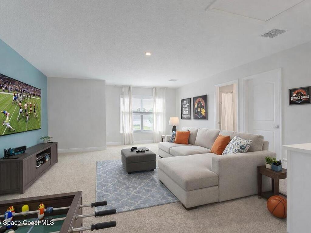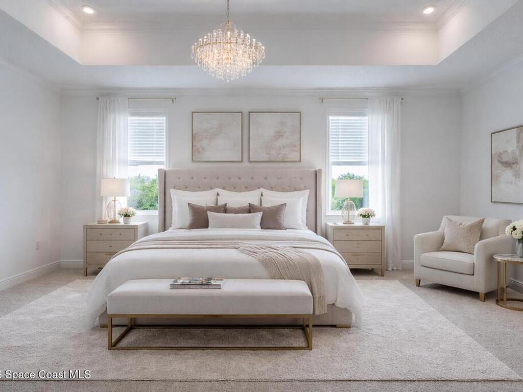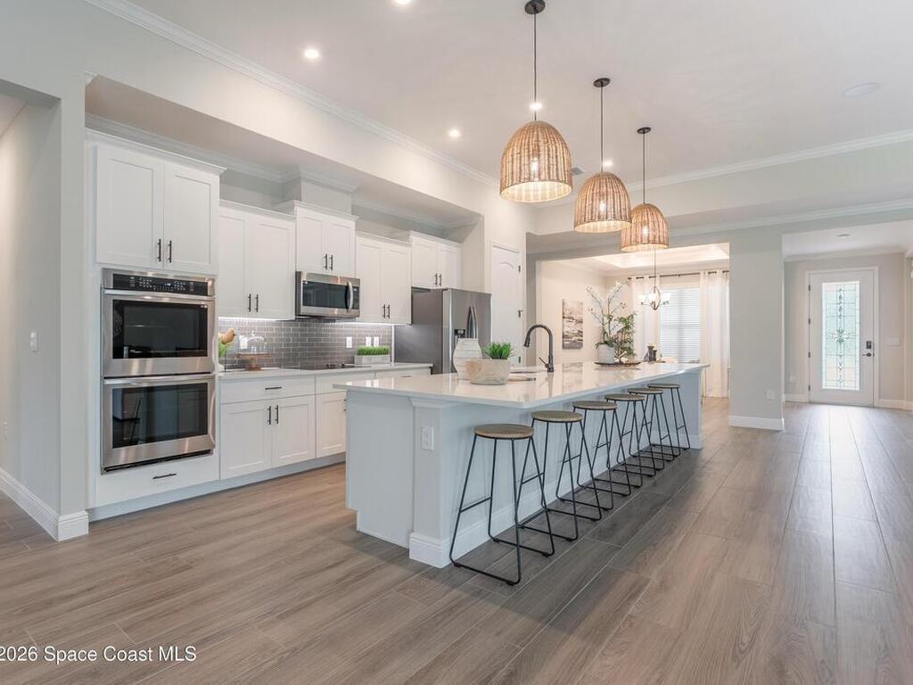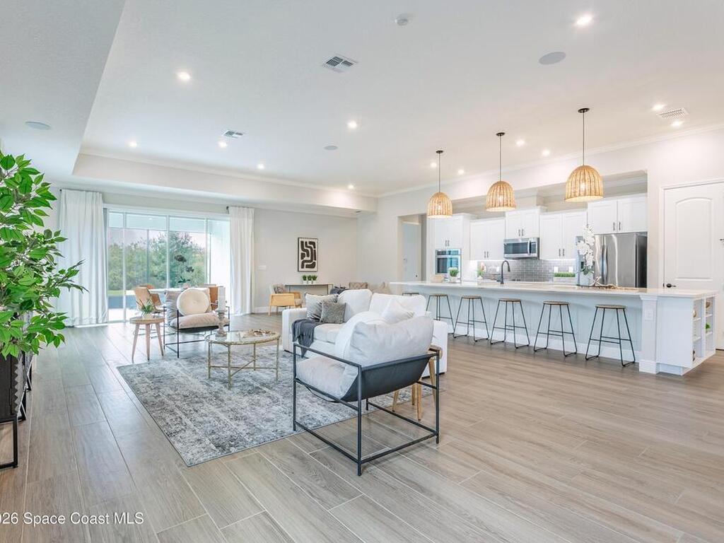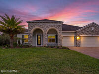 Discover luxury living in North Merritt Island! This never lived in former model home is a MUST SEE in person! Just 14 minutes to nearby conveniences like Publix, Target & Restaurants as well as a super easy commute to Space Center, Blue Origin & Space X. This exceptional property offers not only a private yard backing up to a preserve, it is also one of the largest lots in the neighborhood, spanning 0.36 acres. This layout truly combines elegance with modern functionality. Loaded with high-end features & upgrades, this home showcases a stunning stone accent that enhances its curb appeal, a bonus room along with an expansive 11 foot tray ceiling in the great room & kitchen. The main areas of the home feature a beautiful woodlike tile, adding to the home's sophistication. The gourmet kitchen is equipped with wine fridge & the massive master bedroom includes a spacious walk-in closet. There is ample room for a pool in the backyard, this open concept home is truly an entertainer's dream!
