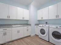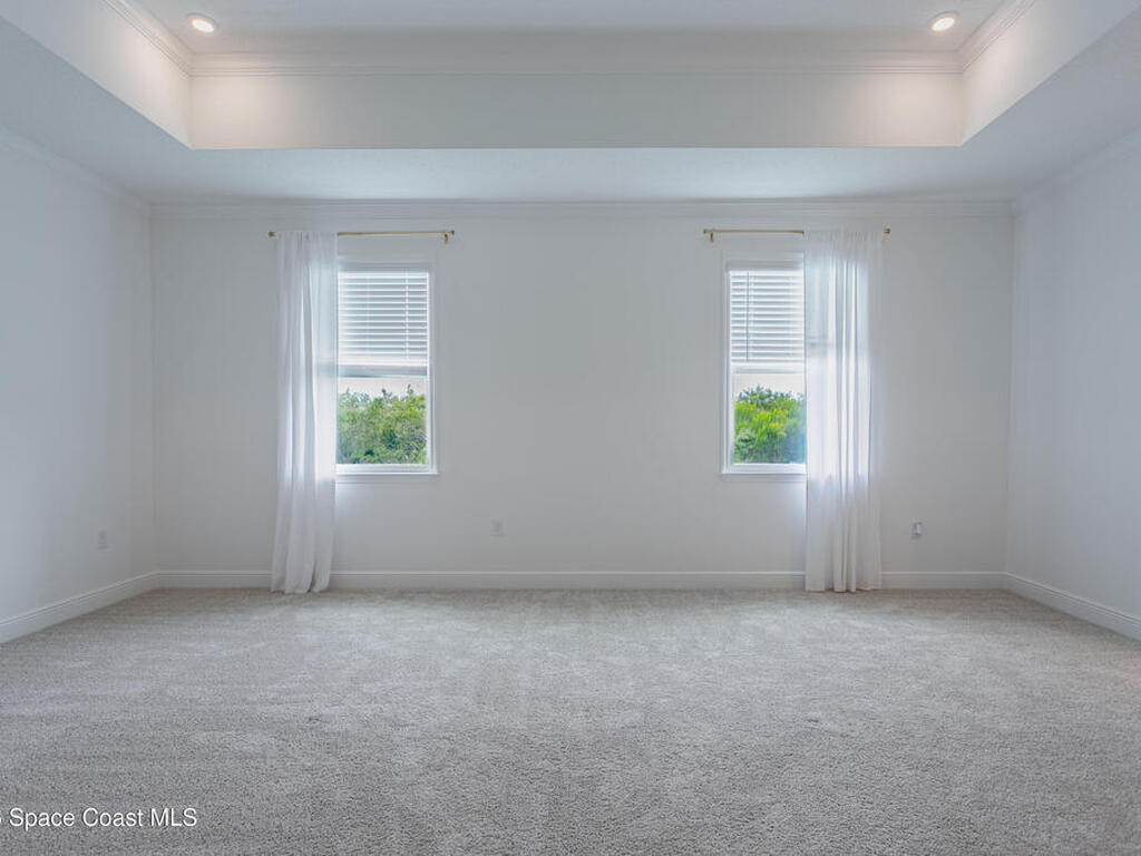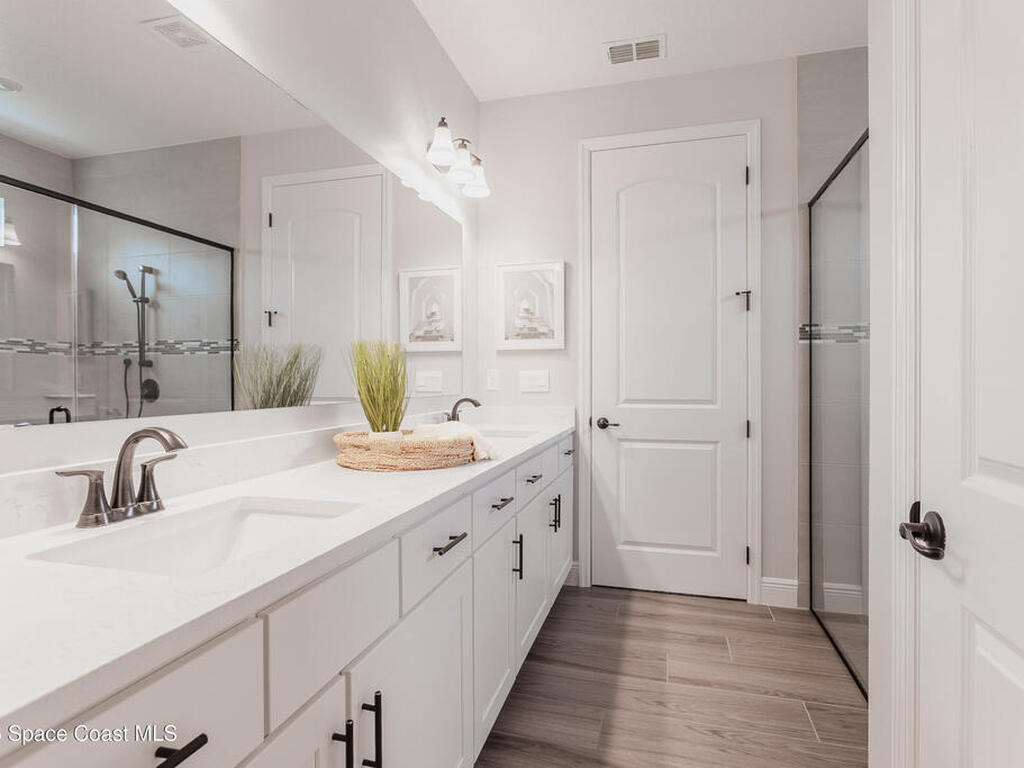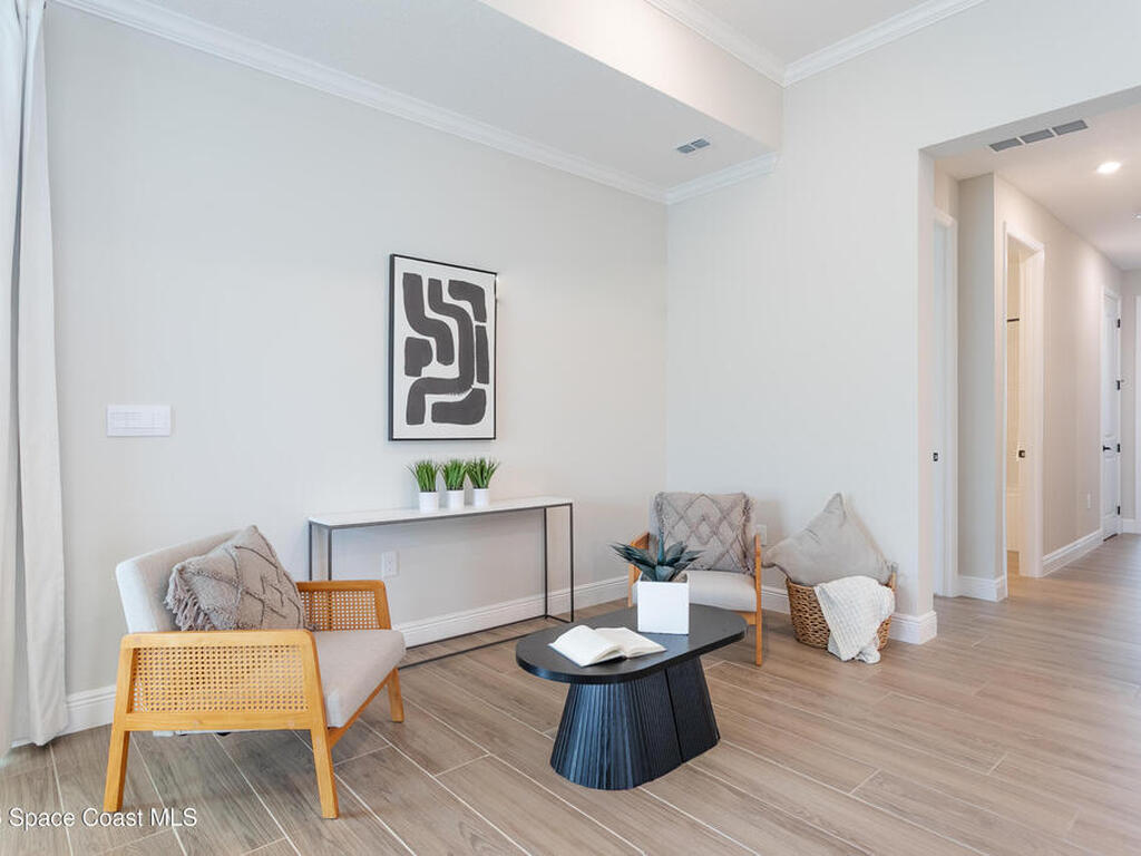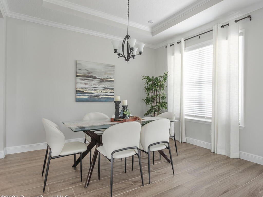 Discover luxury living in North Merritt Island! This never lived in former model home is a MUST SEE in person! Just 14 minutes to nearby conveniences like Publix, Target & Restaurants as well as a super easy commute to Space Center, Blue Origin & Space X. This exceptional property offers not only a private yard backing up to a preserve, it is also one of the largest lots in the neighborhood, spanning 0.36 acres. This layout truly combines elegance with modern functionality. Loaded with high-end features & upgrades, this home showcases a stunning stone accent that enhances its curb appeal, a bonus room along with an expansive 11 foot tray ceiling in the great room & kitchen. The main areas of the home feature a beautiful woodlike tile, adding to the home's sophistication. The gourmet kitchen is equipped with wine fridge & the massive master bedroom includes a spacious walk-in closet. There is ample room for a pool in the backyard, this open concept home is truly an entertainer's dream!