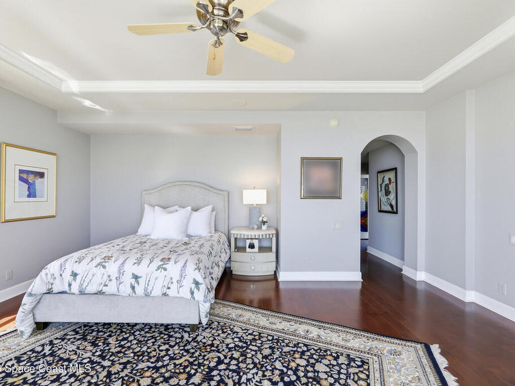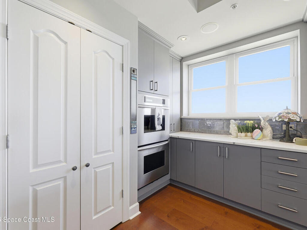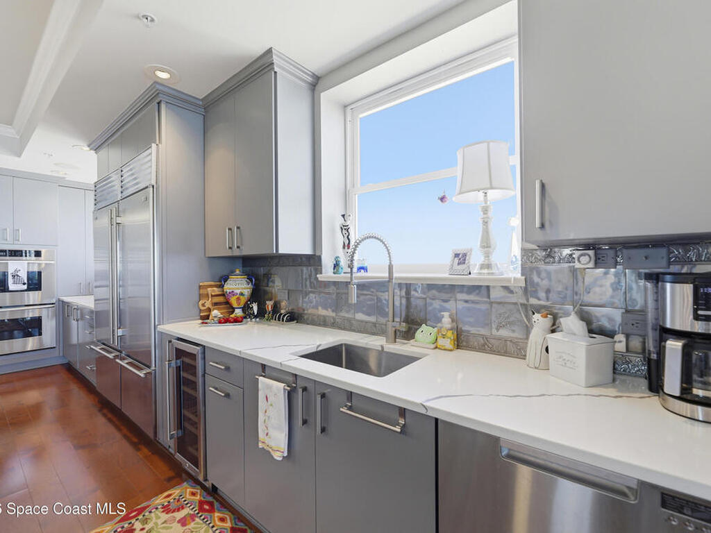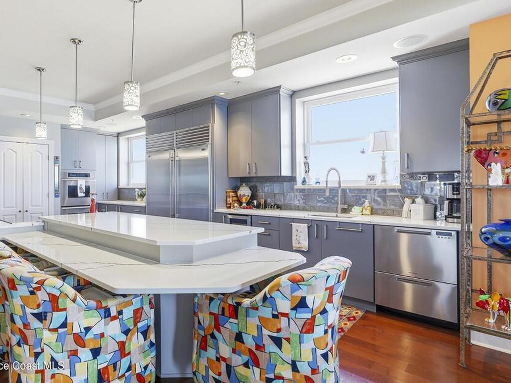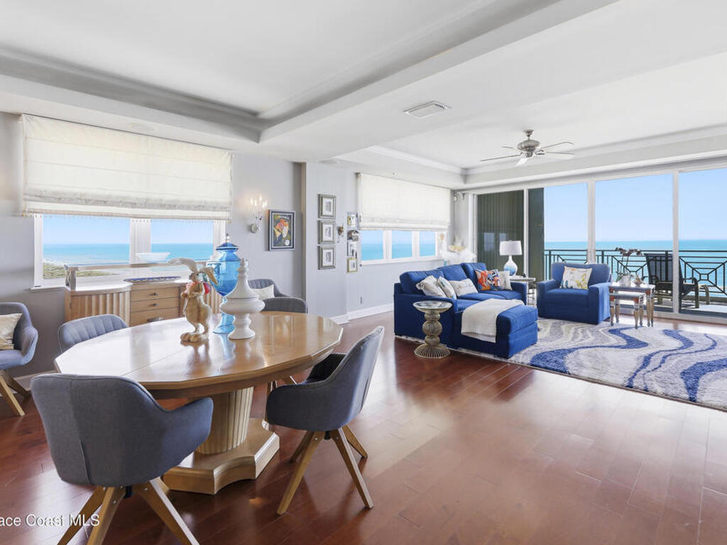 The Pinnacle of Riomar: Full-Floor Oceanfront PenthouseExperience unmatched privacy with a secure elevator directly accessing your private foyer. This full-floor, 3, 009 sq ft residence offers 360 views--from Atlantic sunrises to Banana River sunsets--making it a rare, fully customized top-floor opportunity.This 3-bedroom, 3.5-bath home features 10-foot ceilings, hardwood floors, and expansive living areas with a wine bar and two wine coolers. The chef's kitchen includes: two Sub-Zero refrigerators, Thermador double ovens, Samsung cooktop, and Fisher & Paykel double drawer dishwasher.The floor plan is designed for flow and privacy: open kitchen and dining area maximizes light and water views and has powder room. Each bedroom has an view, en-suite bath, plus custom closets.Enjoy a private oceanfront balcony, motorized hurricane shutters, private garage + extra parking, and new HVAC/water systems. Boutique community with pool, security, and all-inclusive fees.