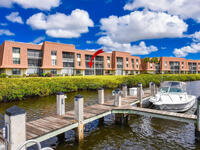 Experience waterfront living with wide views of Kitching Cove, a deep water pocket for larger boats to ride out storms. Relax on your screened patio while watching sailboats glide by, along with sea otters and ospreys.This updated first-floor condo features 1, 314 sq ft of living space, w/two large bdrms, two full baths, updated kitchen, laundry rm. Just a short walk from the heated community pool, woodworking shop, billiards room, clubhouse, tennis courts, and more. The marina is only steps away and can accommodate boats up to 50 feet, with reasonable dockage fees of $2.25 per foot. Tarpon Bay is an active over-55 community located in the heart of Sandpiper Bay. This is the perfect second home or retirement residence, offering waterfront living with deep water dockage for under $300, 000