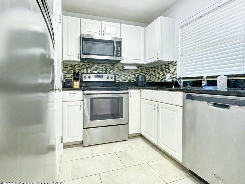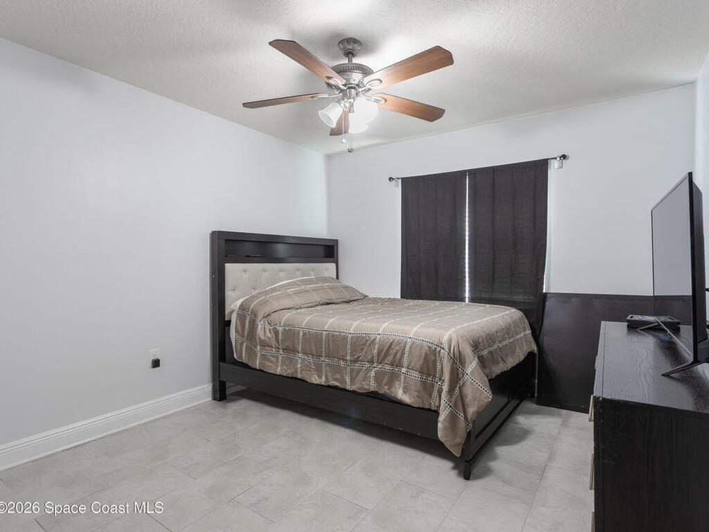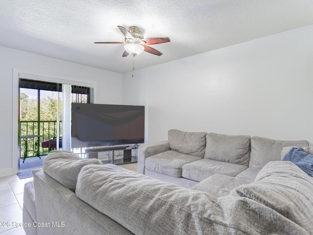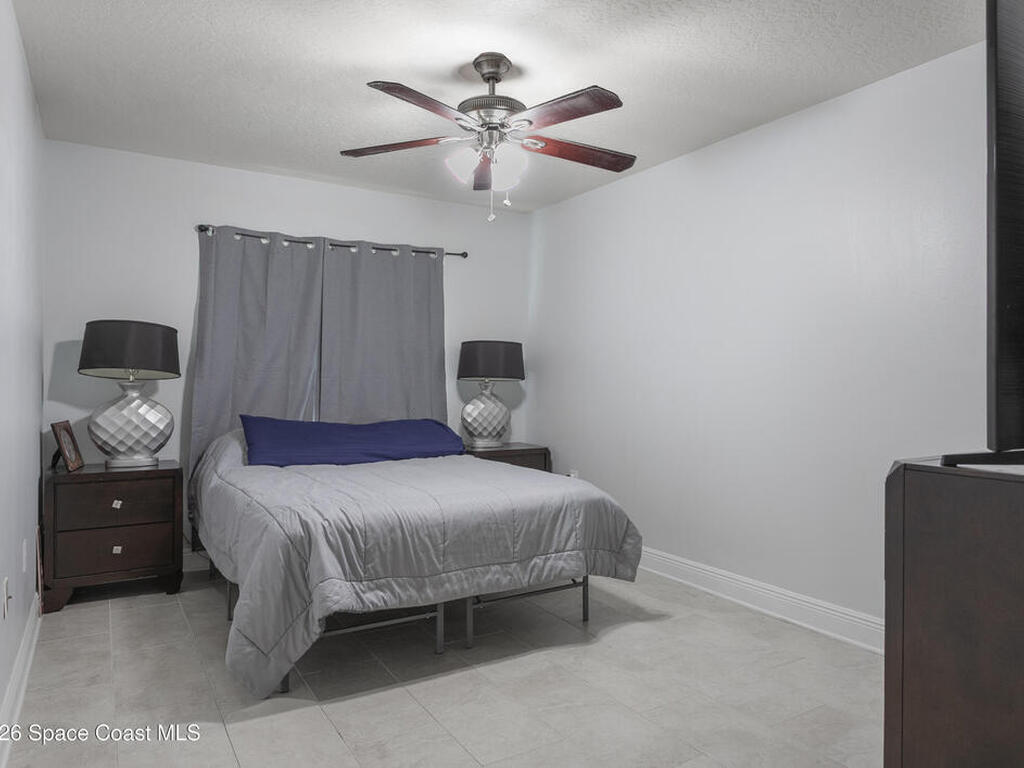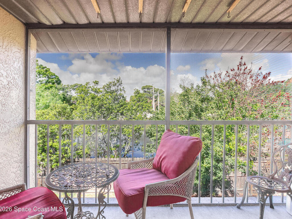 Nicely updated upstairs unit. Tile throughout. Kitchen features updated cabinets and granite countertops. Stainless steel appliances. Primary bedroom consists of walk-in closet, updated shower with deep tub, newer vanity with granite countertop. Guest bathroom also updated. Hurricane impact windows. Tenant occupied until July at $1500.00 per month. Private unit in back of complex. Community pool, playground and basketball court. Convenient location to Kennedy Space Center, major highways, shopping and restaurants.