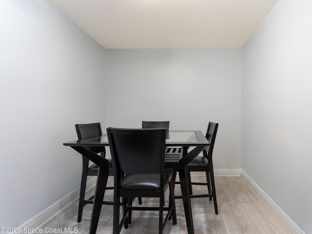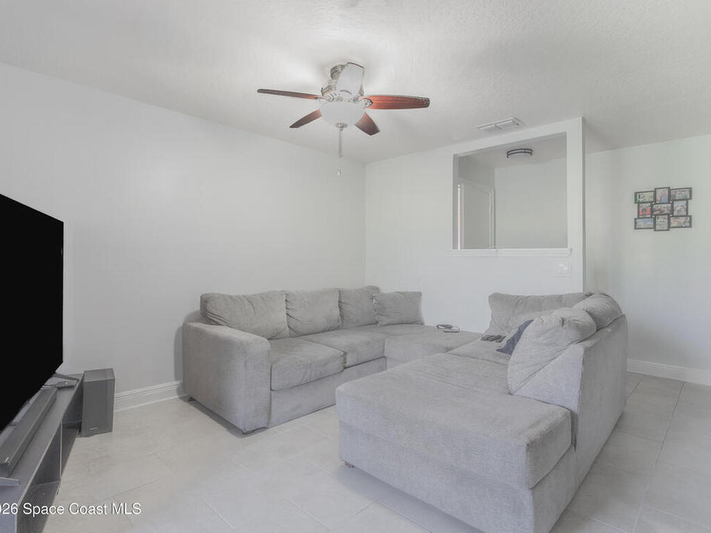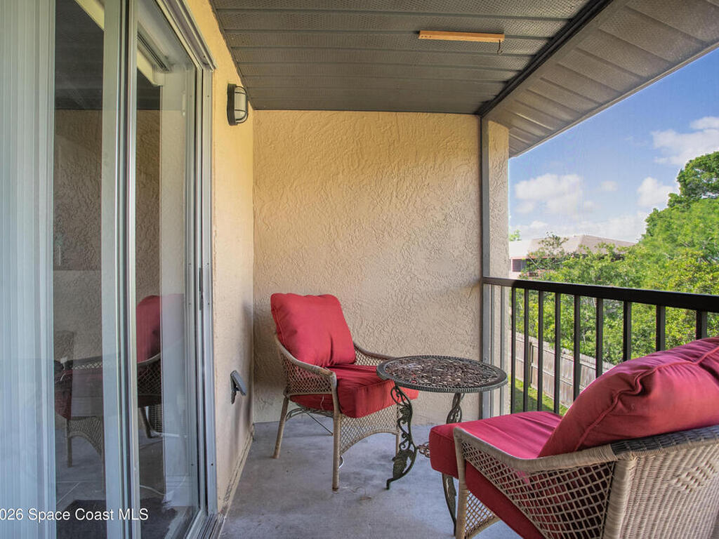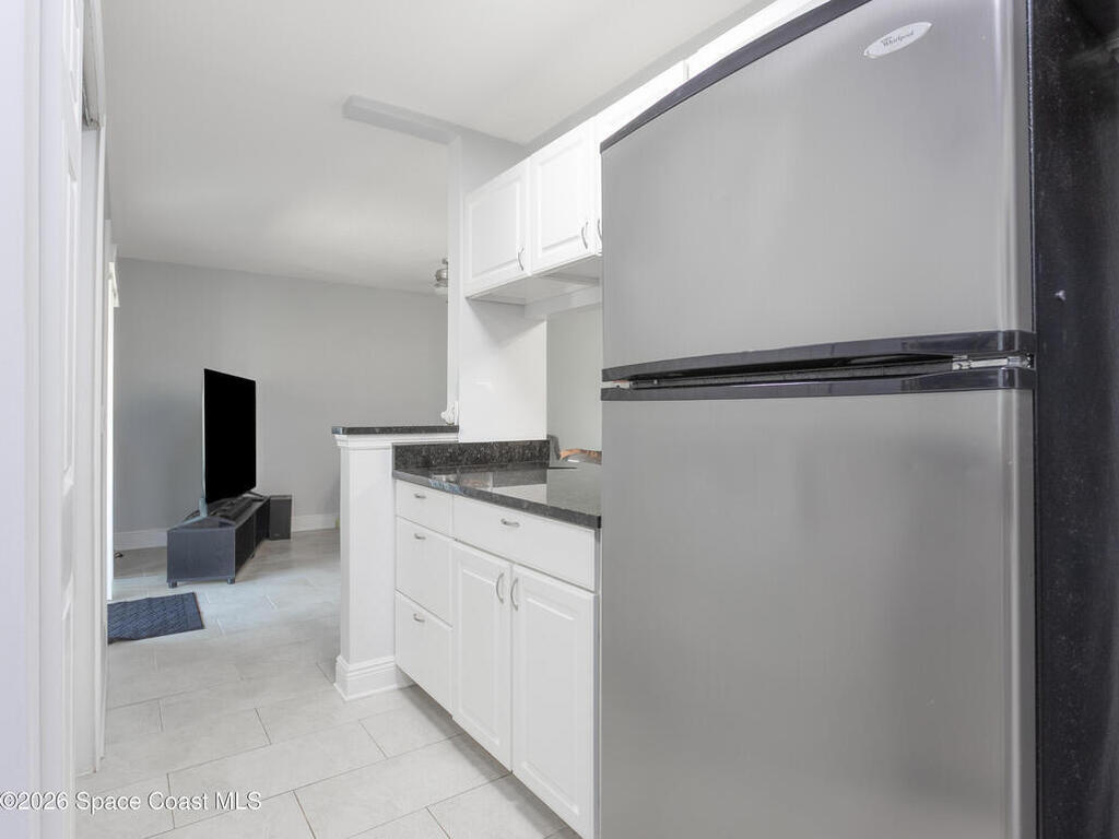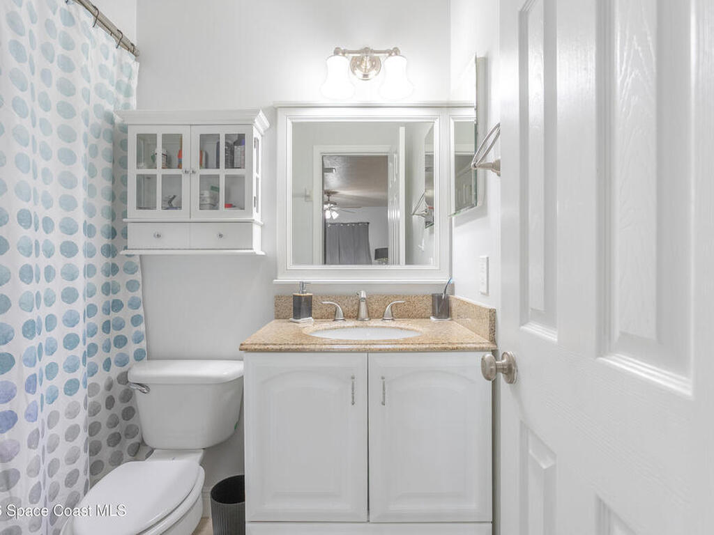 Nicely updated upstairs unit. Tile throughout. Kitchen features updated cabinets and granite countertops. Stainless steel appliances. Primary bedroom consists of walk-in closet, updated shower with deep tub, newer vanity with granite countertop. Guest bathroom also updated. Hurricane impact windows. Tenant occupied until July at $1500.00 per month. Private unit in back of complex. Community pool, playground and basketball court. Convenient location to Kennedy Space Center, major highways, shopping and restaurants.
