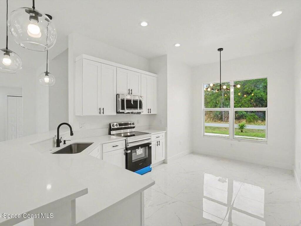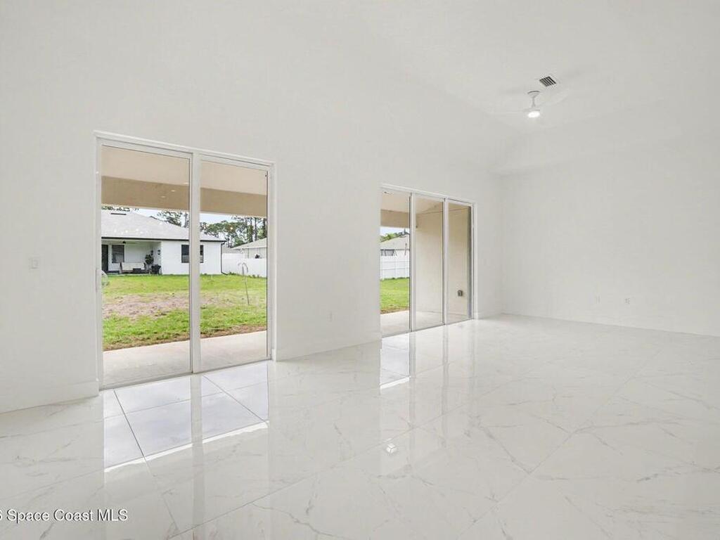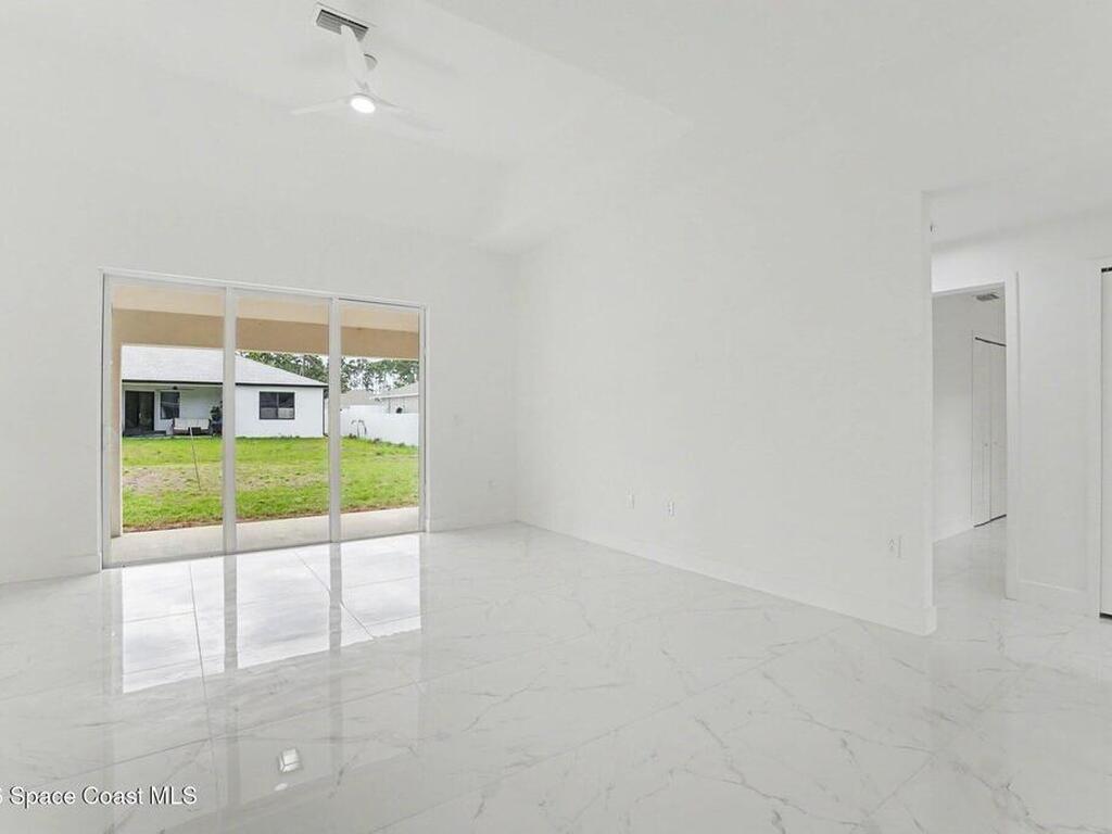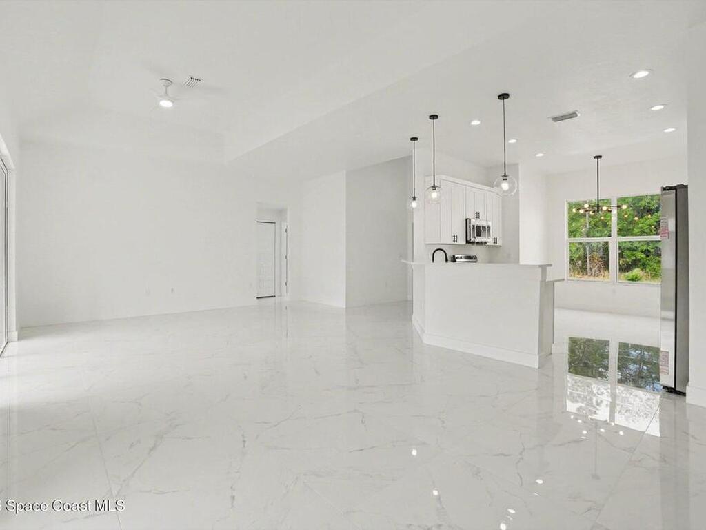 This beautifully designed 4 bed 2 bath concrete block home features elegant tile throughout its 2, 052 square feet of living space. The modern kitchen includes stainless steel appliances, granite countertops, small breakfast nook, bar, and pendant lighting, perfect for cooking and entertaining. With four bedrooms and two baths, there's plenty of room for family and guests. This home has a split plan with a connecting bathroom for one bedroom that can be used when company is in town. The primary suite has 2 large walk-in closets, double vanity, tile shower, and separate tub and toilet, a large patio accessible through sliding glass doors, along with the living and dining areas also having double sliders, bringing in lots of natural light. All windows are impact resistant for added security. This home is a must-see for anyone looking for comfort and style!