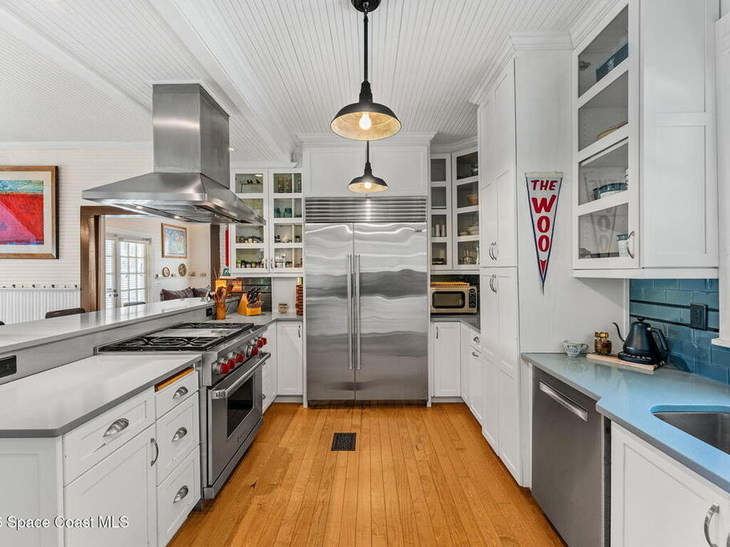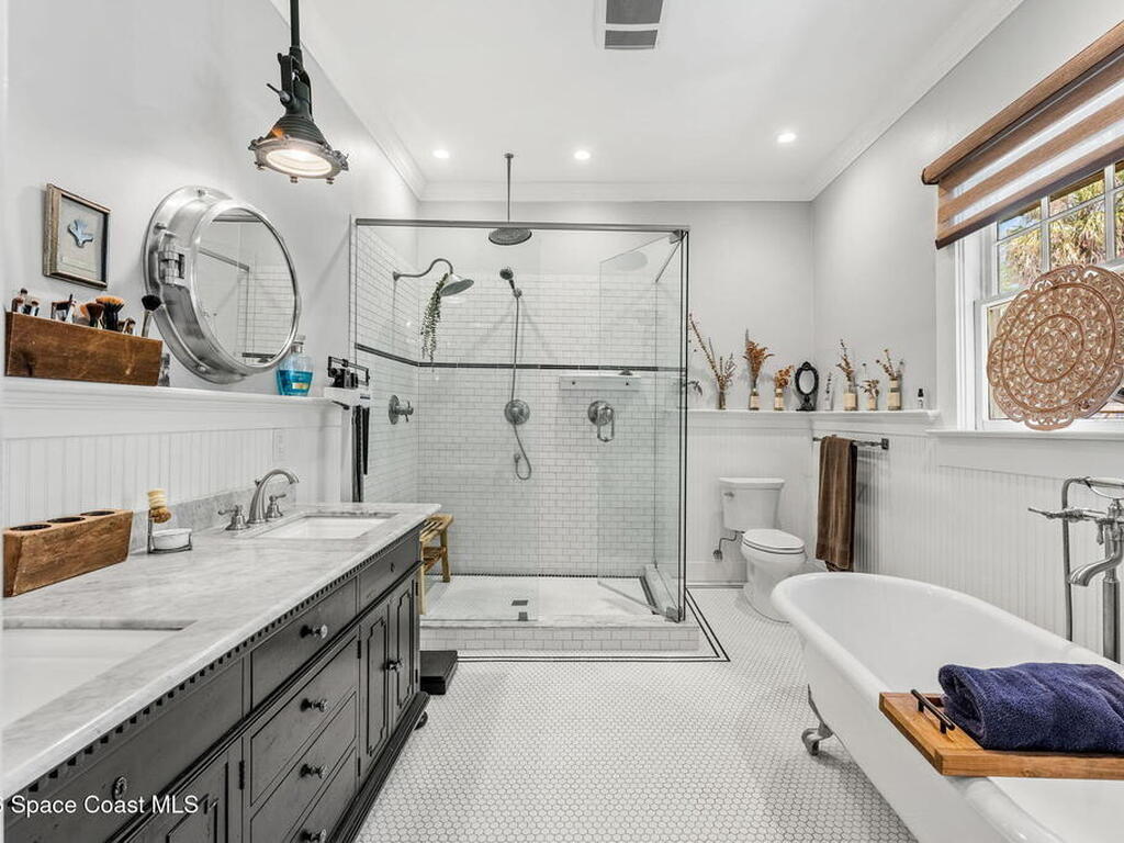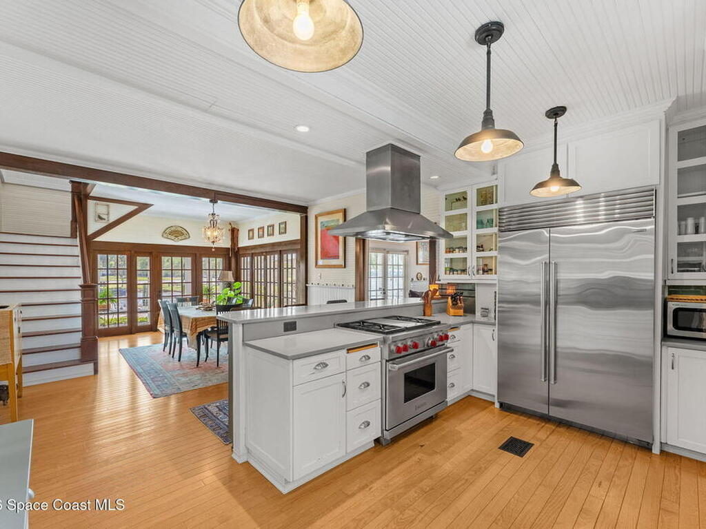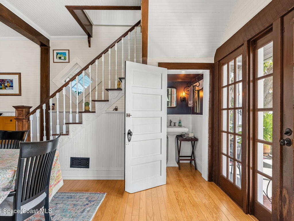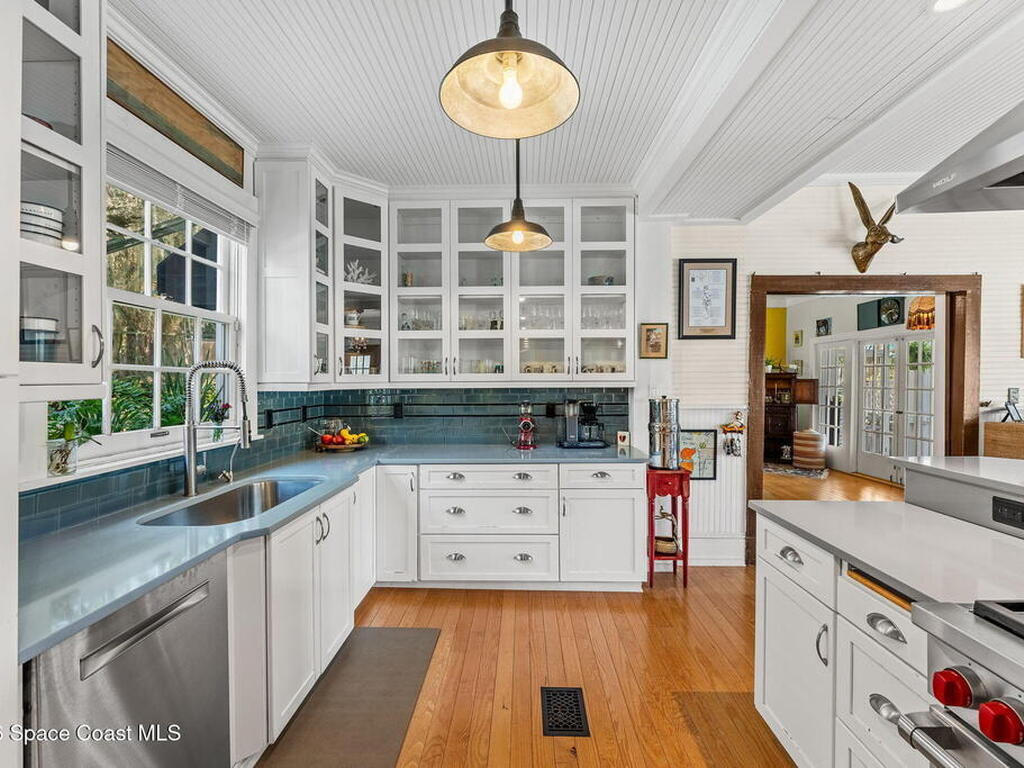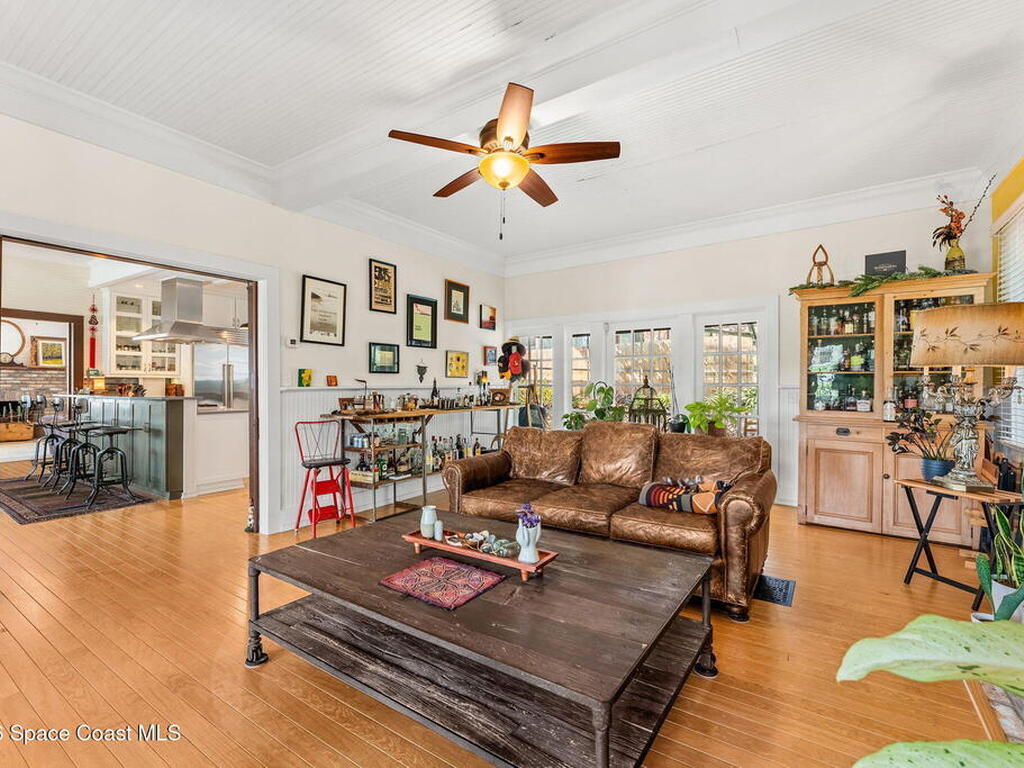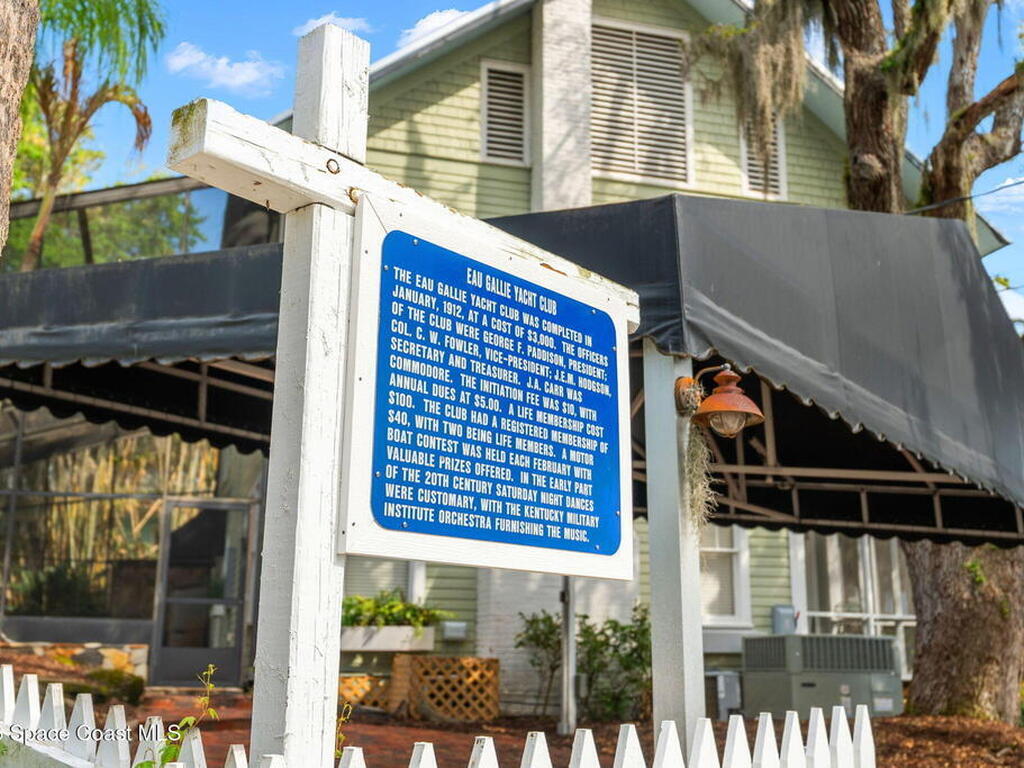 It's the best kept secret in Brevard. This waterfront historic and unique gemis located in the heart of the Eau Gallie Historic District. Walking distance to theshops, bars and restaurants of the Arts District, this amazing home was the original Eau Gallie Yacht Club, one of the oldest yacht clubs in Florida. Constructed with first generation heart cypress, this historic home has it all: two working fireplaces, a chef's kitchen, hardwood floors, porches, decks, a sparkling pool and a deep water dock on one of the most protected harbors in Brevard. The home has been completely renovated with a new metal roof (2021), new insulation (2025), Wolf dual fuel stove, Sub-Zero refrigerator and the owners favorite, a clear ice maker. Enjoy the spectacular views beneath majestic oaks on this truly special one-of-a-kind property.