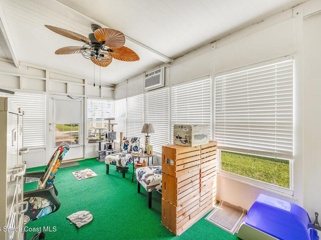 Welcome to relaxed Florida living in this charming 2-bedroom, 2-bath home located in a desirable 55+ community where you own the land--NO lot rent and a voluntary HOA. Roof 2021. AC 2022. Enjoy a low-maintenance lifestyle with access to great amenities including a heated pool, pickleball courts, and tennis courts--perfect for staying active and social. The home features a fully fenced backyard, offering privacy and space for pets or outdoor enjoyment. You'll love the convenient location just minutes from intracoastal waterfront dining, with local beaches only a short drive over the causeway. Whether you're looking to relax or explore, you're ideally situated with Orlando and its world-famous attractions just about 90 minutes away. This is an excellent opportunity to enjoy affordable coastal living with flexibility, community amenities, and no mandatory HOA fees. Schedule your showing today and start living the Florida lifestyle!