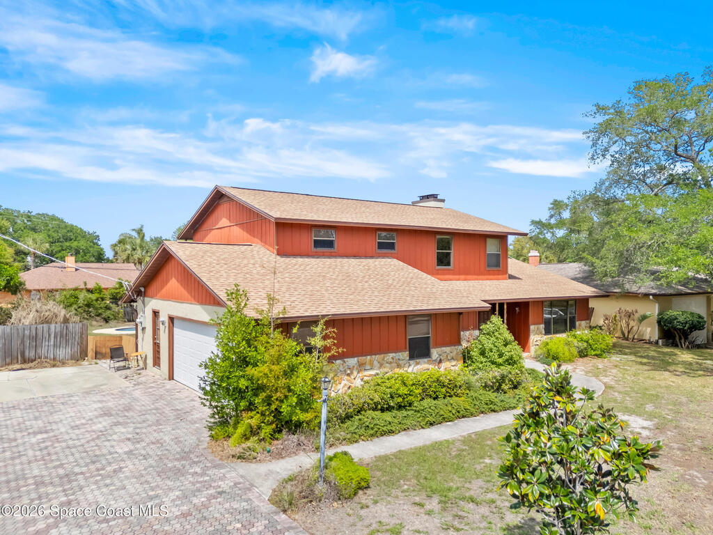Located in Merritt Island's desirable Riverside Landing community, this well-maintained home offers 4 bedrooms plus an additional room that can function as a 5th bedroom, office, or flex space, along with 3 full bathrooms and multiple living areas suited for a variety of needs. A large foyer sets the tone as you enter, leading to formal living and dining rooms, a comfortable family room, and a spacious breakfast nook adjacent to the kitchen. The kitchen provides generous counter space, ample cabinetry, and a practical layout for everyday use. A bright sunroom extends the living area and overlooks the backyard and pool. Outdoors, the property features a private pool and sits on a .35-acre lot, offering room for recreation, gardening, or future enhancements. An oversized 2-car garage with additional storage adds valuable functionality. This Riverside Landing home delivers substantial square footage, flexible room options, and a great central location!
