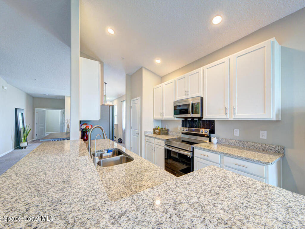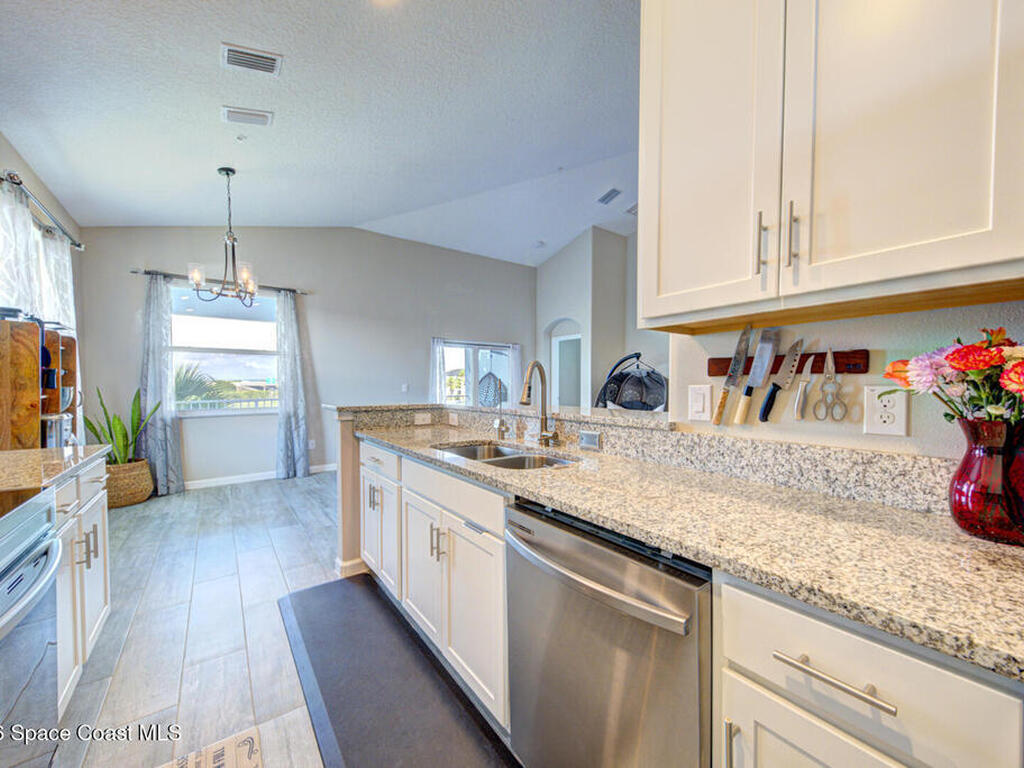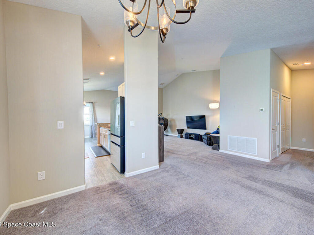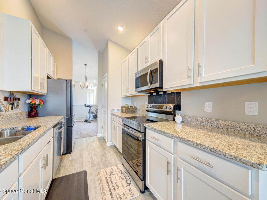 Immaculately Kept, Stunning Lake View, Concrete Block, Key West Townhome Style Condominium, w/ First Floor Entry, Unit on 2nd Floor, End Unit w/ 3 bedroom, 2 bath, Split Plan, 1801 sqft, attached 1 Car Garage & Driveway, built in 2023. So much to offer w/ its Open Concept, Vaulted Ceiling & 9ft Ceiling throughout, Gourmet Eat-in Kitchen w/custom 42' bright white cabinetry, granite countertops, stainless steel appliances, pantry, breakfast bar & nook, dining room, large open living room w/ soaring ceiling, large master suite w/ tiled walk-in shower & double sinks w/private laboratory. Guest bathroom has tiled shower/bath tub combo, 10 hurricane impact window filling the entire unit w/ tons of natural lighting, plenty of closest. This unit has a dedicated area to add an elevator/lift (currently being used as a large storage closet). The community offers additional visitor parking areas, lush tropical landscape, and community pool. Condo Fees only $383 Monthly. It's worth looking at...