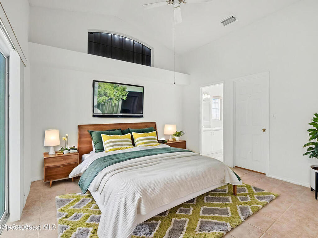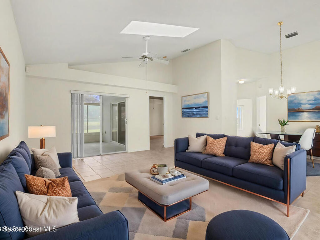 One or more photo(s) have been virtually staged. This inviting 3-bedroom, 2-bath home with a 2-car garage offers an open floor plan with vaulted ceilings and a spacious living area. The kitchen features a breakfast bar, ample cabinetry, and an eat-in space overlooking the main living area--perfect for everyday living and entertaining. A split-bedroom layout provides privacy, with a generous primary suite offering a walk-in closet and en-suite bath. Enjoy year-round relaxation on the screened-in lanai overlooking a tranquil pond.Located in the desirable Cypress Bend community in Melbourne--part of Florida's renowned Space Coast--residents enjoy amenities including a pool, community center, playground, tennis and basketball courts, and scenic walking trails. Conveniently situated near I-95, US-1, shopping, dining, top-rated schools, and just a short drive to the beaches and the iconic Kennedy Space Center. A perfect blend of comfort, convenience, and community living!