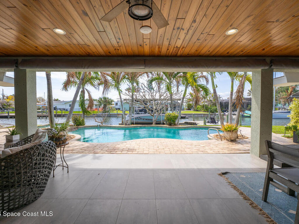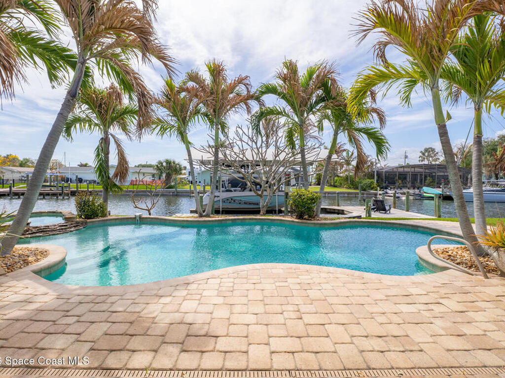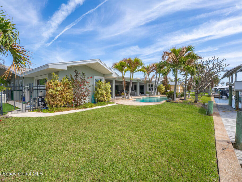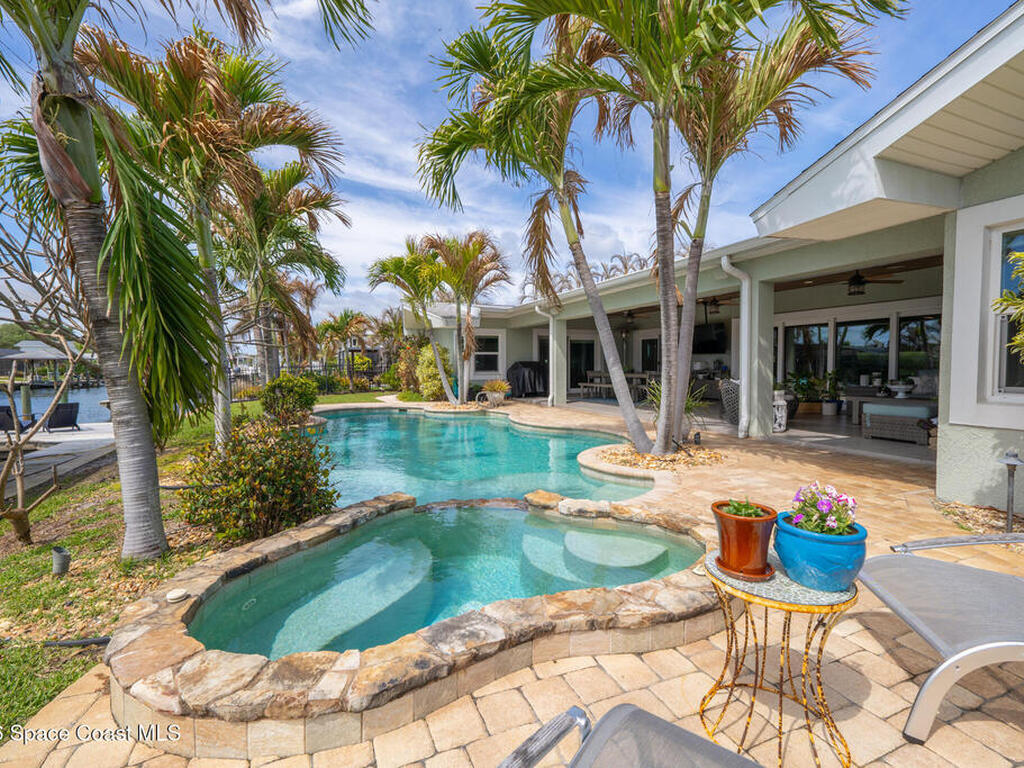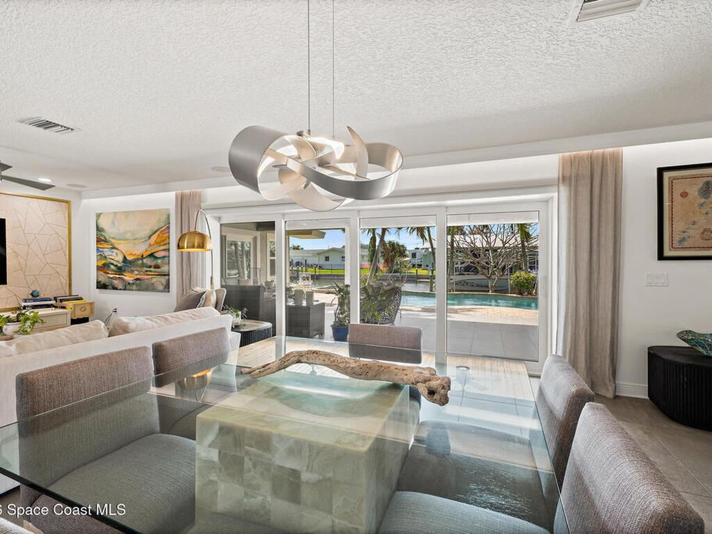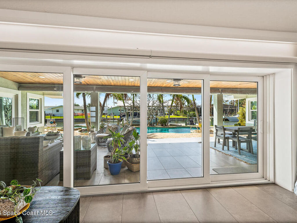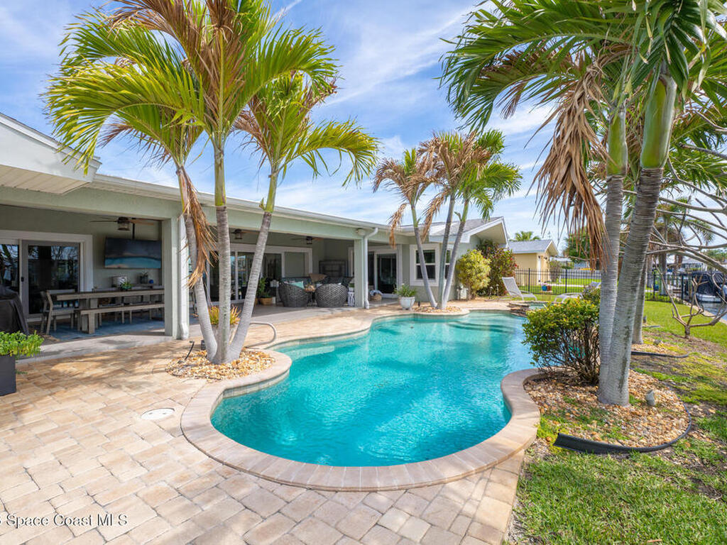 This spectacular one-story updated modern deep-water canal home is in one of Indian Harbour Beach's most desirable neighborhoods on a cul-de-sac: a terrific location, close to shopping, restaurants, groceries, yet private and quiet surroundings. Luxury living in this gorgeous completely remodeled home that won home of the year and includes a chef enthusiast kitchen with Jenn-Air appliances, large living area with a place for everyone in the family. The 16-foot glass sliding door opens the house to a large, tiled lanai to expand your living space. A beautiful master bedroom looks out to lanai and pool complete with closet/dressing room. A second guest suite located on the other side of the home also offers access to the lanai and pool. A 3rd bedroom and bathroom as well as a large indoor laundry room round out this home. Bathed in natural light, this home radiates warmth and elegance, while its solid construction and impact-rated openings including porch screens and a natural gas