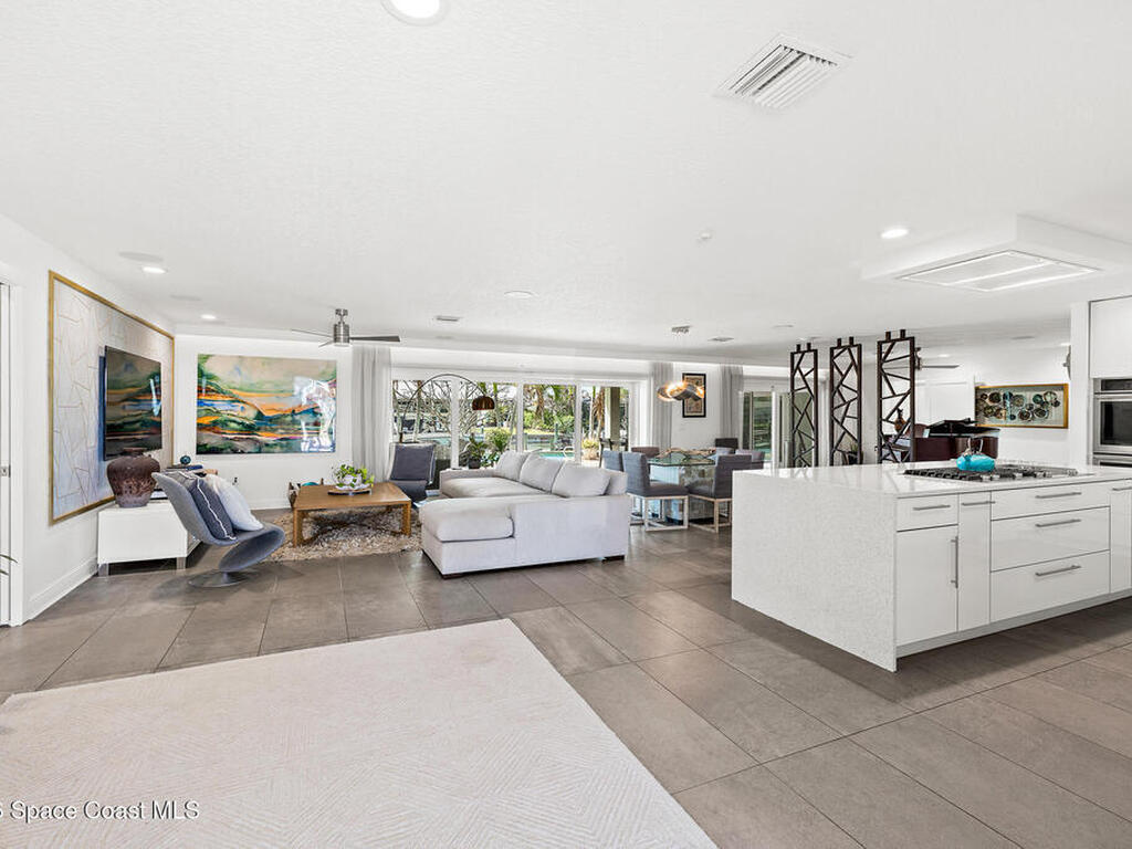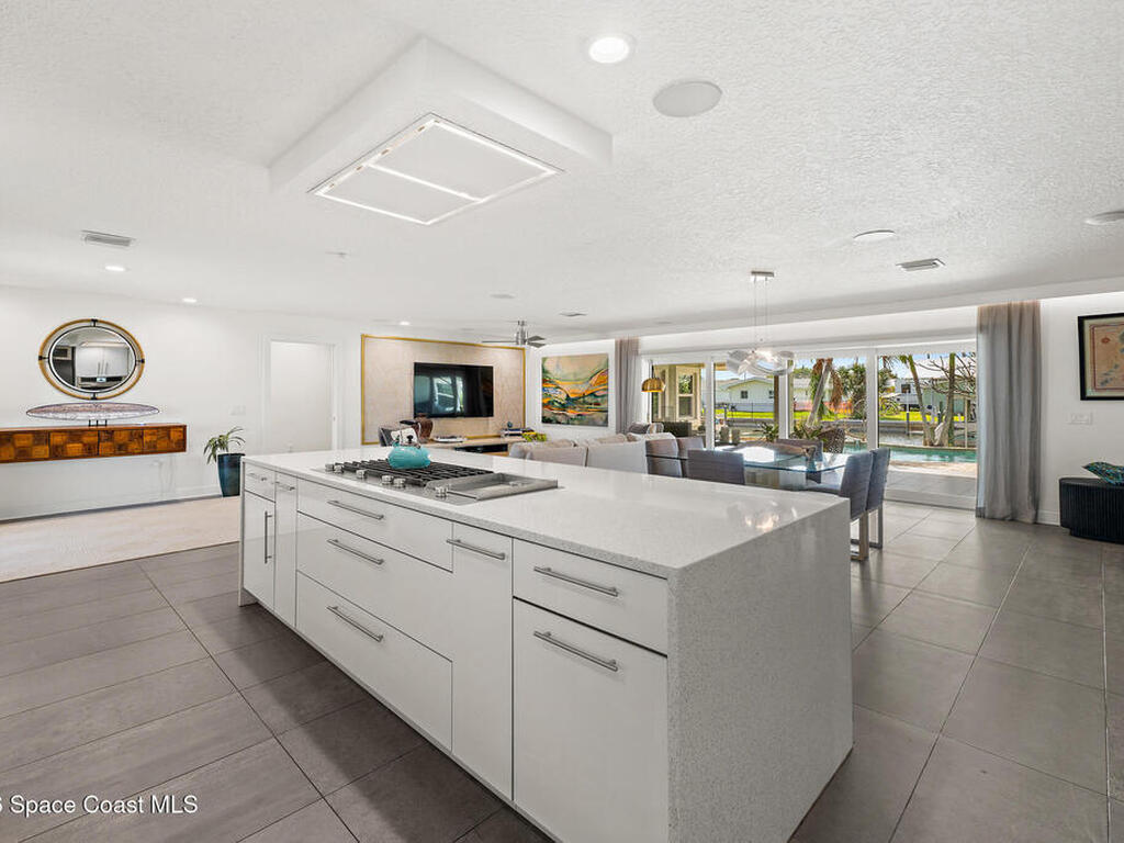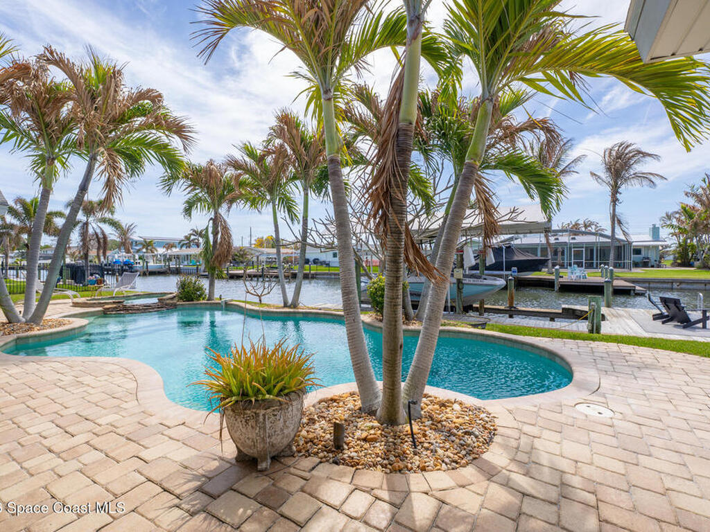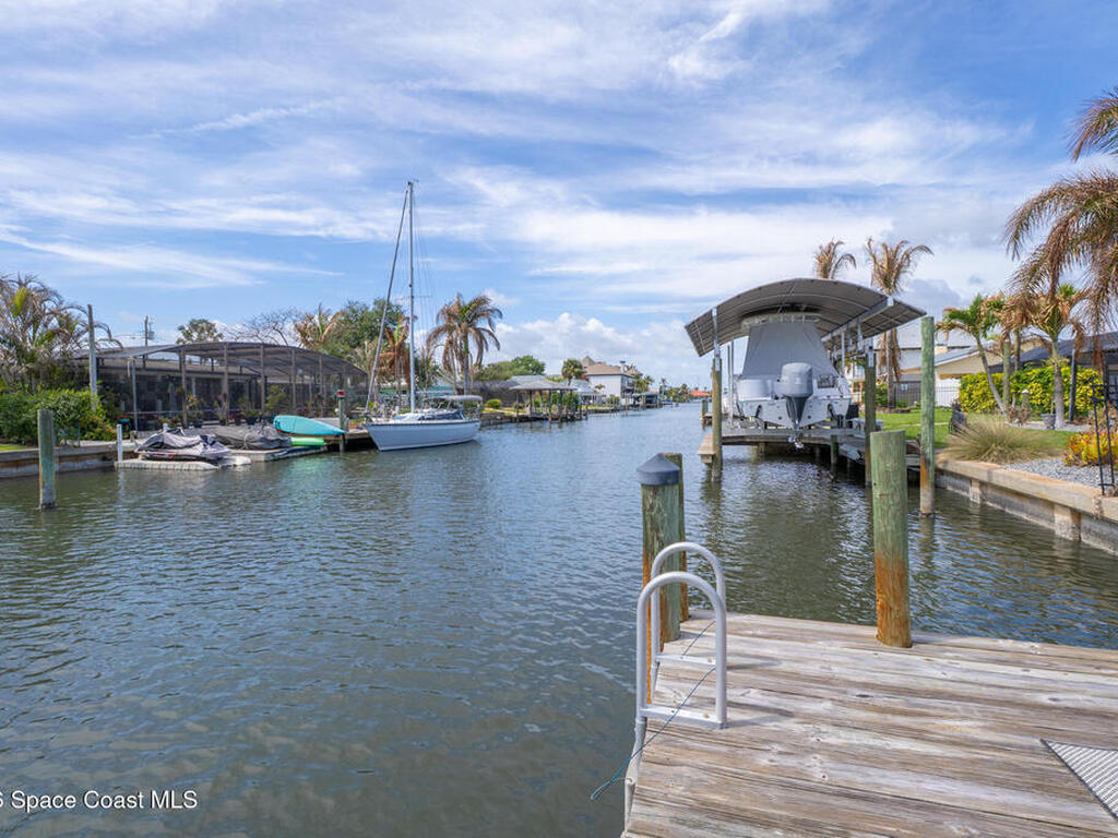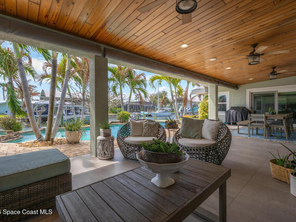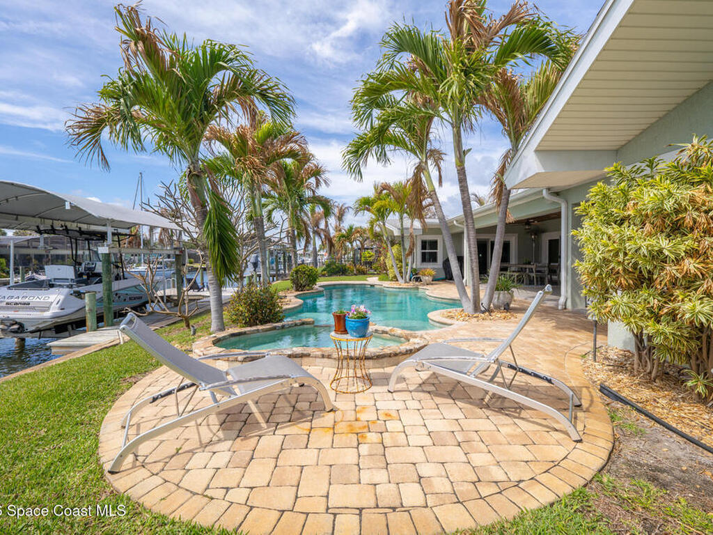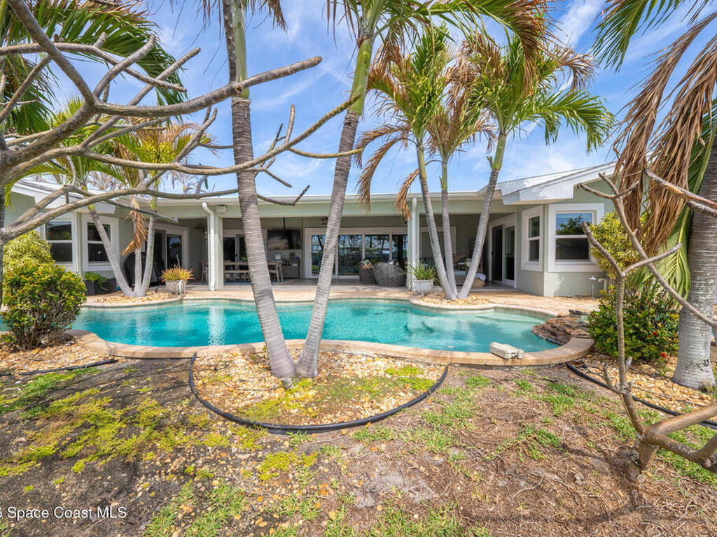 This spectacular one-story updated modern deep-water canal home is in one of Indian Harbour Beach's most desirable neighborhoods on a cul-de-sac: a terrific location, close to shopping, restaurants, groceries, yet private and quiet surroundings. Luxury living in this gorgeous completely remodeled home that won home of the year and includes a chef enthusiast kitchen with Jenn-Air appliances, large living area with a place for everyone in the family. The 16-foot glass sliding door opens the house to a large, tiled lanai to expand your living space. A beautiful master bedroom looks out to lanai and pool complete with closet/dressing room. A second guest suite located on the other side of the home also offers access to the lanai and pool. A 3rd bedroom and bathroom as well as a large indoor laundry room round out this home. Bathed in natural light, this home radiates warmth and elegance, while its solid construction and impact-rated openings including porch screens and a natural gas