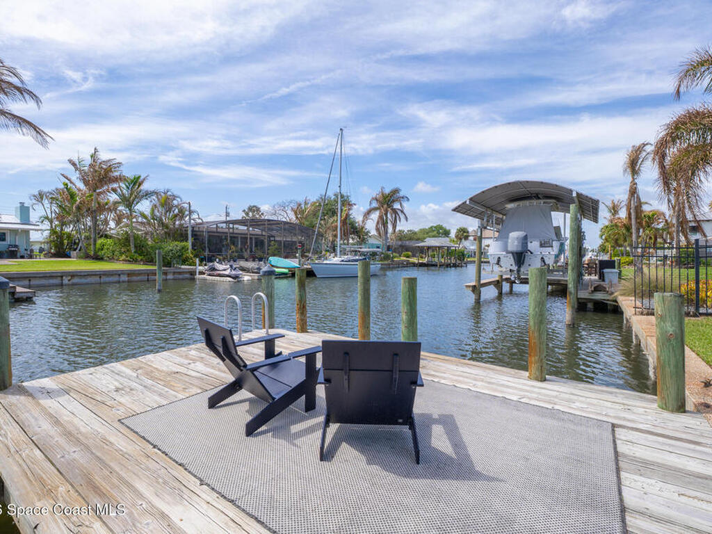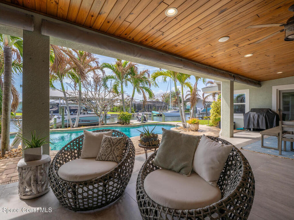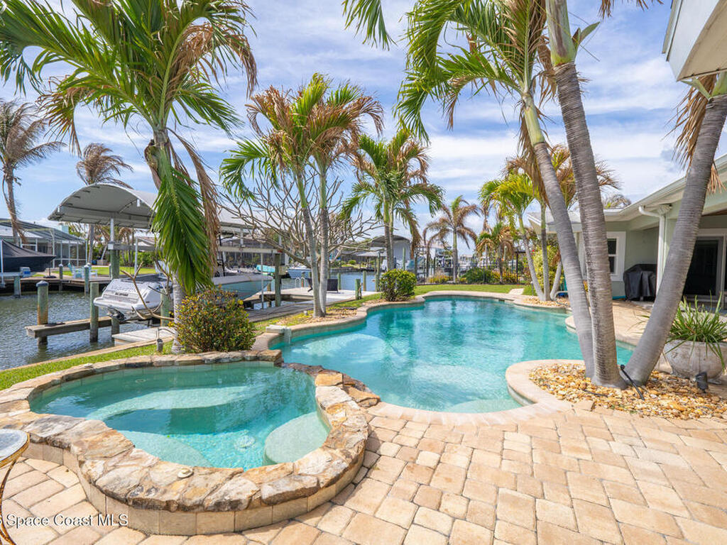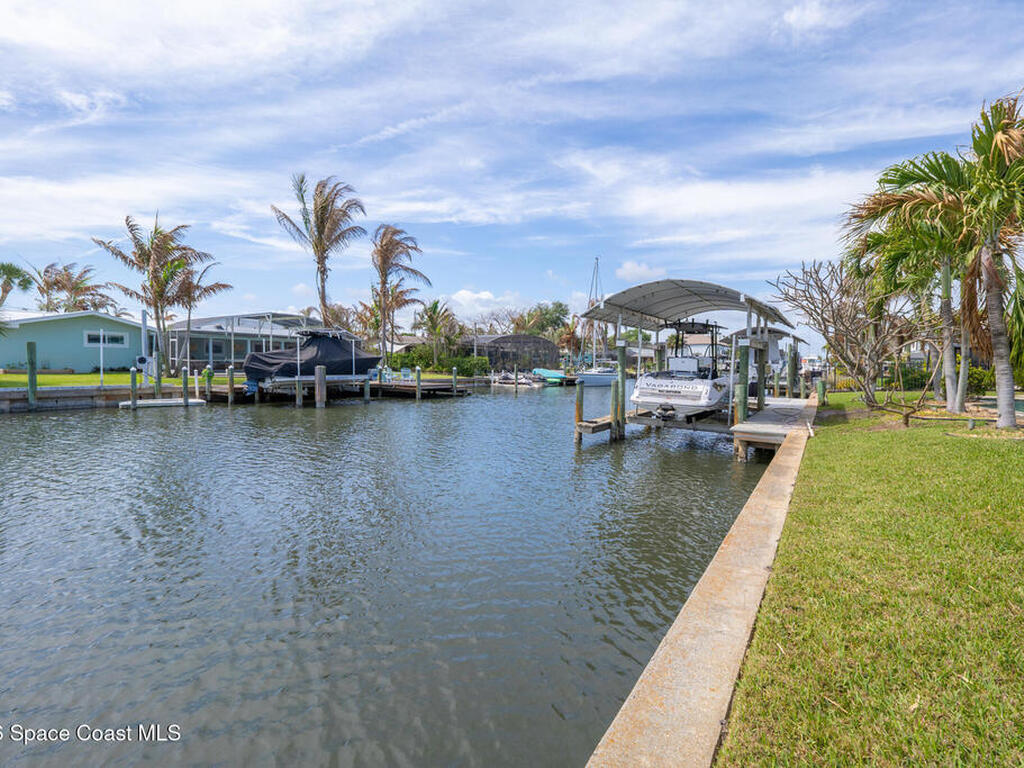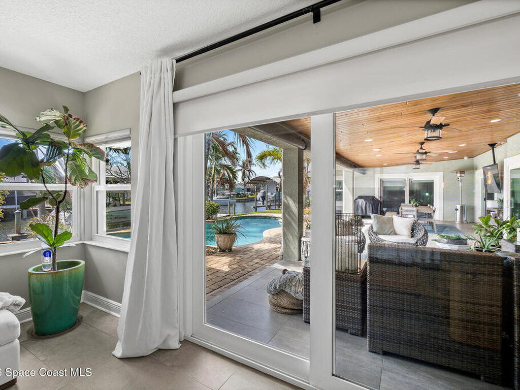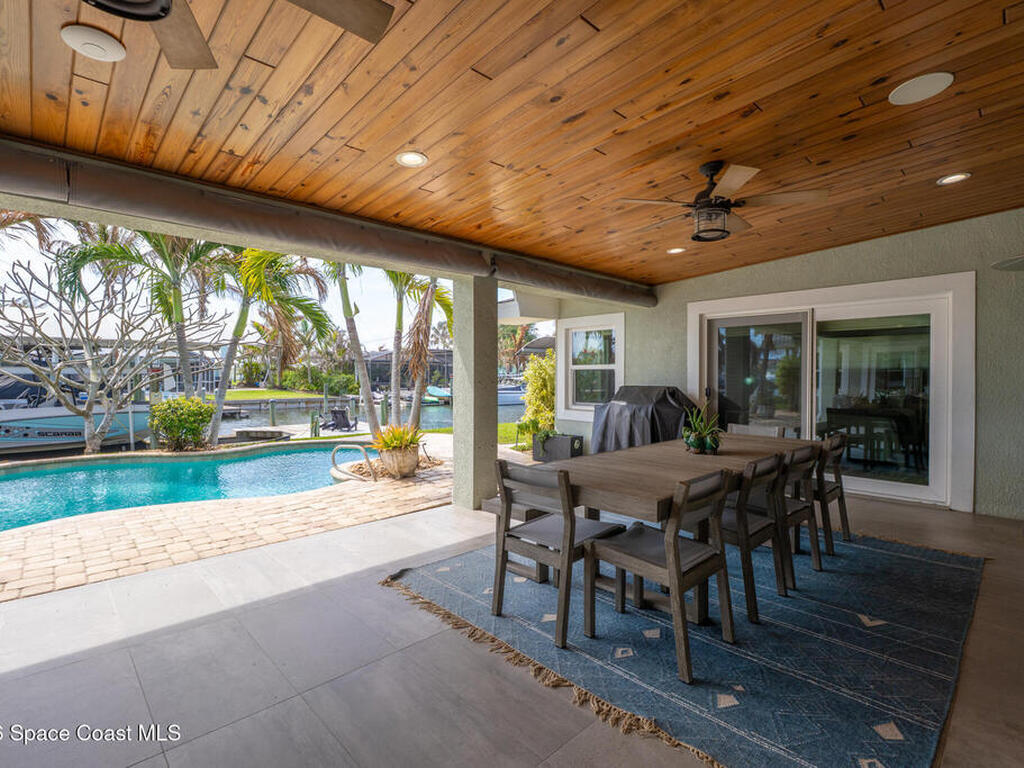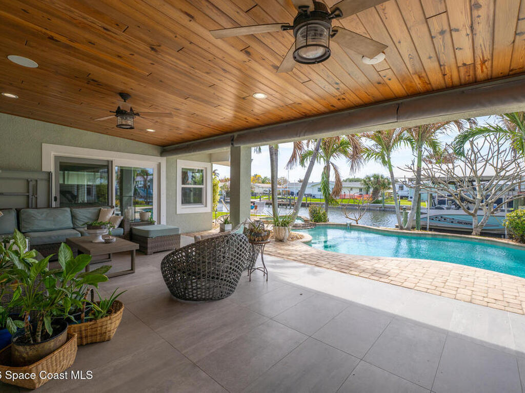 This spectacular one-story updated modern deep-water canal home is in one of Indian Harbour Beach's most desirable neighborhoods on a cul-de-sac: a terrific location, close to shopping, restaurants, groceries, yet private and quiet surroundings. Luxury living in this gorgeous completely remodeled home that won home of the year and includes a chef enthusiast kitchen with Jenn-Air appliances, large living area with a place for everyone in the family. The 16-foot glass sliding door opens the house to a large, tiled lanai to expand your living space. A beautiful master bedroom looks out to lanai and pool complete with closet/dressing room. A second guest suite located on the other side of the home also offers access to the lanai and pool. A 3rd bedroom and bathroom as well as a large indoor laundry room round out this home. Bathed in natural light, this home radiates warmth and elegance, while its solid construction and impact-rated openings including porch screens and a natural gas