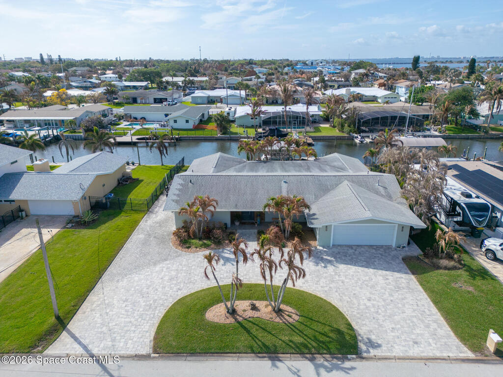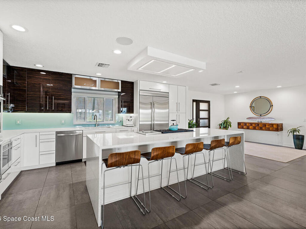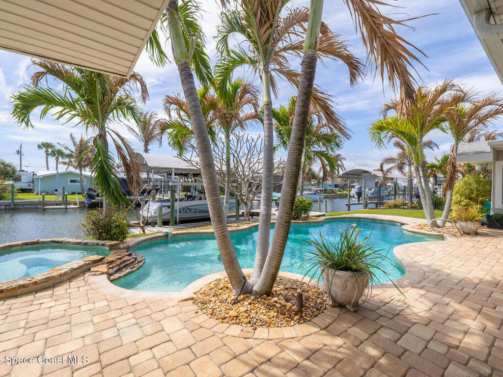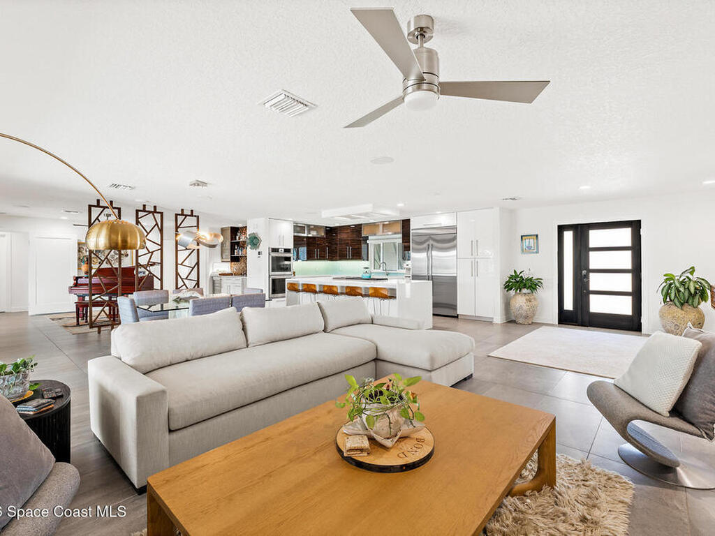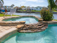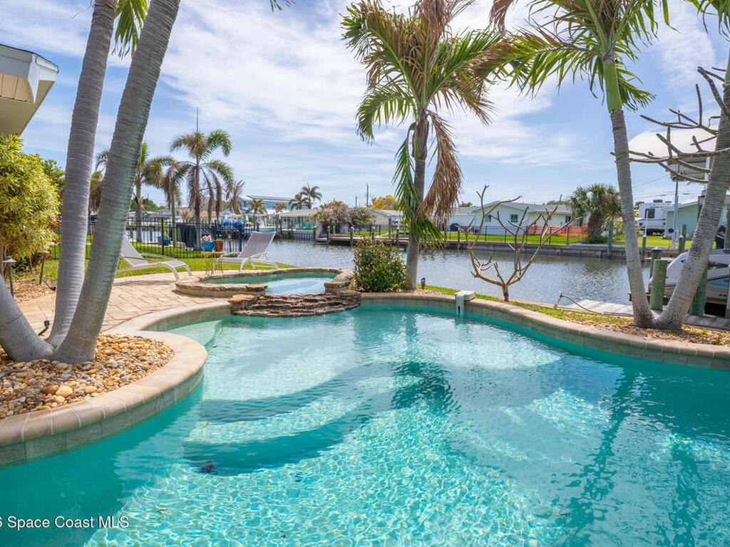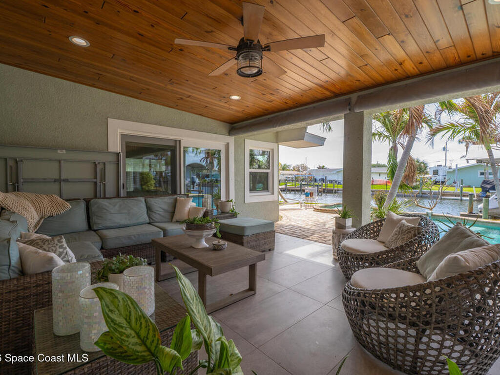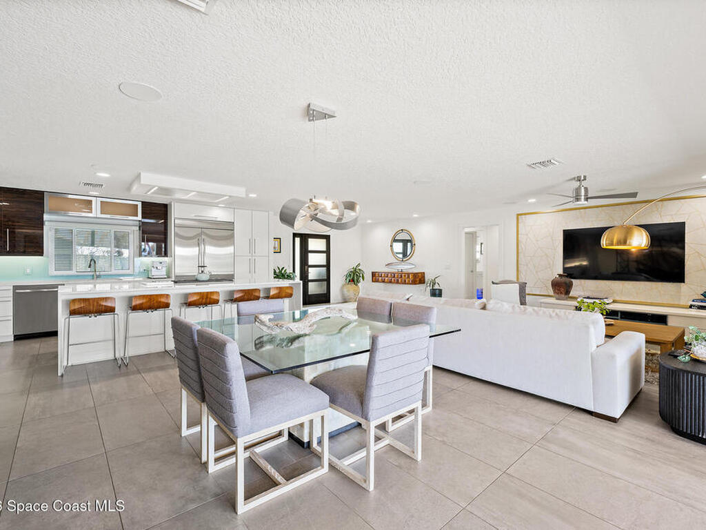 This spectacular one-story updated modern deep-water canal home is in one of Indian Harbour Beach's most desirable neighborhoods on a cul-de-sac: a terrific location, close to shopping, restaurants, groceries, yet private and quiet surroundings. Luxury living in this gorgeous completely remodeled home that won home of the year and includes a chef enthusiast kitchen with Jenn-Air appliances, large living area with a place for everyone in the family. The 16-foot glass sliding door opens the house to a large, tiled lanai to expand your living space. A beautiful master bedroom looks out to lanai and pool complete with closet/dressing room. A second guest suite located on the other side of the home also offers access to the lanai and pool. A 3rd bedroom and bathroom as well as a large indoor laundry room round out this home. Bathed in natural light, this home radiates warmth and elegance, while its solid construction and impact-rated openings including porch screens and a natural gas