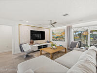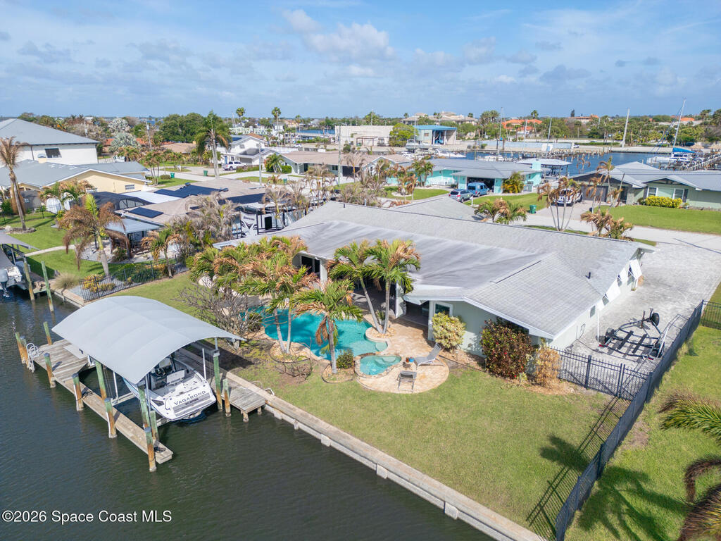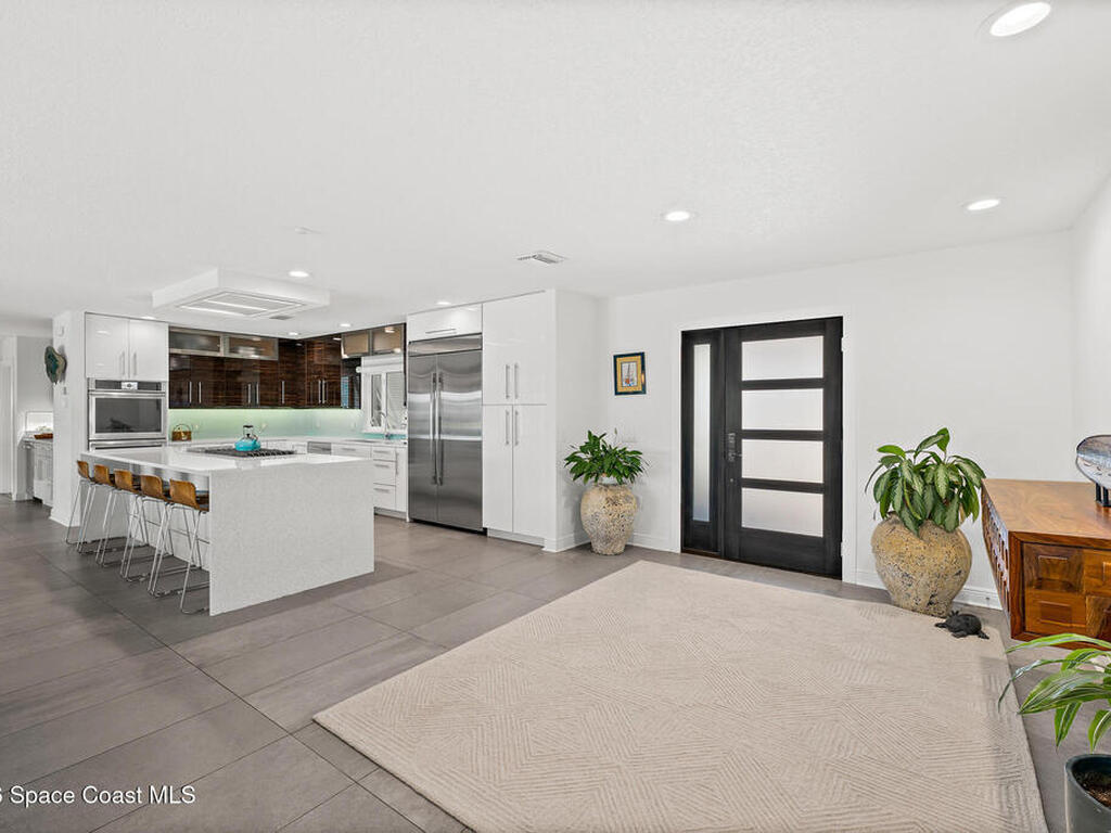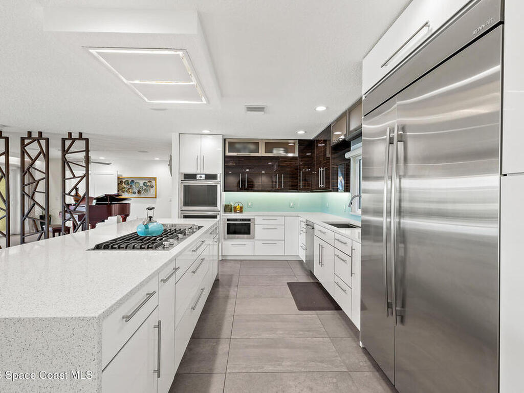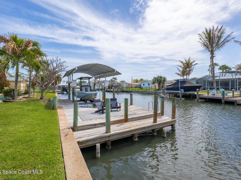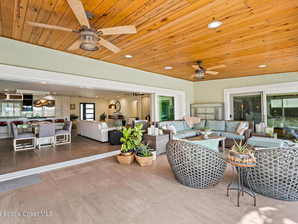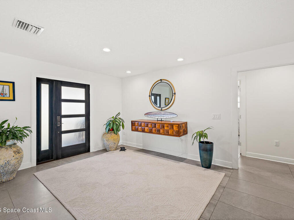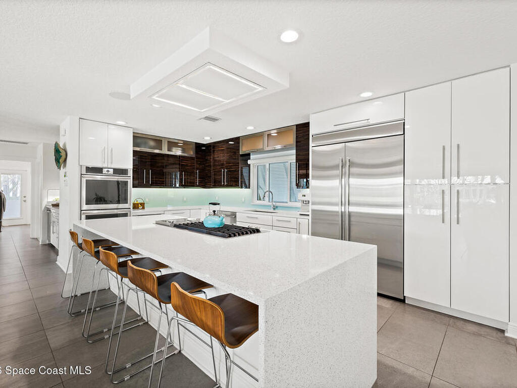 This spectacular one-story updated modern deep-water canal home is in one of Indian Harbour Beach's most desirable neighborhoods on a cul-de-sac: a terrific location, close to shopping, restaurants, groceries, yet private and quiet surroundings. Luxury living in this gorgeous completely remodeled home that won home of the year and includes a chef enthusiast kitchen with Jenn-Air appliances, large living area with a place for everyone in the family. The 16-foot glass sliding door opens the house to a large, tiled lanai to expand your living space. A beautiful master bedroom looks out to lanai and pool complete with closet/dressing room. A second guest suite located on the other side of the home also offers access to the lanai and pool. A 3rd bedroom and bathroom as well as a large indoor laundry room round out this home. Bathed in natural light, this home radiates warmth and elegance, while its solid construction and impact-rated openings including porch screens and a natural gas