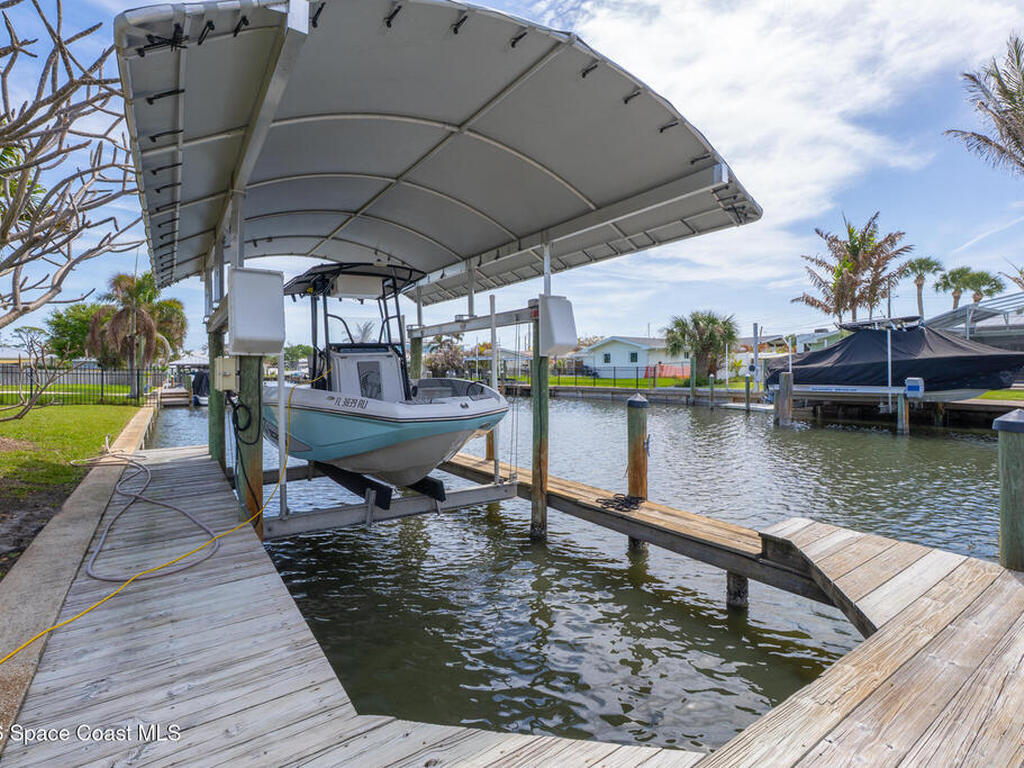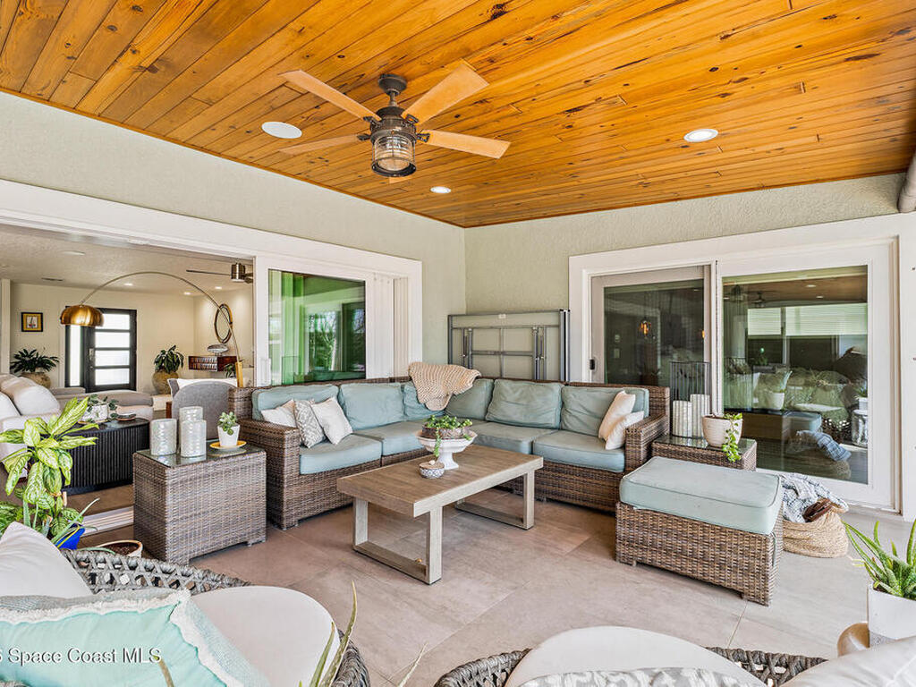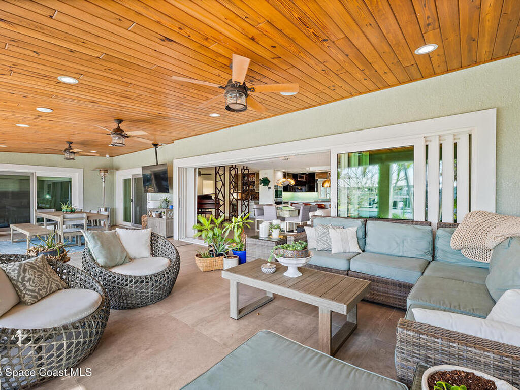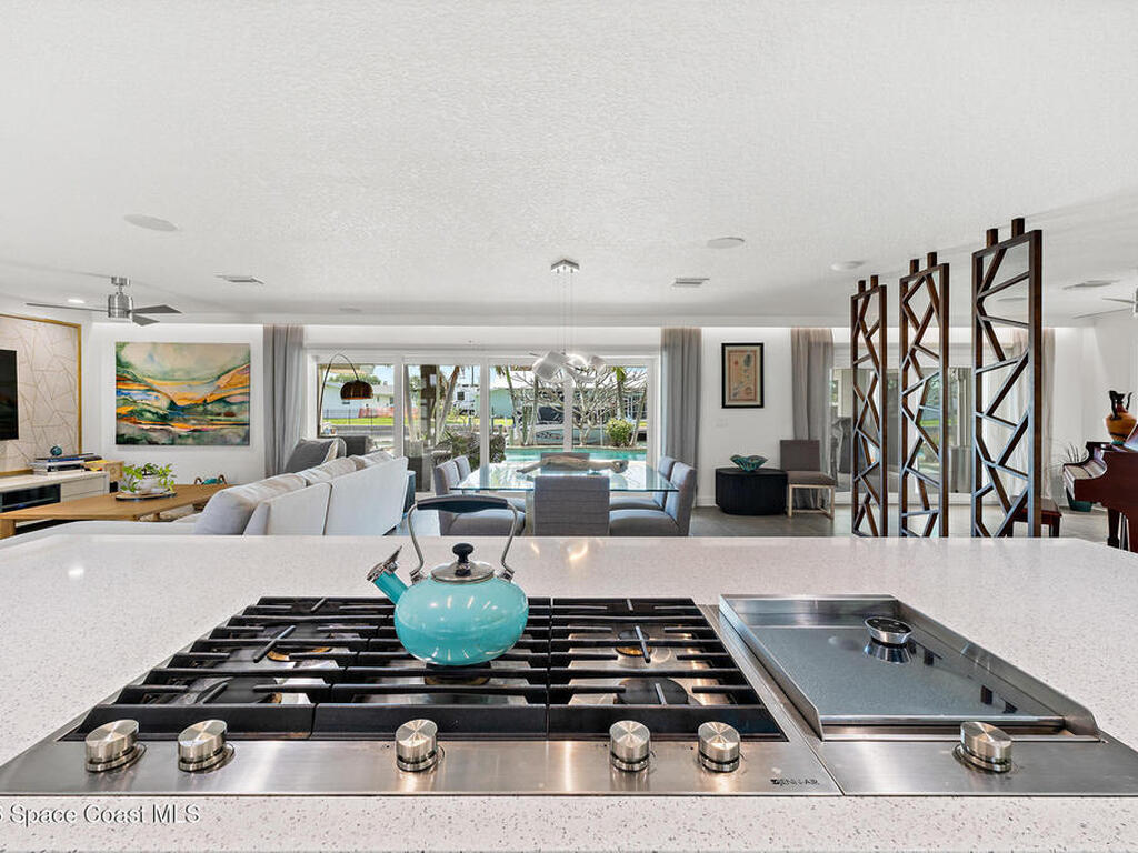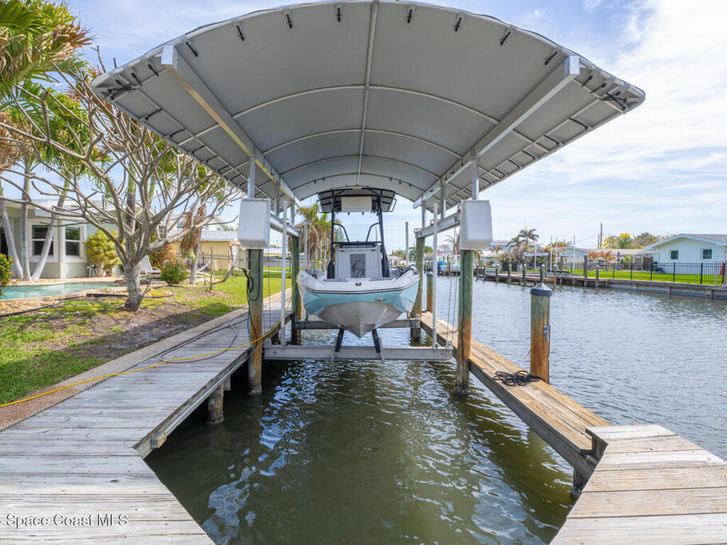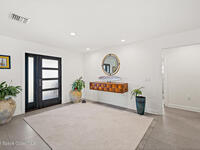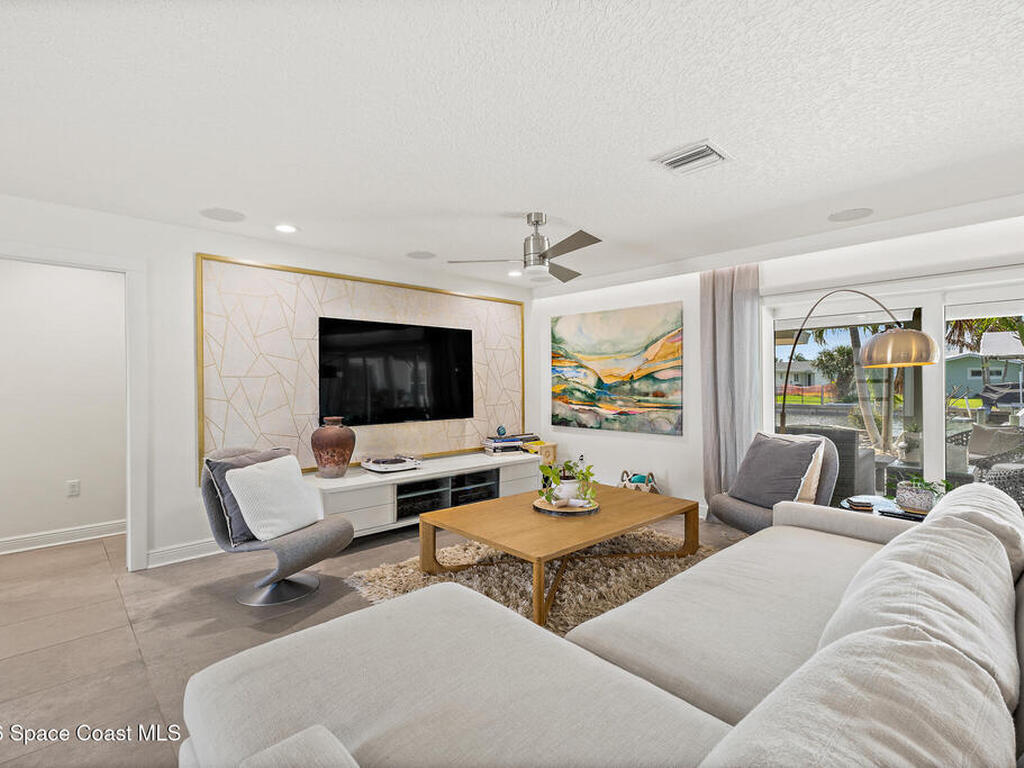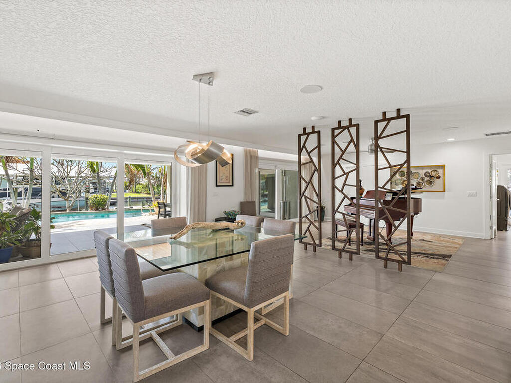 This spectacular one-story updated modern deep-water canal home is in one of Indian Harbour Beach's most desirable neighborhoods on a cul-de-sac: a terrific location, close to shopping, restaurants, groceries, yet private and quiet surroundings. Luxury living in this gorgeous completely remodeled home that won home of the year and includes a chef enthusiast kitchen with Jenn-Air appliances, large living area with a place for everyone in the family. The 16-foot glass sliding door opens the house to a large, tiled lanai to expand your living space. A beautiful master bedroom looks out to lanai and pool complete with closet/dressing room. A second guest suite located on the other side of the home also offers access to the lanai and pool. A 3rd bedroom and bathroom as well as a large indoor laundry room round out this home. Bathed in natural light, this home radiates warmth and elegance, while its solid construction and impact-rated openings including porch screens and a natural gas