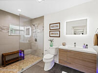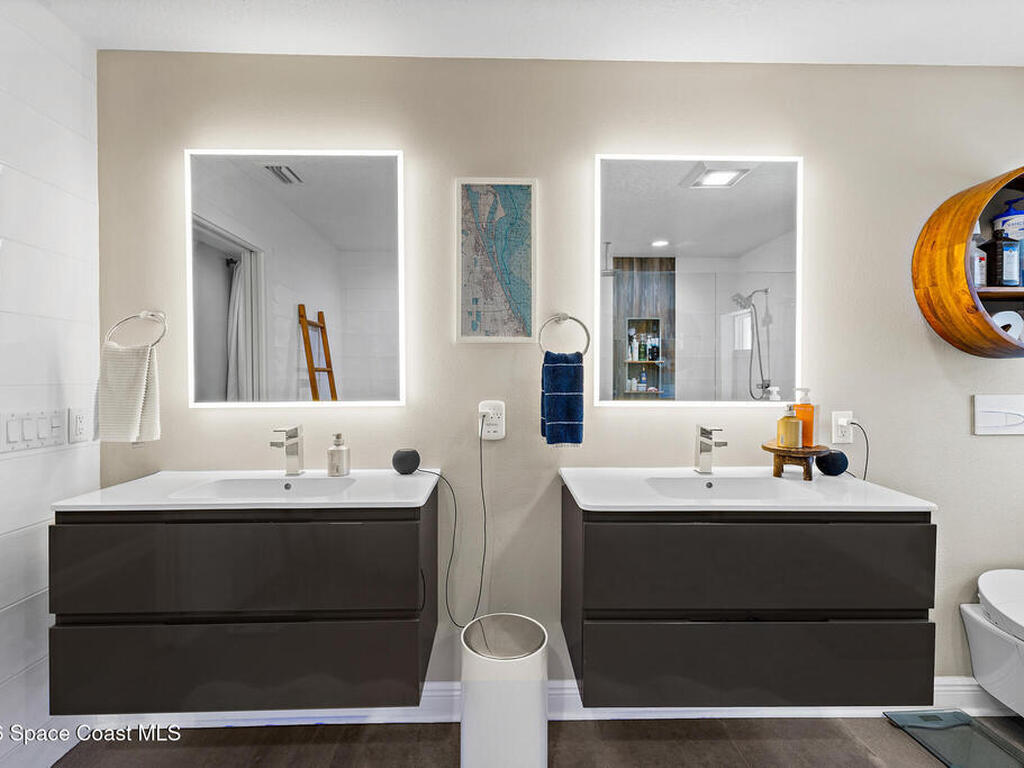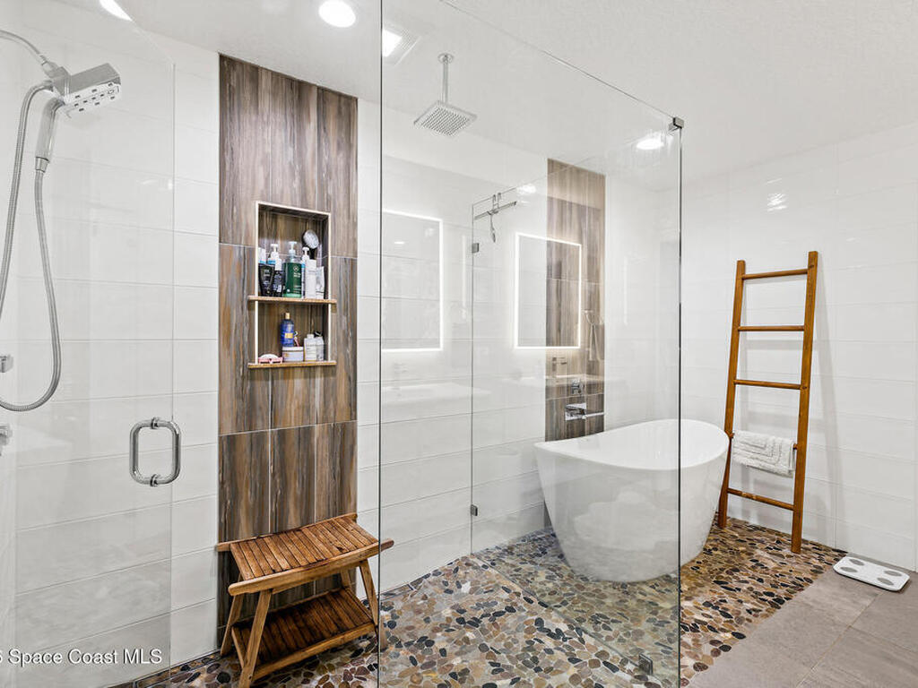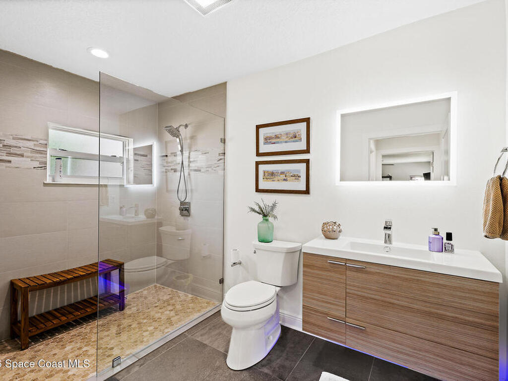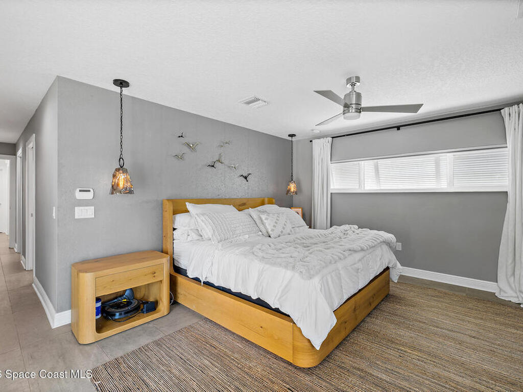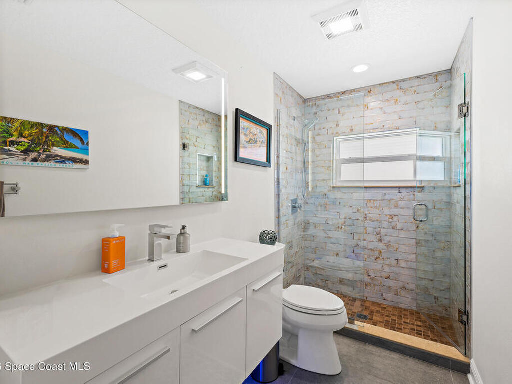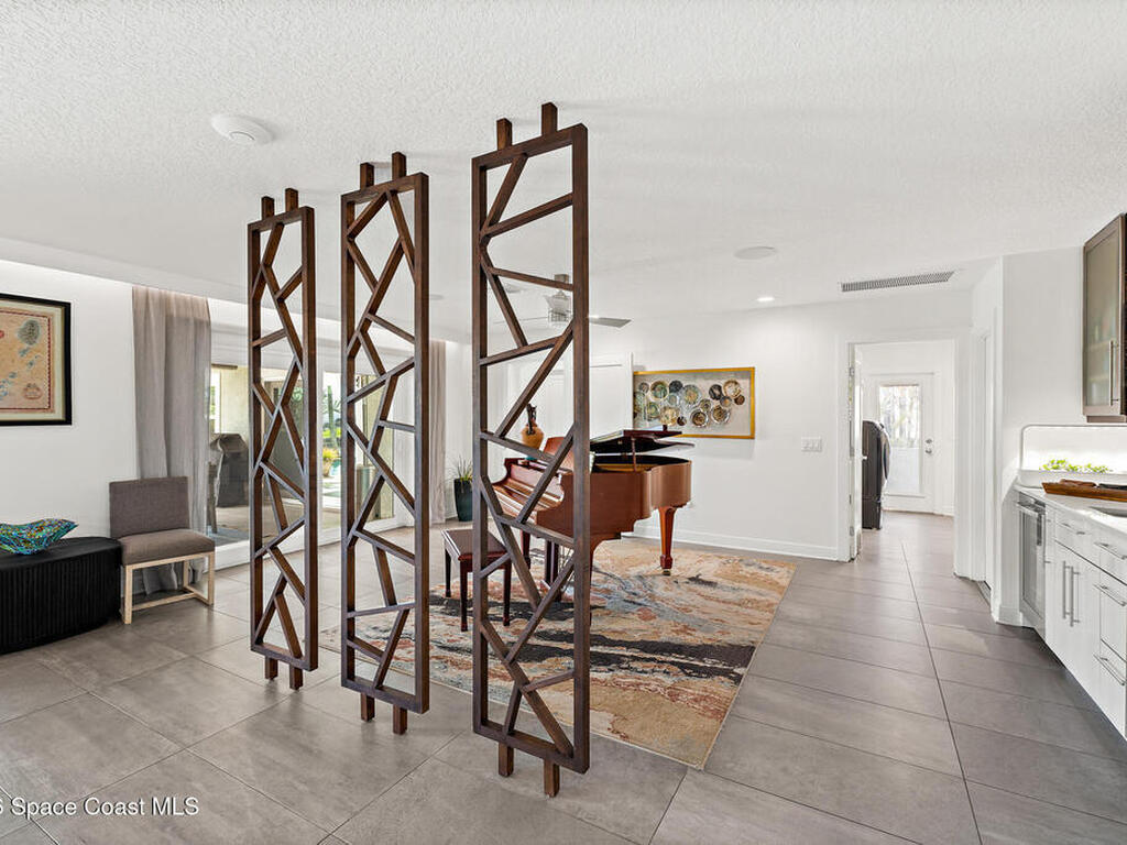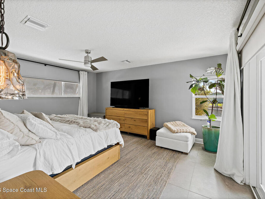 This spectacular one-story updated modern deep-water canal home is in one of Indian Harbour Beach's most desirable neighborhoods on a cul-de-sac: a terrific location, close to shopping, restaurants, groceries, yet private and quiet surroundings. Luxury living in this gorgeous completely remodeled home that won home of the year and includes a chef enthusiast kitchen with Jenn-Air appliances, large living area with a place for everyone in the family. The 16-foot glass sliding door opens the house to a large, tiled lanai to expand your living space. A beautiful master bedroom looks out to lanai and pool complete with closet/dressing room. A second guest suite located on the other side of the home also offers access to the lanai and pool. A 3rd bedroom and bathroom as well as a large indoor laundry room round out this home. Bathed in natural light, this home radiates warmth and elegance, while its solid construction and impact-rated openings including porch screens and a natural gas