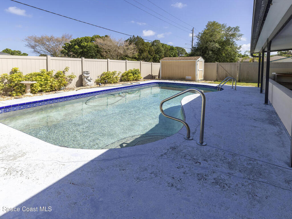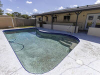 A quaint, well maintained pool home with no HOA! 2 bedrooms and 1 full bath and a powder bath. All the high ticket items have been taken care of such as, new roof in 2023, A/C ducts vacuumed 2026, new A/C system 2026, hot water heater 2020, hurricane rated garage door. Fenced back yard with a built in pool (does need to be resurfaced.) All pool equipment in fairly new and in great working order. Pool is clear clean and ready to swim in!A large built in covered bar measuring approx. 15 ft with three lovely ceiling fans for those warm Florida days while you are outside enjoying that built in pool. This home is very clean inside with the same flooring throughout the home. Garage can fit one car and has a washer and dryer a step up. Come see this lovely home for yourself!