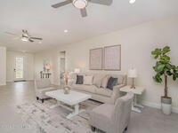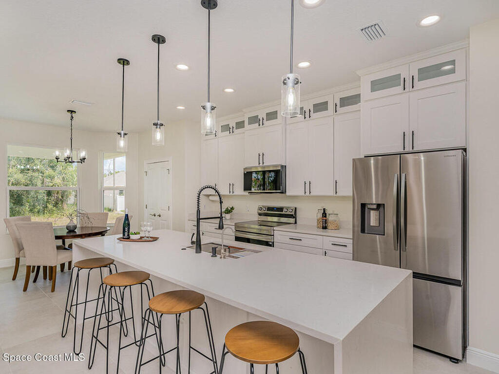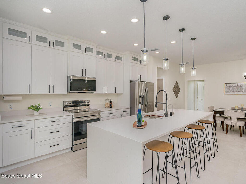 Every home has a story, but this one feels like it's been waiting just for you. Positioned on a desirable corner lot, its striking stone facade and inviting entrance create an instant sense of welcome. Step inside and you're surrounded by light and space, with soaring 9.4-foot ceilings and elegant 8-foot doors setting the tone for modern living.At the heart of the home, the kitchen takes center stage a nine-foot quartz island ready for morning coffee, holiday meals, and late-night conversations. Porcelain tile flows seamlessly throughout, leading you to the owner's suite where a spa-inspired bath with a freestanding soaking tub and walk-in shower offers the perfect escape.Quality details are everywhere from the premium water treatment system with reverse osmosis to the epoxy-coated garage floor and freshly painted porches designed for enjoying Florida's warm days.