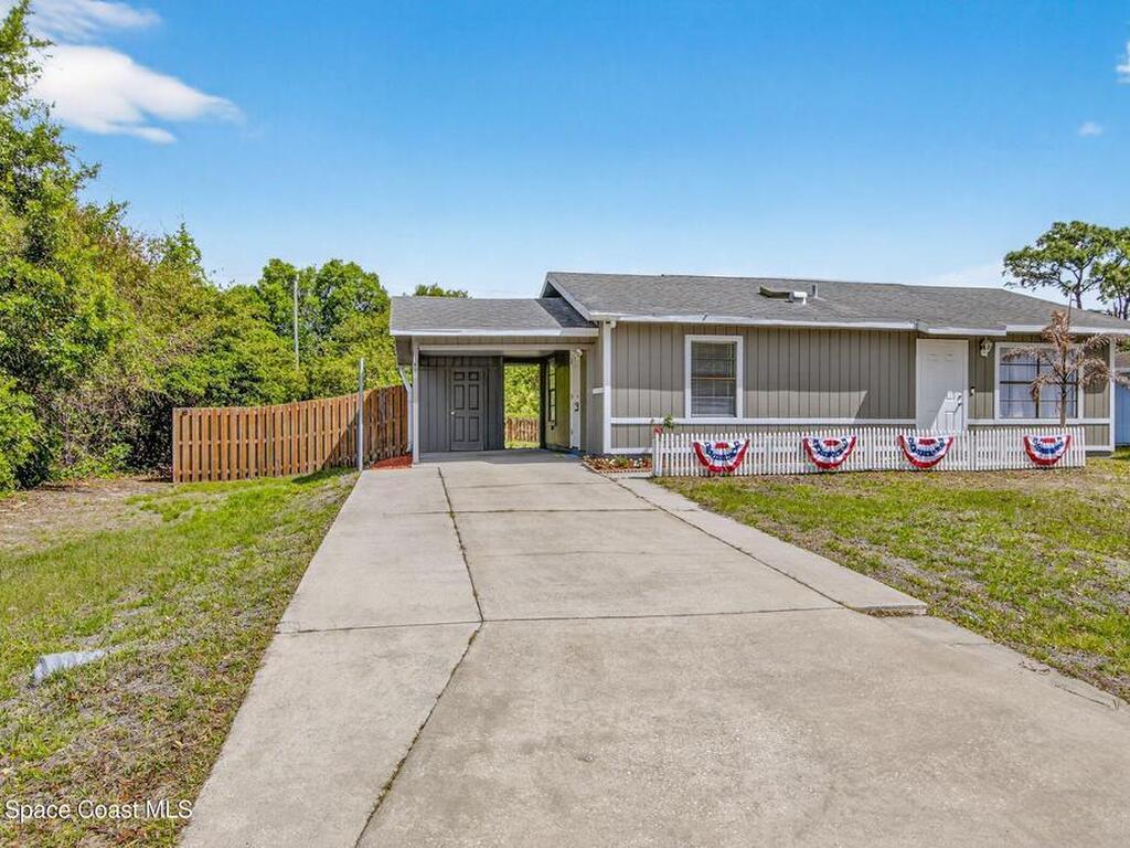 First Time Home Buyer? Retiring? Investing? Adorable 2 Bedroom/1 Bath Home on Huge, Fenced Lot in Desirable SE Palm Bay! Vaulted Ceilings and Functional Open Layout - this Home Lives Large and Offers 2 Bedrooms, Living room, Kitchen and Familyroom. Indoor Washer & Dryer Hookups. Well Water with Water Softener. Attached Carport with Closet & Shed in the Backyard. Lots of Room to Play and No HOA! Commuters Dream - Easy Access to I-95, Major Employers, Bayside Lakes Shopping & Golf. Come Live the Florida Lifestyle at an Affordable Price! ~Seller Offering a Brand New Roof Prior to Closing~