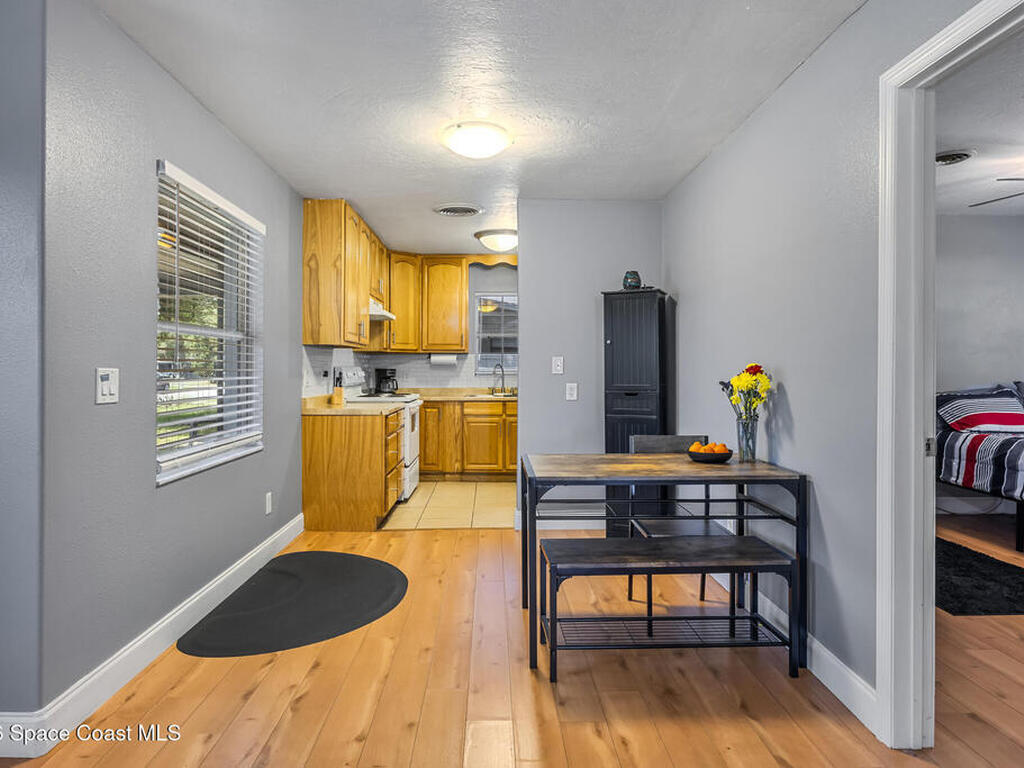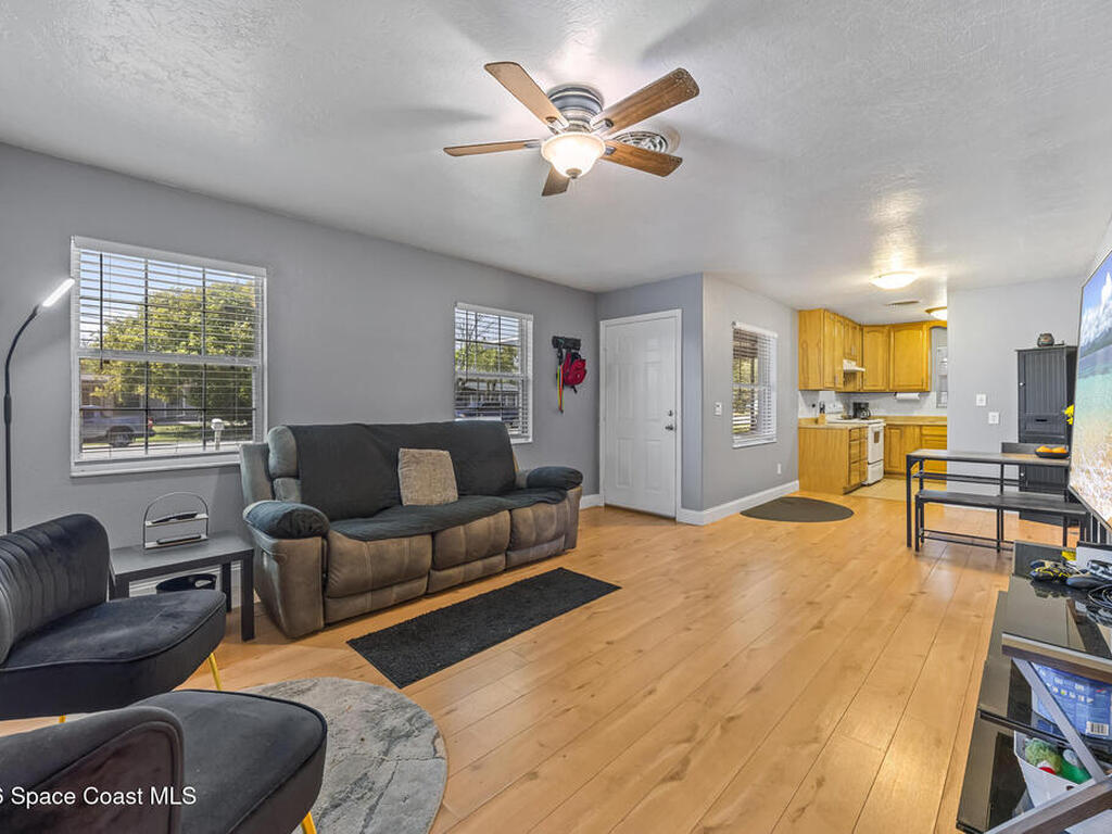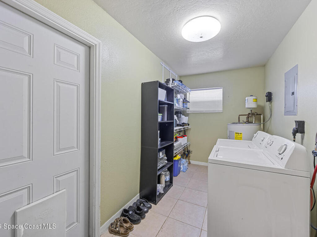 Solid concrete block construction meets comfort and convenience in this well-maintained 4-bedroom, 2-bathroom home in Rockledge! Featuring a 2019 roof and tile and laminate flooring throughout. NO CARPET! This home offers low-maintenance living with a modern feel.Enjoy the convenience of indoor laundry and step outside to a huge, fully fenced backyard--perfect for pets, entertaining, or storing your toys. An 8x12 metal shed provides additional storage space for tools and equipment.Ideally located just minutes from shopping, dining, and popular attractions, with easy access to major roadways including 520, I-95, and 528. Making trips to Orlando, the airport, or anywhere in Brevard County a breeze.Don't miss this opportunity to own a centrally located home with solid construction and great features!