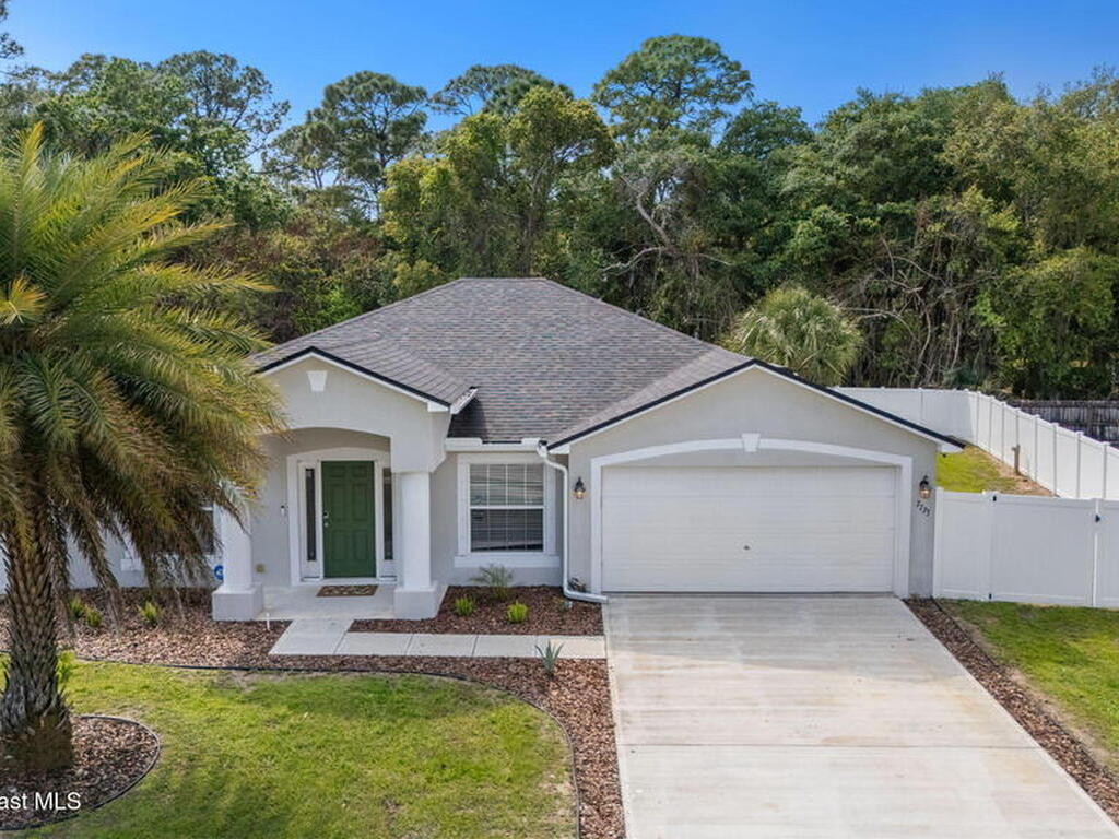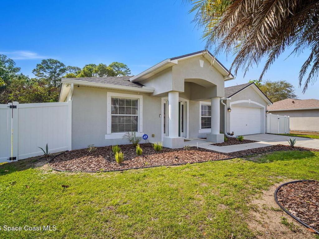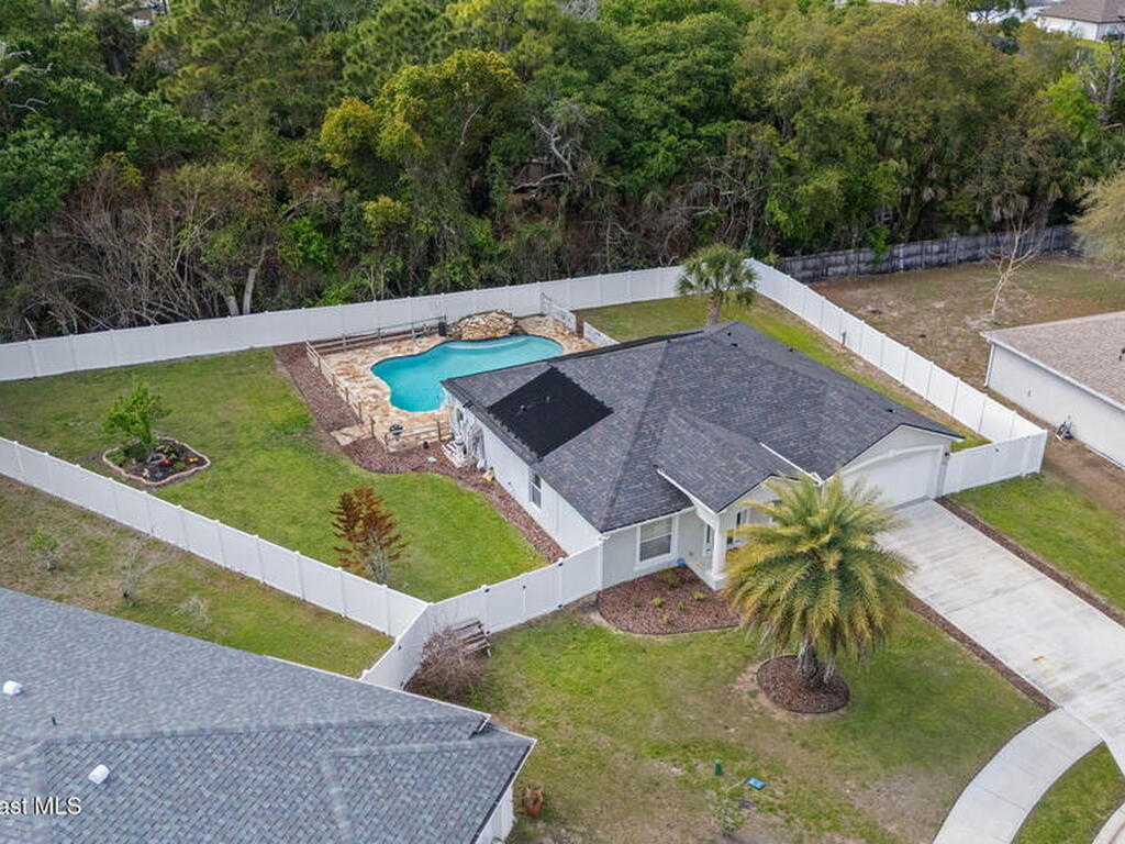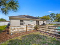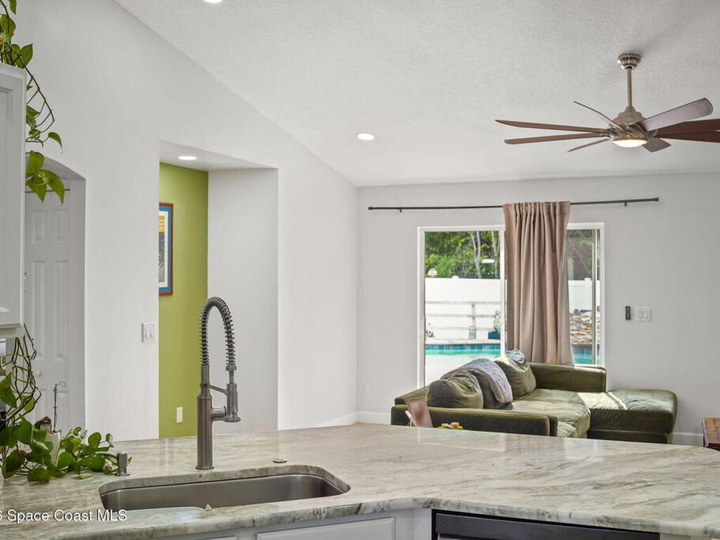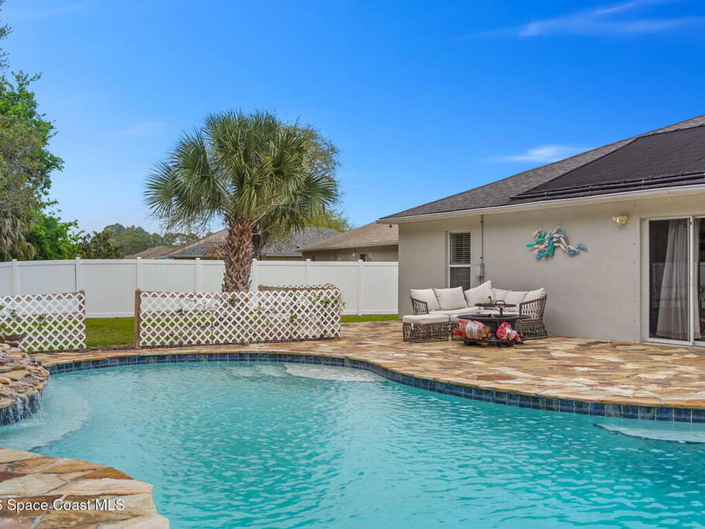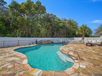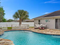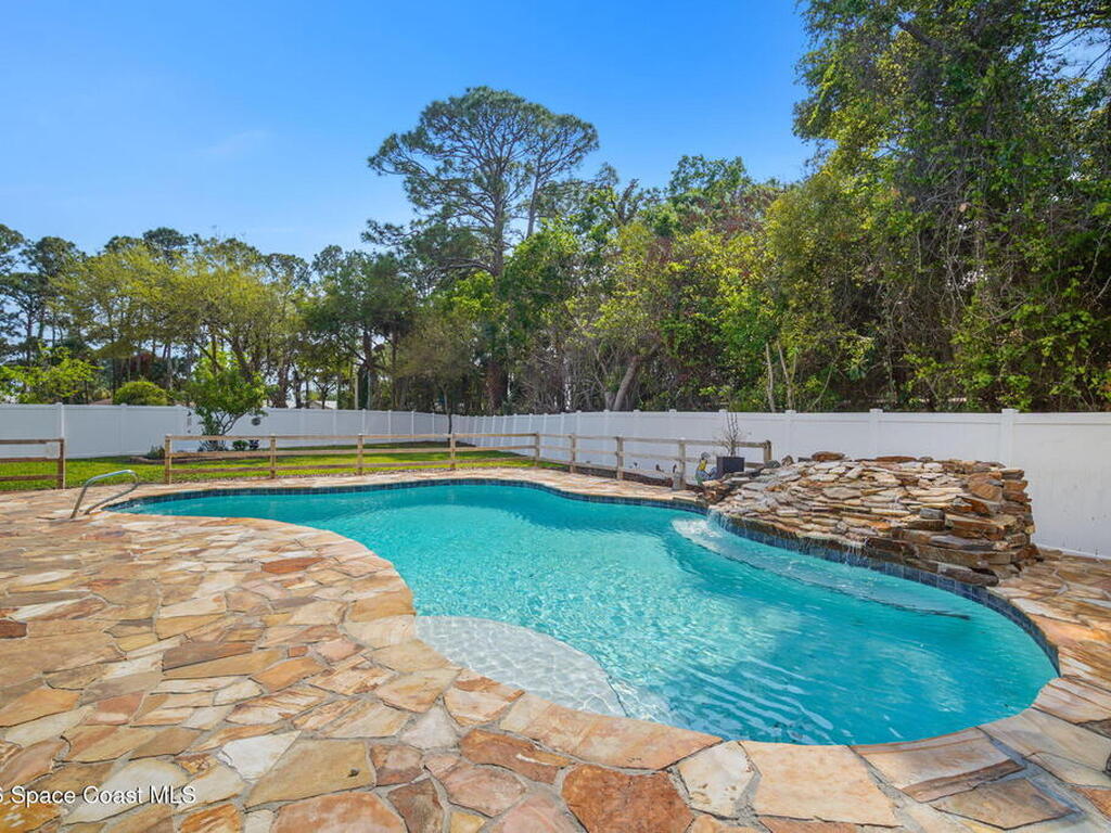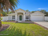 Move-in ready saltwater pool home in Cypress Woods of Port St. John with a low HOA that includes a park and playground. Built in 2004 with concrete block construction, this home has been extensively updated over the past two years. Interior improvements include new tile flooring, baseboards, smooth ceilings, updated lighting and fans, fresh interior paint, and fully renovated bathrooms, highlighted by a remodeled primary suite with custom finishes and an upgraded closet. The kitchen features granite countertops, wood cabinetry, and newer appliances, all opening to the main living space. Major components have been addressed, including a 2020 roof, 2023 AC, 2024 water heater, hurricane shutters, and a fully upgraded saltwater pool system with new equipment, lighting, and a fountain feature. Additional highlights include a vinyl fenced yard, irrigation system, water softener, and security system. Fourth bedroom is an office with French doors.
