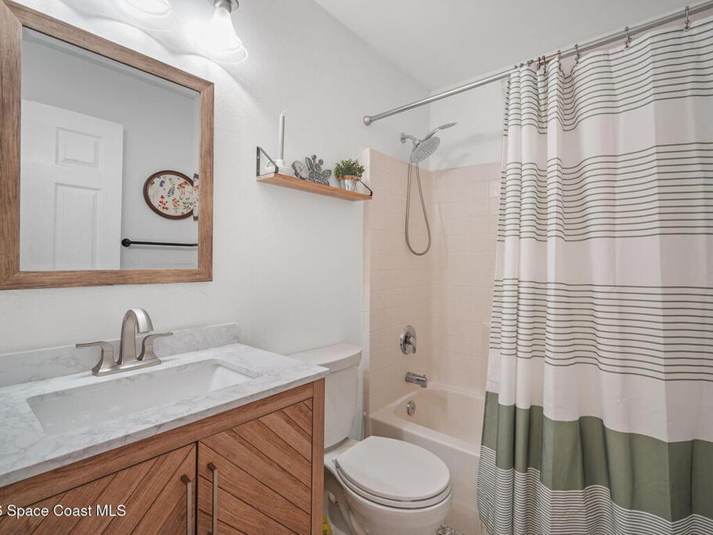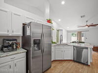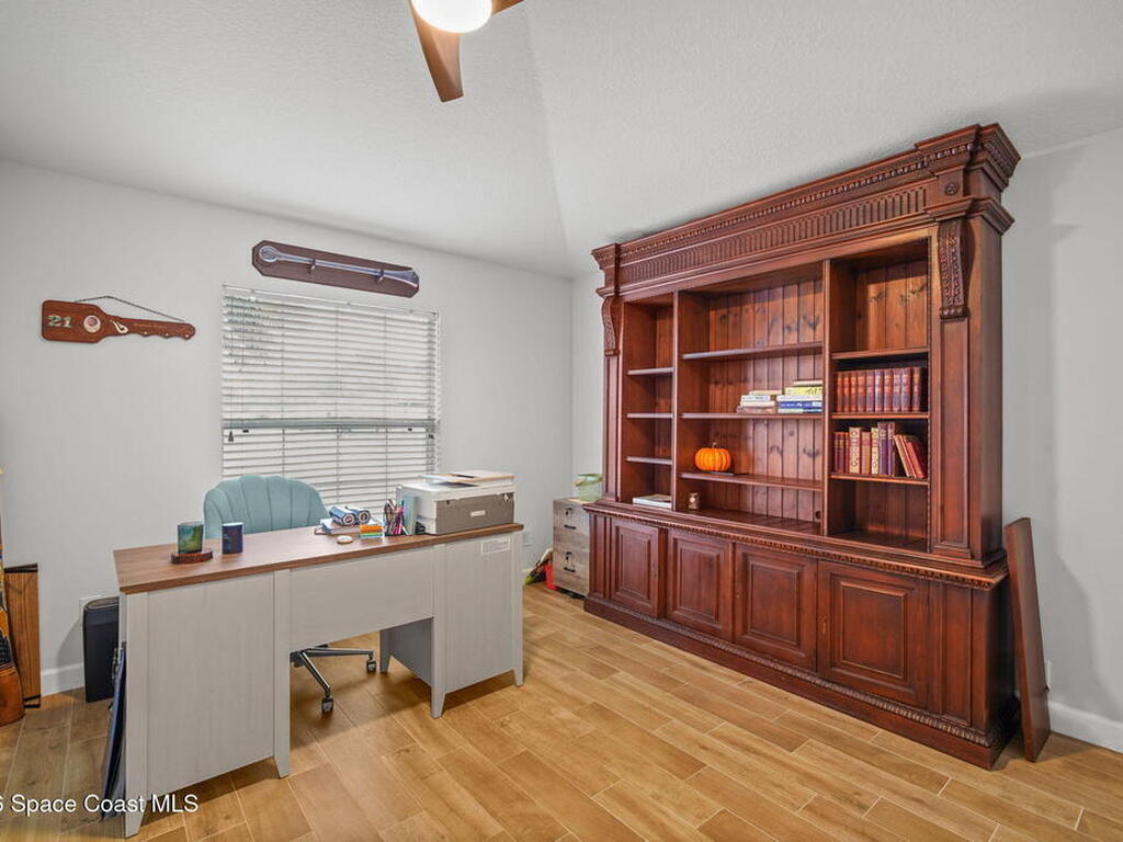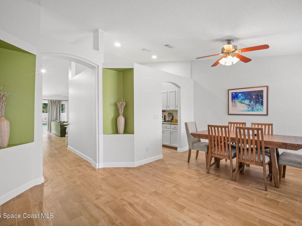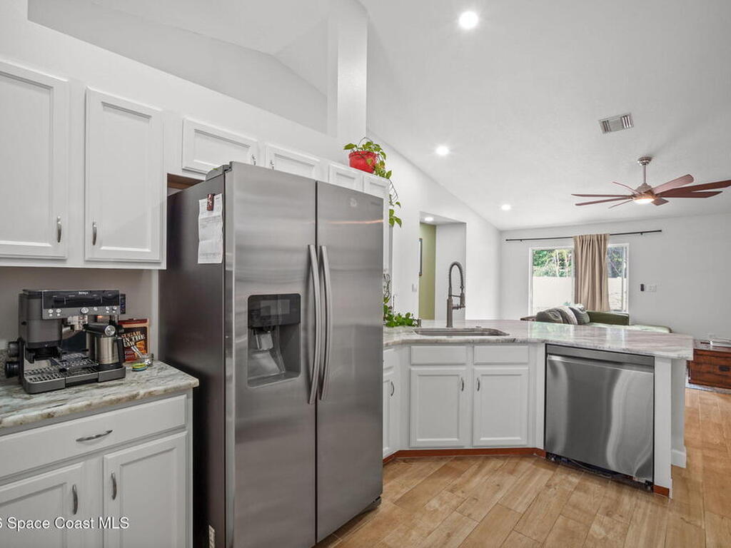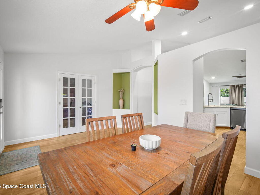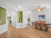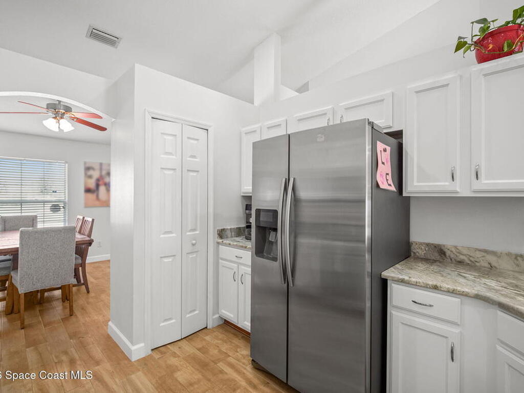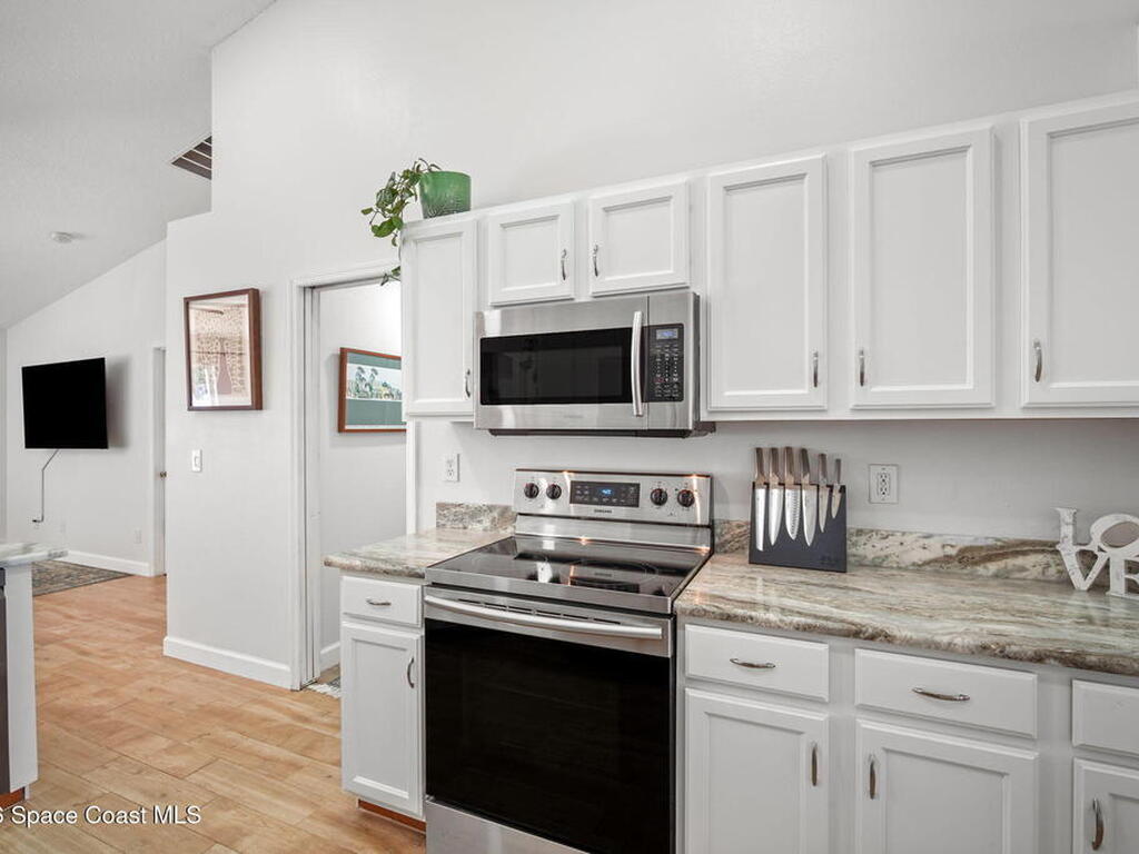 Move-in ready saltwater pool home in Cypress Woods of Port St. John with a low HOA that includes a park and playground. Built in 2004 with concrete block construction, this home has been extensively updated over the past two years. Interior improvements include new tile flooring, baseboards, smooth ceilings, updated lighting and fans, fresh interior paint, and fully renovated bathrooms, highlighted by a remodeled primary suite with custom finishes and an upgraded closet. The kitchen features granite countertops, wood cabinetry, and newer appliances, all opening to the main living space. Major components have been addressed, including a 2020 roof, 2023 AC, 2024 water heater, hurricane shutters, and a fully upgraded saltwater pool system with new equipment, lighting, and a fountain feature. Additional highlights include a vinyl fenced yard, irrigation system, water softener, and security system. Fourth bedroom is an office with French doors.