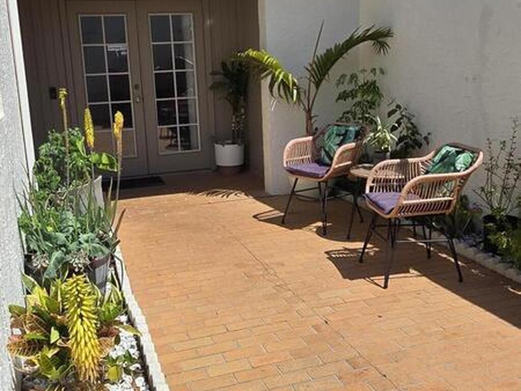 This charming 2-bedroom two bath offers the perfect blend of comfort, privacy and coastal convenience. Tucked away in a quiet cull de sac the home features a secluded front courtyard-an ideal spot for morning coffee-and a private back porch that backs up to the community pool. Inside you will love the updated interior complete with sliding barn doors that maximizes privacy. The master bedroom has a walk-in closet with custom storage system to maximize space. The kitchen is efficiently designed and included a large convection oven in place of traditional oven, it bakes, broils, toasts with convection cooking for faster more even results. A stackable washer and dryer inside unit. for convenience. Perfect primary residence, or seasonal home. This townhouse pairs low-maintenance living with a fantastic location just minutes to beach, shopping and restaurants.