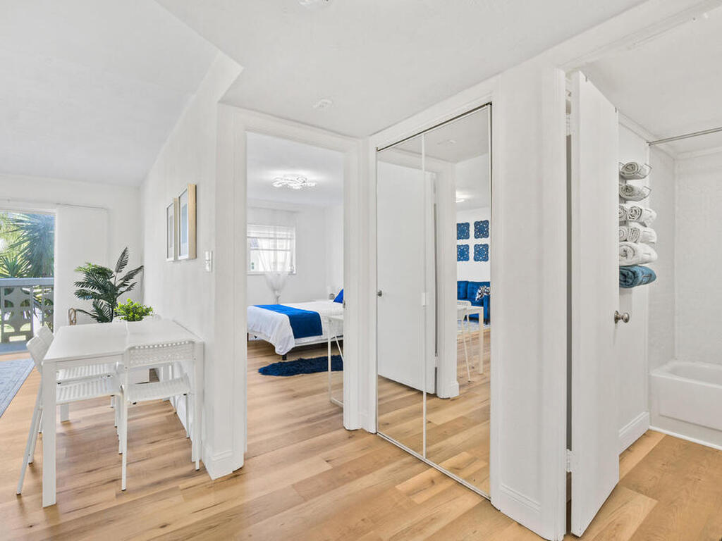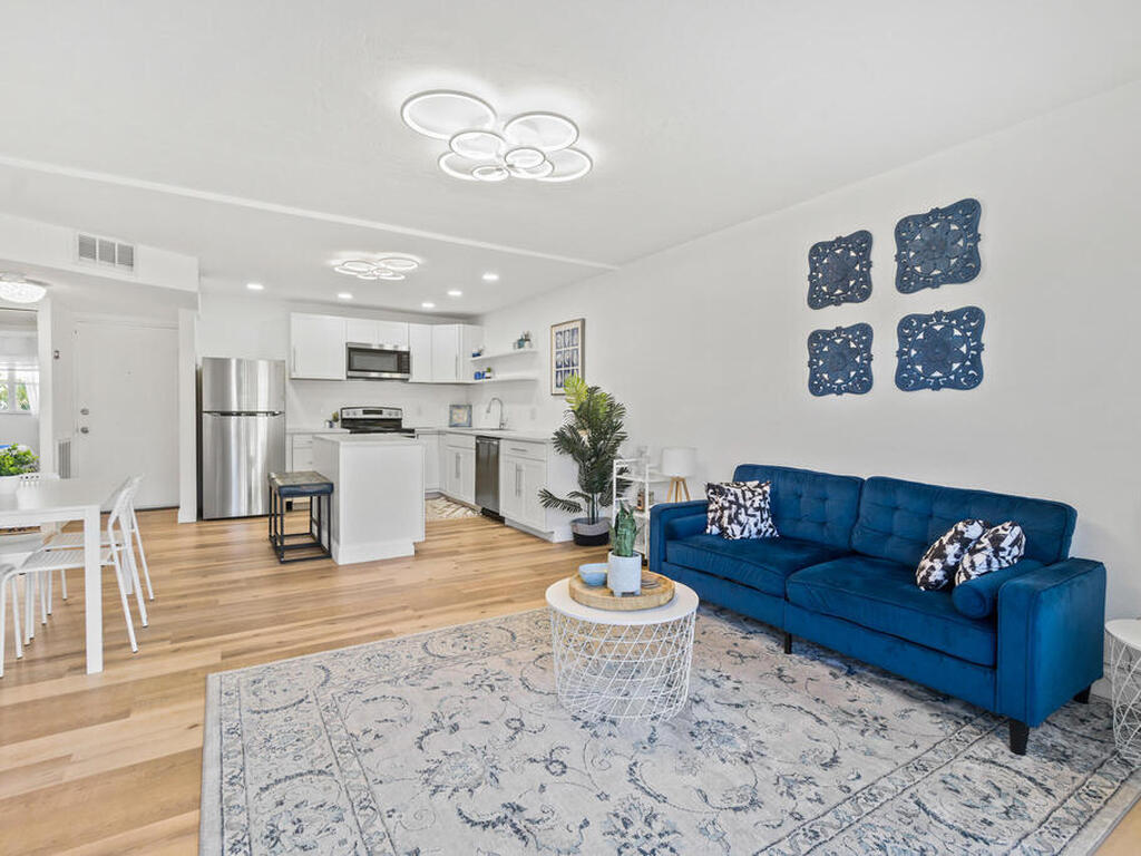 Embrace the coastal lifestyle in this 2024 RENOVATED 1 bed, 1 bath condo--offered fully-equipped, furnished and MOVE-IN READY! This modern unit serves equally well as a primary home, vacation retreat, or investment with a 1-month rental minimum. The open-concept living space features abundant natural light & wood-look vinyl throughout. Step out to your private balcony patio to soak in the breeze or rocket launch views. Meticulously well-kept with HVAC filters changed monthly and a new bathroom fan 12/2025. Residents enjoy a heated pool, laundry facilities, and open parking--with sewer, trash, and water all covered by the fee. You're on a quiet dead-end street less than a mile from public beach access, 5 minutes to Port Canaveral, and 7 minutes to the Cocoa Beach Pier. Downtown Cocoa Beach, shopping, and dining are all nearby, with quick access to the causeways. Orlando and its attractions are just an hour away--making this the perfect home for everything the Space Coast has to offer!