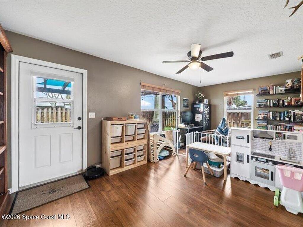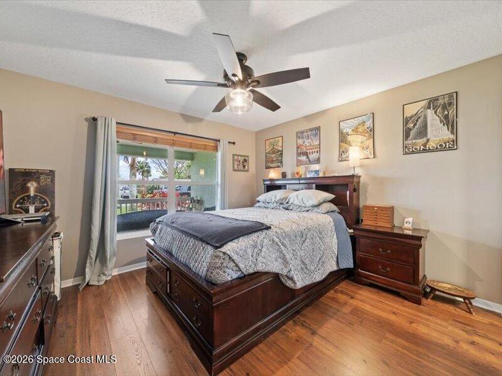 Beachside living that's affordable Effective age 2000 ASSUMABLE MORTGAGE 2.35% ($200K Balance) The House was completely rebuilt in 2000. Metal ROOF 2017/ HVAC 2021/ Water Heater 2020. Home is on a corner lot with lots of palms. There is a sweet front porch and a fenced in yard with pergola and paver decking. Shed in backyard has electric. There are Shutters for all openings Kitchen and bathrooms were updated 2020. Wood laminate flooring throughout the house with the Kitchen and bathrooms having tile floors. Split floor plan. There is a flex room that can be used as family room, office, or playroom. They use it for all three. Indoor laundry room. Move in ready!