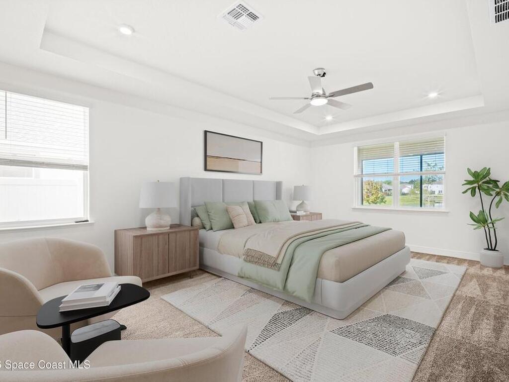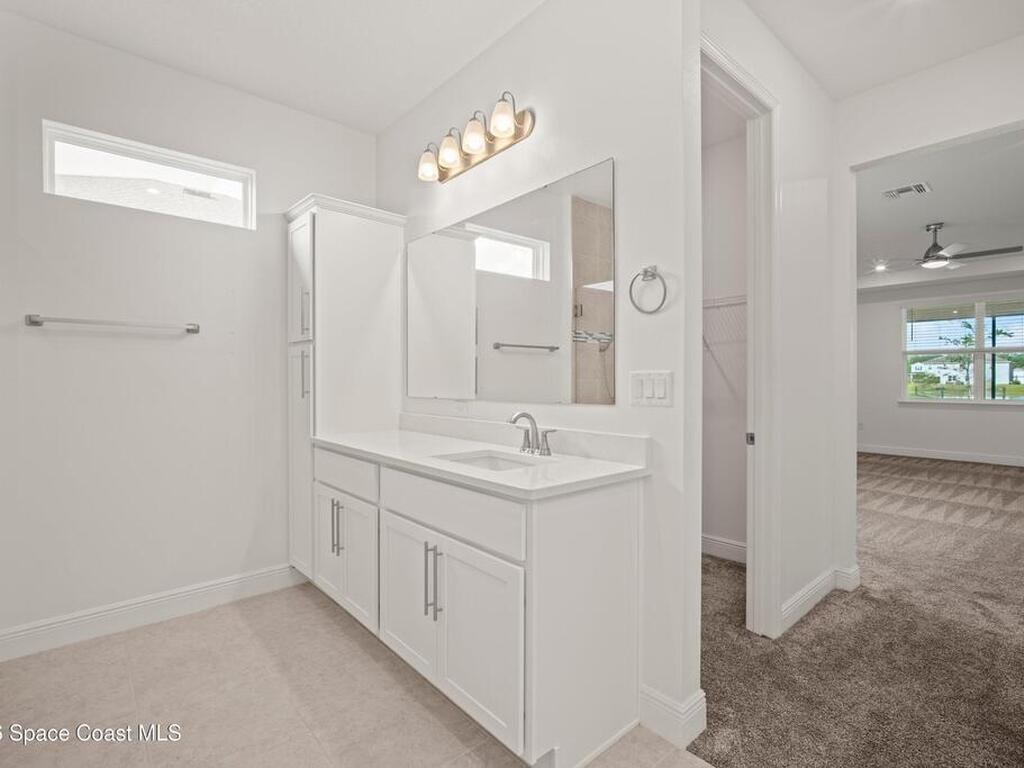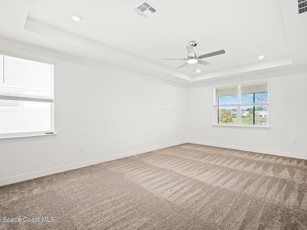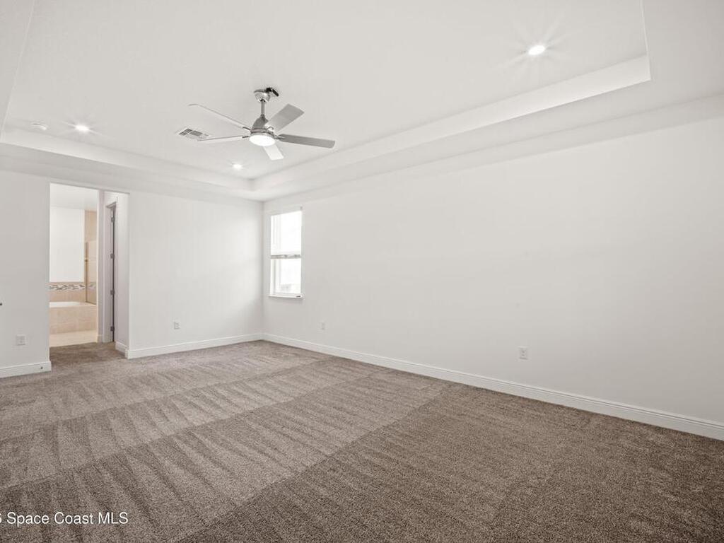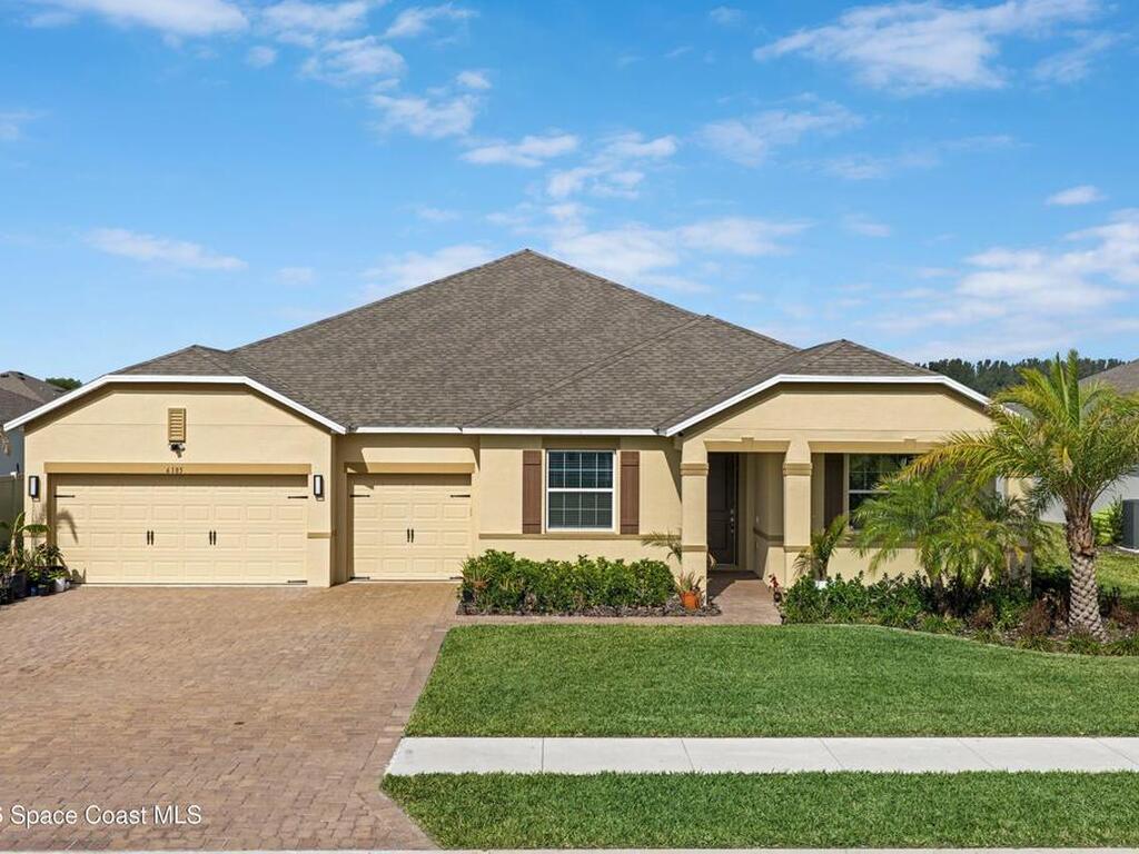 Located in North Merritt Island, this 4-bed, 3-bath home offers over 3, 100 sq ft of a very new construction home as one of the first resale opportunities in the community. If you've been waiting to get into this area without going through the build process, this is your shot. The home sits with an east-to-west exposure, giving you sunset views out back, along with a water view and a screened-in lanai that actually lets you enjoy it. Inside, you've got a layout with high ceilings, a split floor plan, a large main living area, formal dining, and a bonus space that can be an office, playroom, or, with a little creativity, can become a potential fifth bedroom. The primary suite offers two walk-in closets, and additional bedrooms also include walk-in closets. 3-car garage, built in 2024, and located close to major employers like SpaceX, Blue Origin, and NASA. So, how soon do you want the keys?