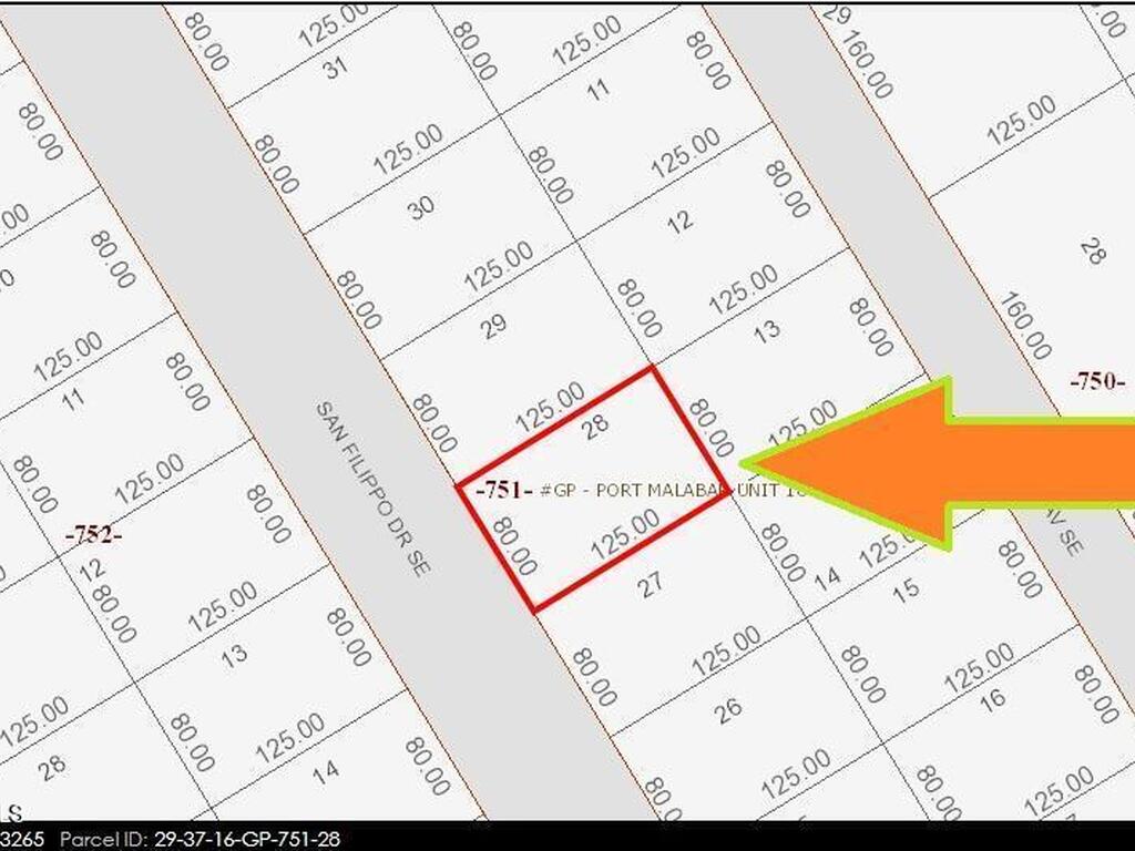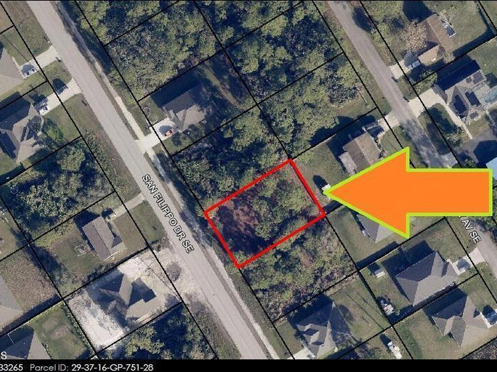 ** San Filippo Property ** 0.23 build-able residential lot (Rs2 Zoning) with city water available located in Port Malabar Unit #16. Sidewalks!!! Nicely located in the southeast section of Palm Bay near PGA Majors and Bayside Lakes Subdivision, this lot is just 1 miles -3 minutes-from Columbia Elementary School, 3.1 miles - 8 minutes to Publix Supermarket, 11.3 miles - 26 minutes to Melbourne International Airport, and 12.8 miles - 25 minutes to the beaches of Indialantic. From exit #173 of I-95 go west on Malabar Road NE for .2 miles, left on San Filippo Drive SE for 2.8 miles. The lot will be on your left.