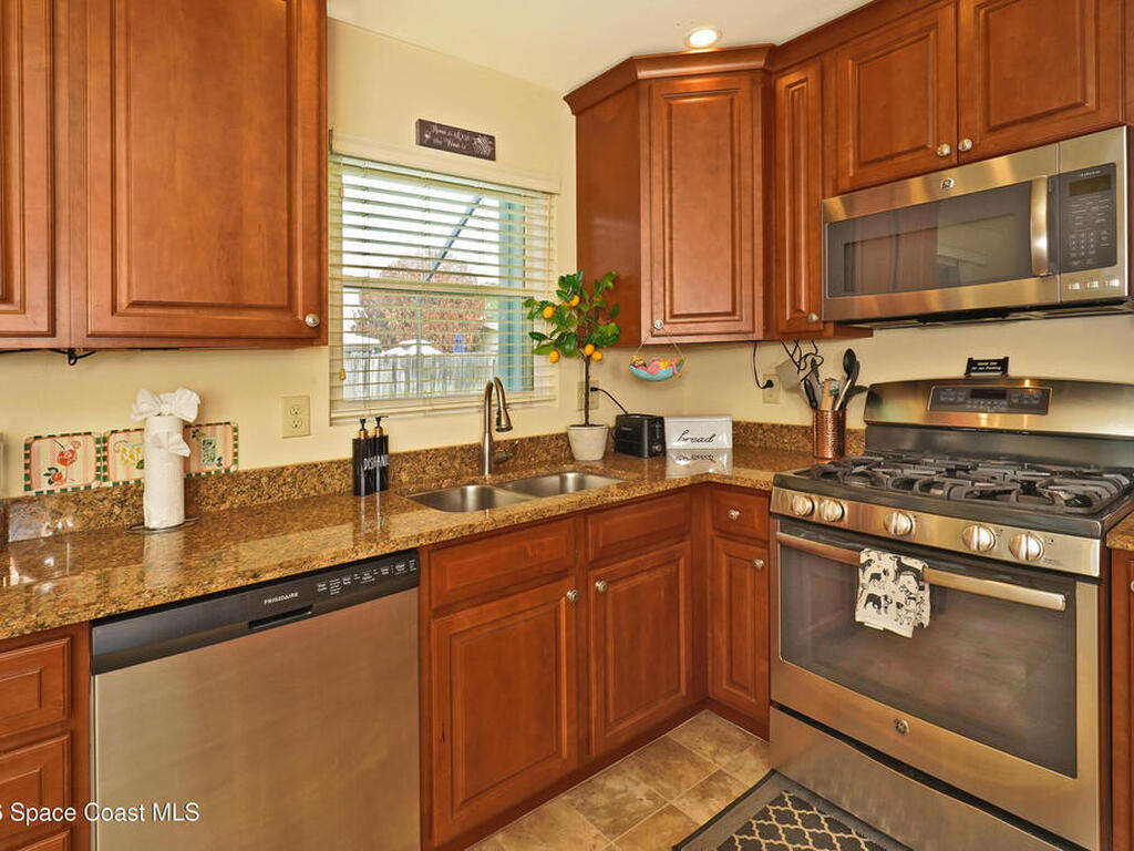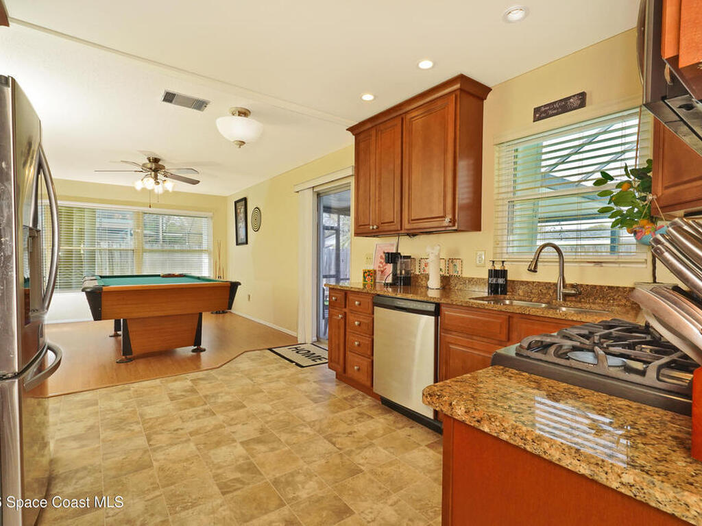 Centrally situated pool home nestled in a desirable family-friendly neighborhood! This property features a full-house generator, upgraded windows, and hurricane shutters for added peace of mind! Welcoming gated front courtyard creates a charming first impression!Step inside to a foyer that opens into a generous sunken living room filled with natural light from expansive windows! Seamlessly connected to the formal dining space! Updated kitchen showcases wood cabinetry, granite countertops, a gas range, and convenient pullout shelving, all overlooking a cozy den with pocket sliding doors leading to the screened patio and pool area! Nearly fully fenced backyard offers added privacy and space to enjoy!