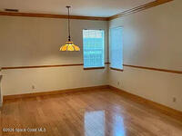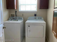 Beautiful custom built 4 bedroom, 2.5 bathroom house in a gated community across from La Cita Country Club. This house offers custom-built features such as real wood floors, a central vacuum system, Chef's Kitchen with a gas cooktop, double wall ovens, custom wood cabinets, desk area, with a spacious walk in pantry. Additional features are high ceilings, a screened patio overlooking the private backyard, an inside laundry room with washer/dryer included. The master bedroom has a shower and two large walk-in closets. The house has a 2 car garage. Lawn service included. La Cita country club offers a swimming pool, specialty restaurant, gym, and tennis courts with memberships. Titusville is a great place to live, close to the Space Center, the beaches and only 45 minutes from Orlando. Available May 6th.