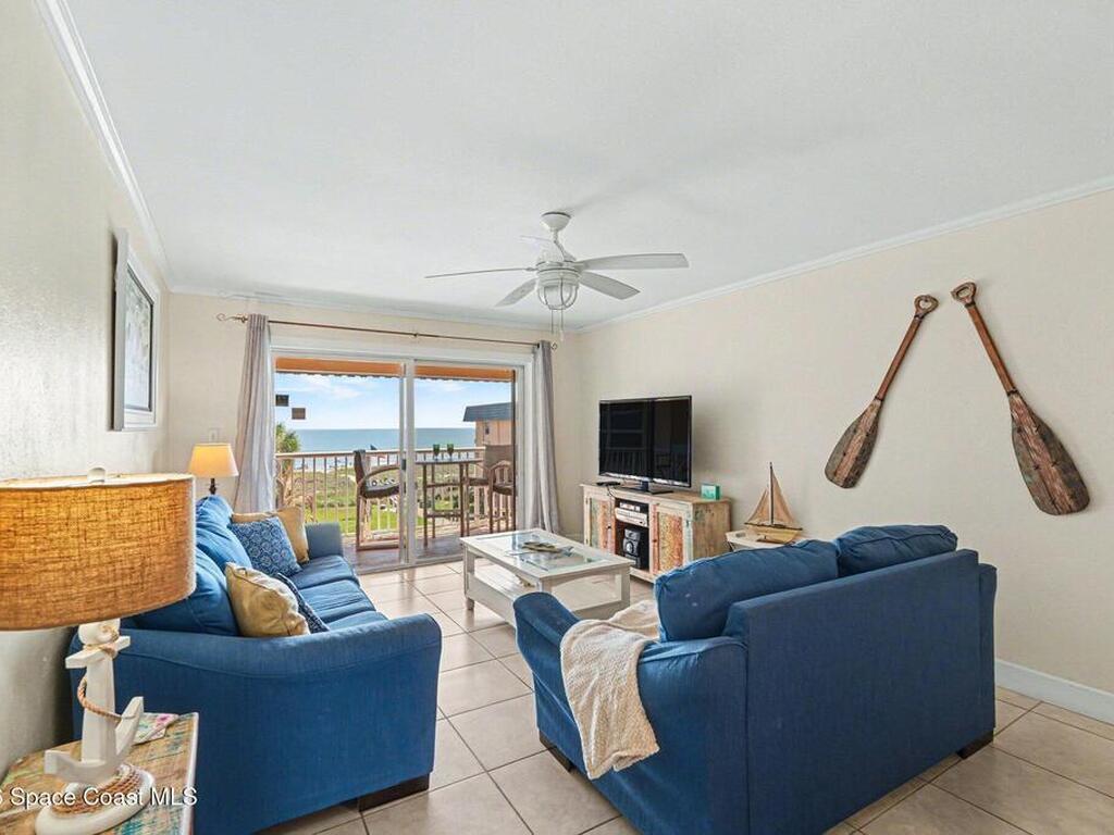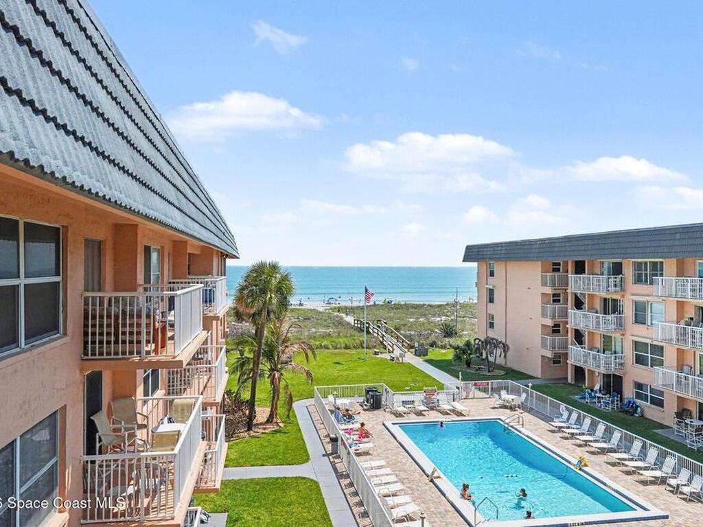 Welcome to your Spanish Main ocean view condo in Cocoa Beach! *TURN KEY-FURNISHED* Whether you are looking for a vacation getaway, investment property, or second home, this condo has it all. With a **3 DAY MINIMUM** rental allowed, you may continue to generate income when you are not enjoying the beautiful beach yourself. Located within a short walk or bike ride to downtown Cocoa Beach, (.5 mile) you have easy access to shopping, dining, and entertainment options. This stunning 2 bed 2 bath unit boasts an ensuite master bedroom and a generous guest bedroom. Plus, beach access, a community pool, inside laundry, and no carpet for easy maintenance. This end unit is located on the 4th floor, (top floor) offering views of the ocean and pool area. Do not miss out on this opportunity to own a piece of paradise on Cocoa Beach! Live the beach life! Make your call today!