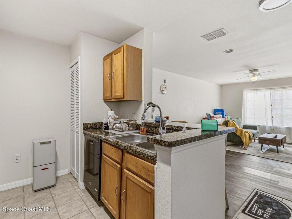 Great first floor 2/2 condo in the heart of Melbourne. This is a great opportunity to own a condo within walking distance to Florida Institute of Technology, nestled next to a city park with dog park, basketball court, sports fields and running track. Within minutes to downtown Melbourne major employers, and beaches. Unit complete with granite counter tops in kitchen and baths and stainless steel appliances. This will make a lovely home or great investment property! Unit is close to clubhouse, pool and tennis court. Lower maintenance fees with water/sewer included- property offers pool, tennis court, clubhouse and gym. Walk to Walmart grocery store. Tenant's lease ends 10/31/2026 and will convey with the sale.