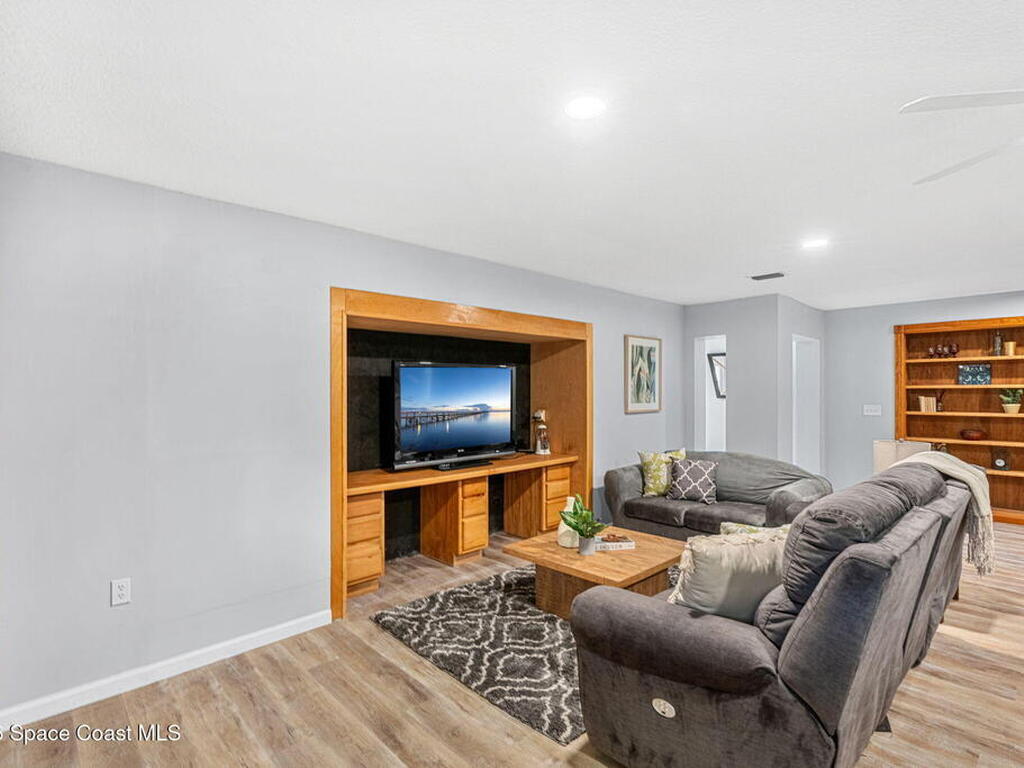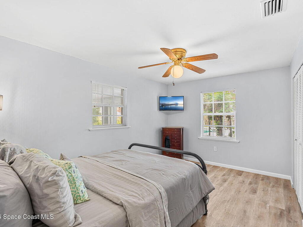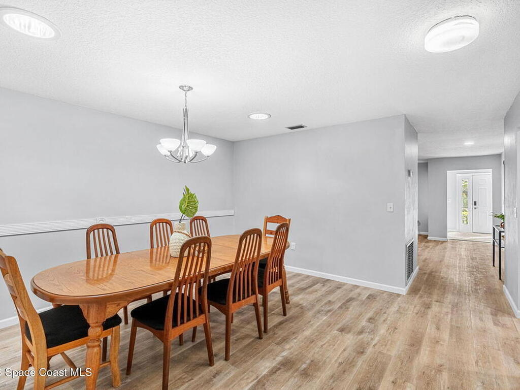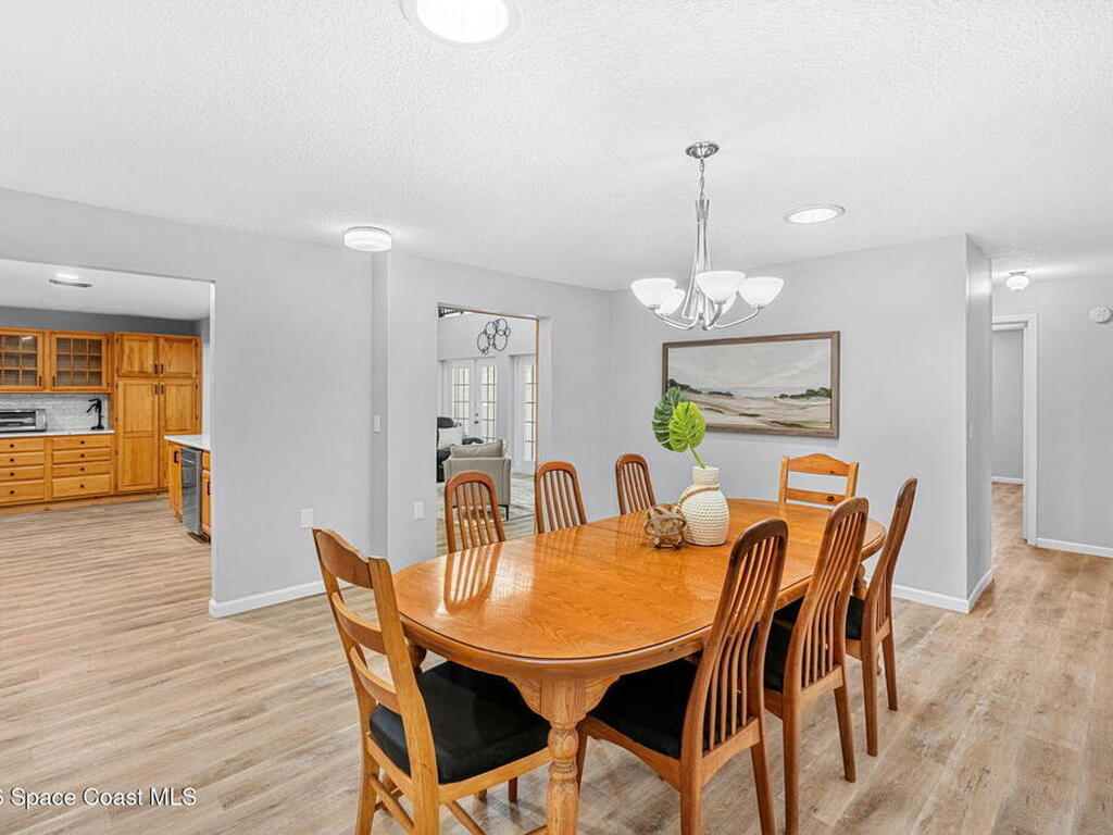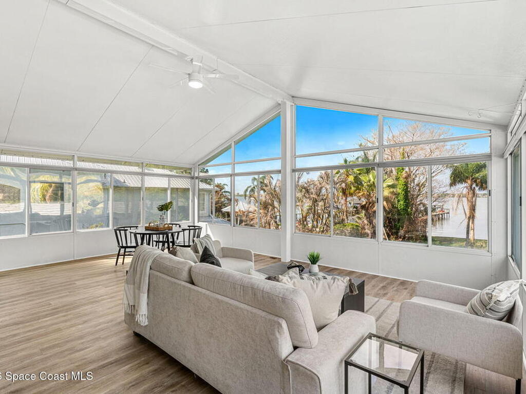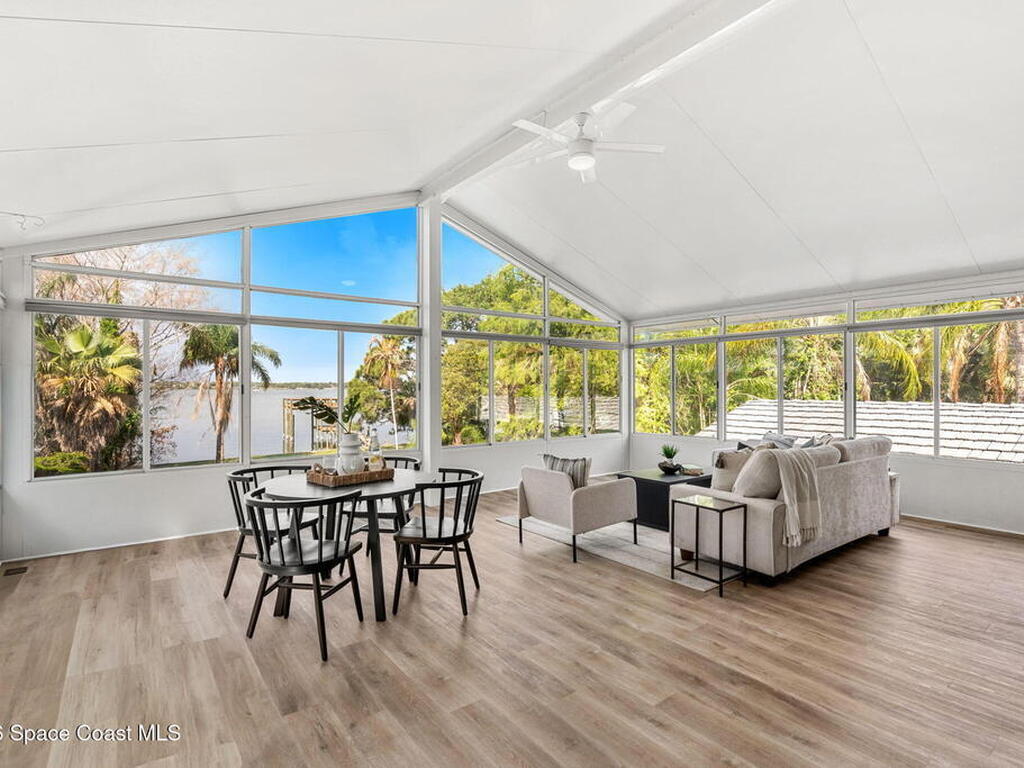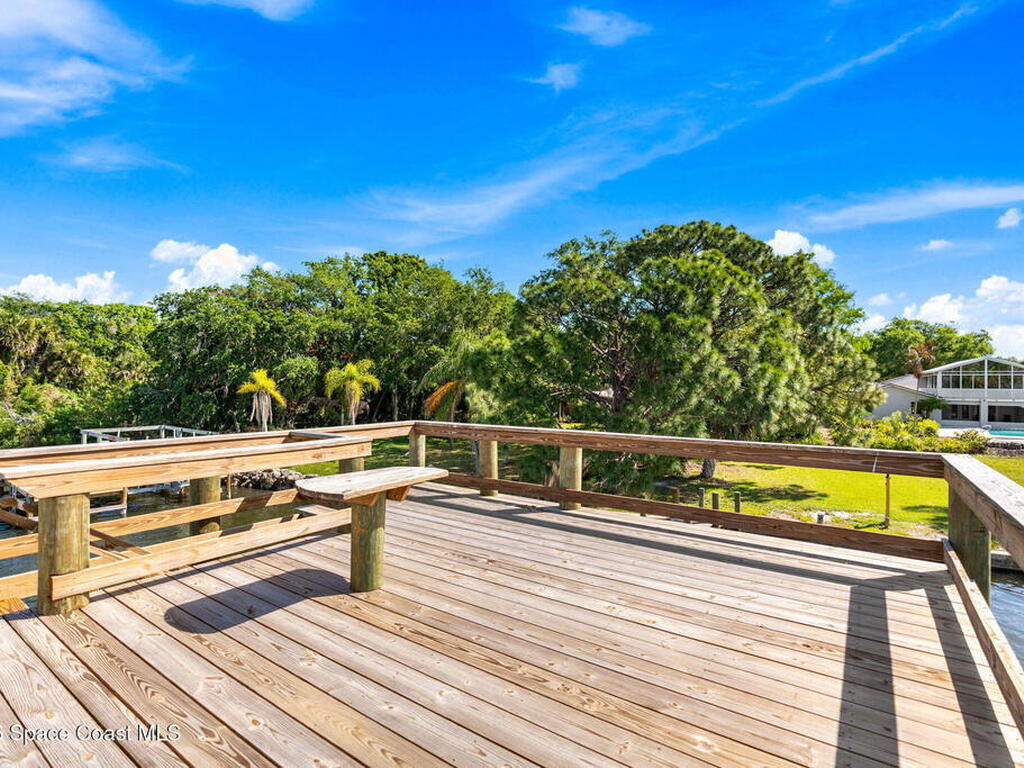 River views, a brand-new dock, and a pool that looks out across the water set the tone for a property designed around outdoor living. Tucked away on a quiet street in Merritt Island and spanning over half an acre, the setting offers rare privacy and space while still keeping the river and island lifestyle close at hand.Inside, the home carries a fresh, low-maintenance feel with LVP and tile flooring throughout. The kitchen features rich hickory wood cabinetry that brings warmth and natural character to the space. Thoughtful upgrades extend behind the walls as well, with durable PVC plumbing pipes already in place.The primary suite includes a cedar-lined closet, a timeless feature that adds both charm and functionality while naturally protecting wardrobe pieces. Step outside to the pool and lanai where the water view becomes the backdrop for everyday living. New tile is currently being installed on the lanai, further enhancing the outdoor entertaining space.
