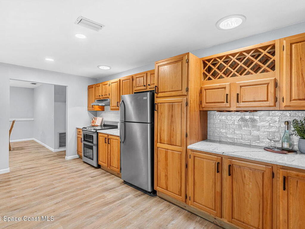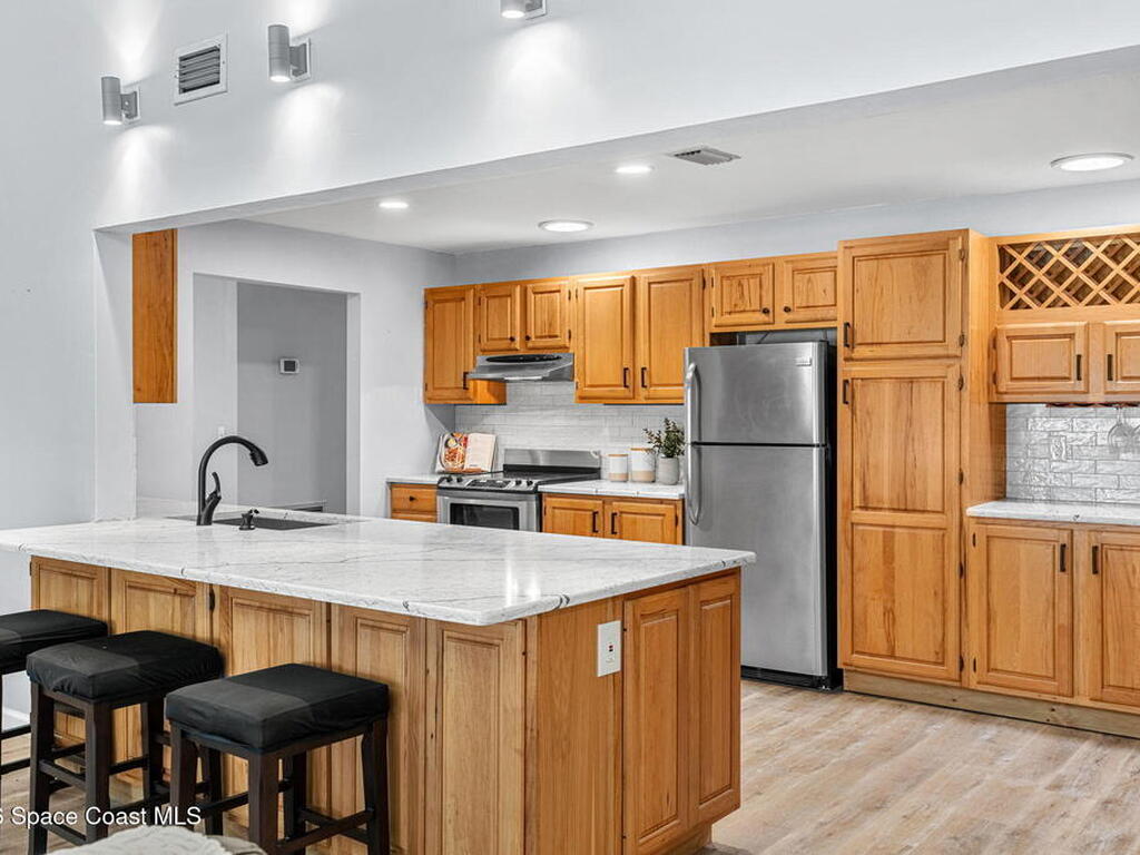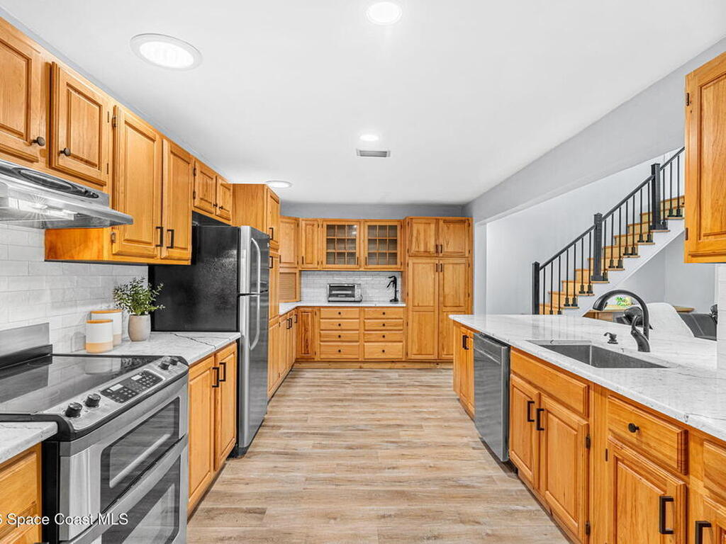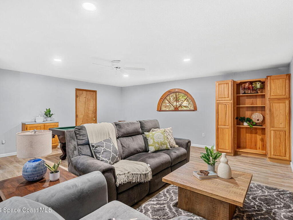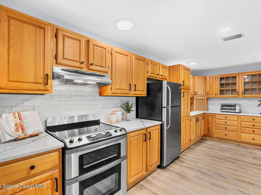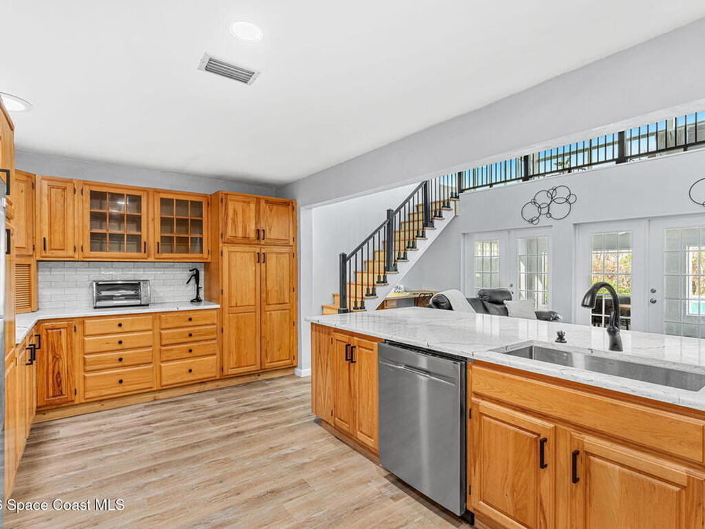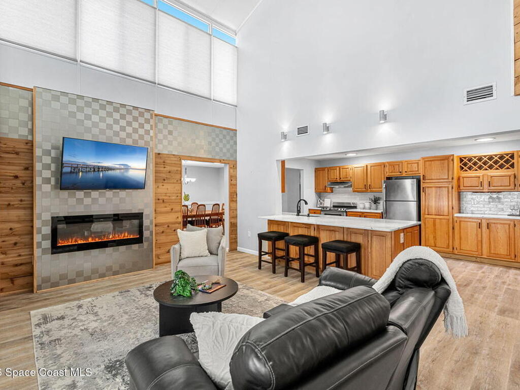 River views, a brand-new dock, and a pool that looks out across the water set the tone for a property designed around outdoor living. Tucked away on a quiet street in Merritt Island and spanning over half an acre, the setting offers rare privacy and space while still keeping the river and island lifestyle close at hand.Inside, the home carries a fresh, low-maintenance feel with LVP and tile flooring throughout. The kitchen features rich hickory wood cabinetry that brings warmth and natural character to the space. Thoughtful upgrades extend behind the walls as well, with durable PVC plumbing pipes already in place.The primary suite includes a cedar-lined closet, a timeless feature that adds both charm and functionality while naturally protecting wardrobe pieces. Step outside to the pool and lanai where the water view becomes the backdrop for everyday living. New tile is currently being installed on the lanai, further enhancing the outdoor entertaining space.