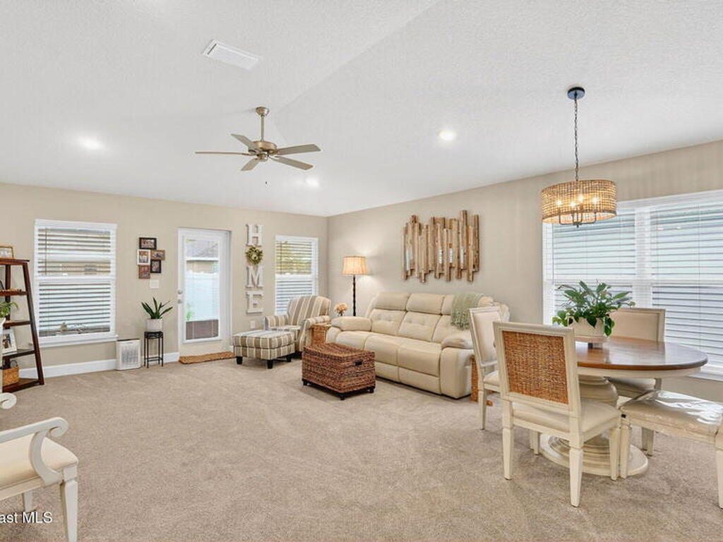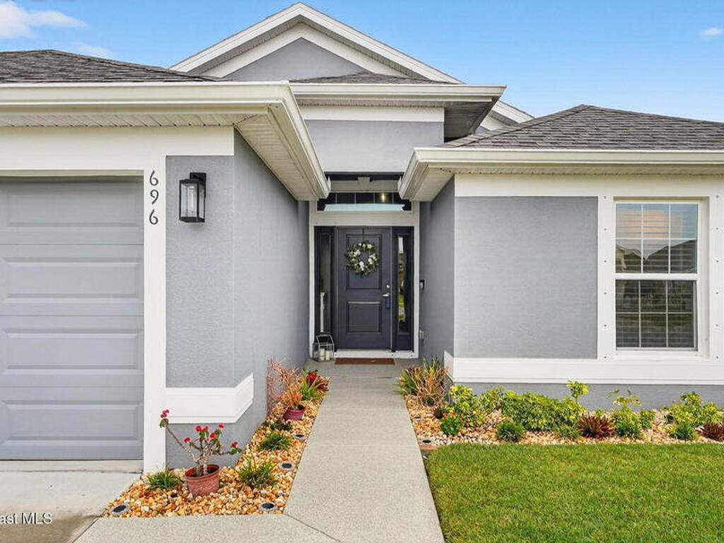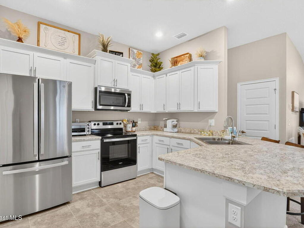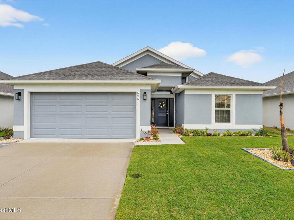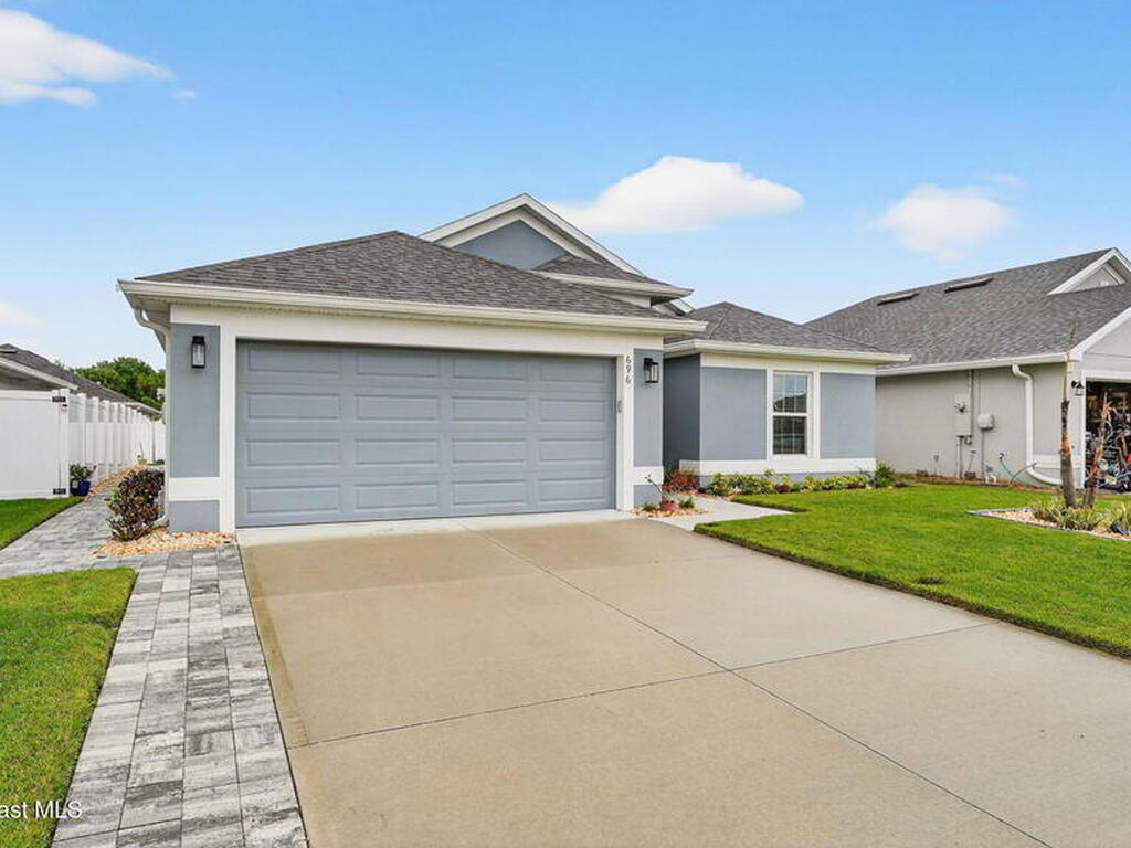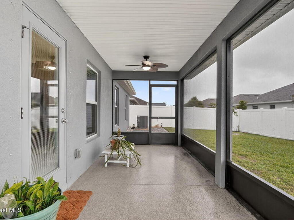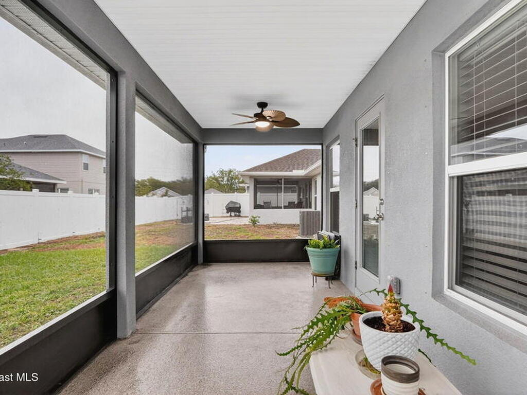 Impeccably Maintained 4 Bedroom Home in Hickory Ridge. Built in 2023, but it Looks Brand New! This Split Floorplan Has Soaring Ceilings, Neutral Finishes & Upgrades! Fantastic Layout with Open Kitchen, Dining & Living Areas. Master Suite has a Walk-In Closet, Double Sinks & Shower w/ Glass Doors. Three More Spacious Bedrooms and Shared Full Bath. The 20x8 Patio was Screened In, Double Ceiling Fans & Shark Coated Floors (Also, in garage and front entry). Extended Paver Driveway & Sidewalks Installed Plus Lush Landscaping! Centrally Located Just Minutes From KSC, Beaches & Orlando! This Low Maintenance Home is Turn Key & Ready to Move-In!