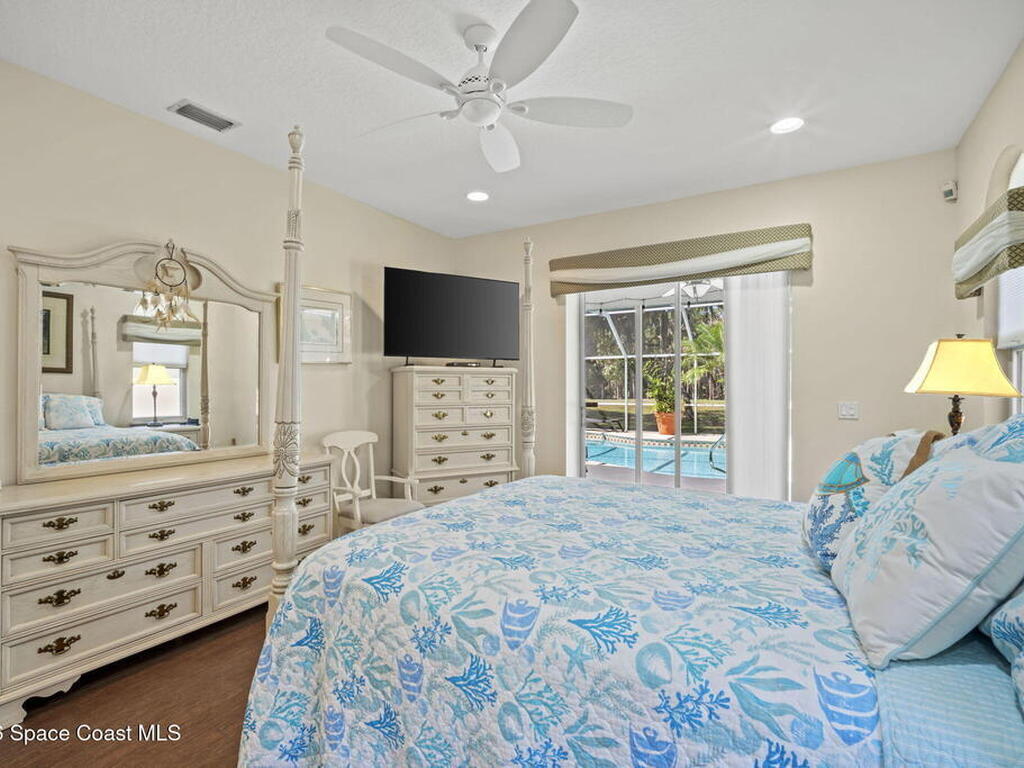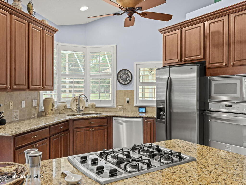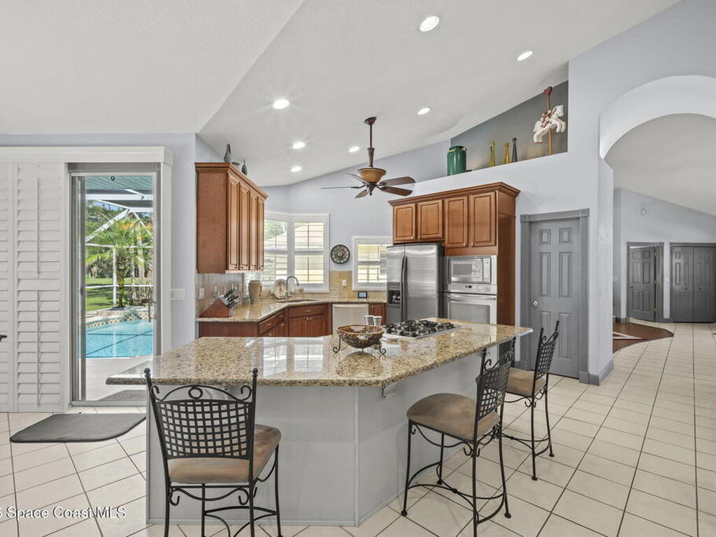 Set within The Savannahs, Merritt Island's scenic golf course community, this home offers the lifestyle you've been searching for. Enjoy coffee in the Living Room or Breakfast Nook, both overlooking the Screened, Solar-Heated Pool, while the Family Room feels open and inviting with Vaulted Ceilings and Natural Light. Plantation Shutters, Tile throughout and a Split Floor Plan add comfort, style and function. The Kitchen features Granite Counters, SS Appliances, a Gas Cooktop and access to both casual and formal Dining Spaces. A spacious Primary Suite, 2025 Roof, Tankless Water Heater, Paid-off Solar Pool Panels and Inside Laundry add lasting value. Community Amenities include the Gordon Lewis-designed Space Coast Golf Club, Tennis Courts and Playground. Minutes from KSC, SpaceX, Blue Origin, Port Canaveral, Beaches, Mitchell Ellington Park and KARS Park with Boat Ramp + prime Rocket Launch Views!