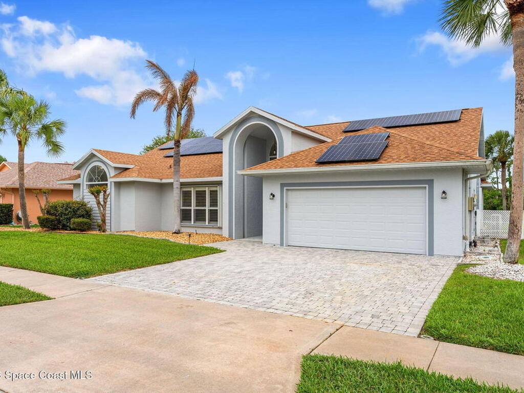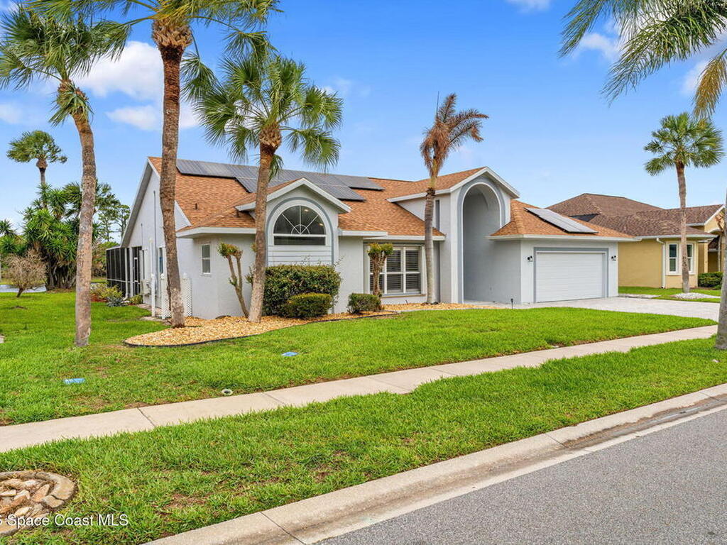 This beautifully updated 4-bedroom, 2-bath pool home is perfectly situated on a tranquil lake in the highly desirable Villa de Palms community. Offering a bright and open floor plan, the home is designed for both comfortable living and effortless entertaining.The interior features a brand-new kitchen with modern finishes, complemented by fully renovated bathrooms. Natural light fills the spacious living areas, creating a warm and inviting atmosphere.Step outside to your private backyard retreat, where a freshly resurfaced pool overlooks serene lake views-perfect for relaxing or hosting gatherings year-round.Major updates include a new roof (2025) and fully paid-off solar panels that significantly reduce energy costs, resulting in a minimal electric bill-providing both efficiency and long-term savings.Ideally located near major roadways, beautiful beaches, and top-rated schools, this home combines convenience with a peaceful setting. A true move-in-ready gem.
