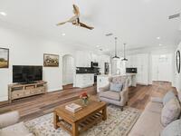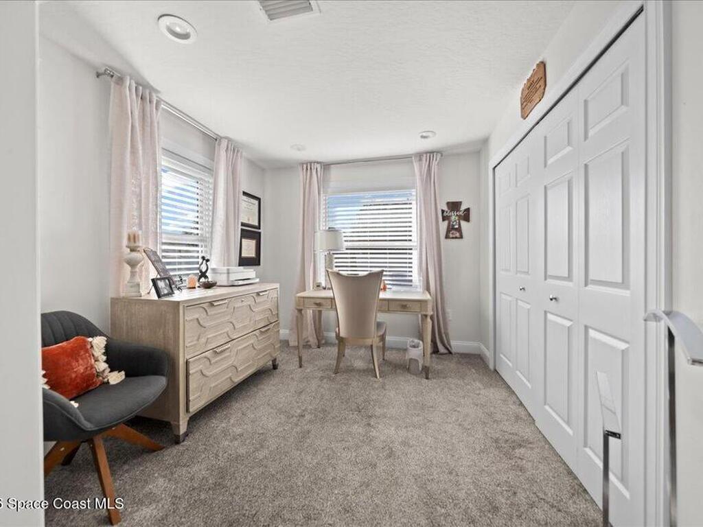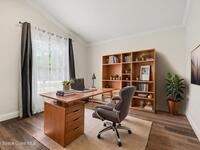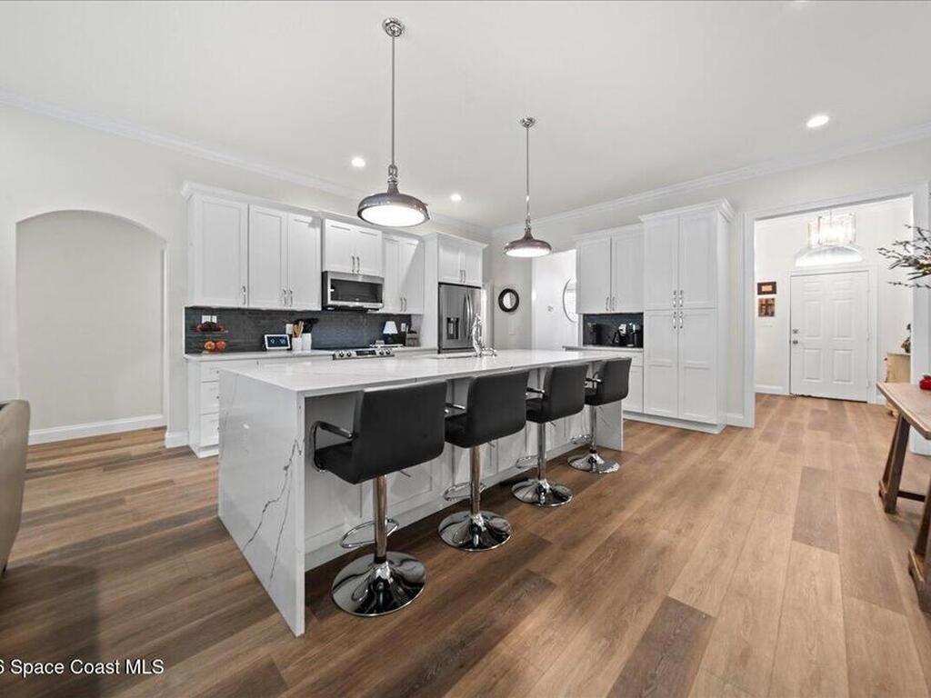 Tucked away on a quiet cul-de-sac is this updated home in the highly desirable Laurel Run at Meadowridge community, where modern style meets everyday comfort. From the moment you step inside, you'll appreciate the bright and inviting atmosphere, highlighted by a stunning contemporary kitchen designed for both daily living and entertaining. The large center island anchors the space, complemented by custom cabinetry, Quartz countertops, abundant storage, stainless steel appliances (2021), and a sleek tile backsplash. The flexible floor plan includes a possible office or fifth bedroom, offering options for remote work, guests, or growing families. Step outside and enjoy morning coffee or evening gatherings on the expansive 22' x 18' screened patio, overlooking a spacious backyard with plenty of room to relax, play, or entertain. Recent upgrades add peace of mind and style throughout, including a roof installed in 2021, newer windows and sliding glass patio door, updated Delta fixtures