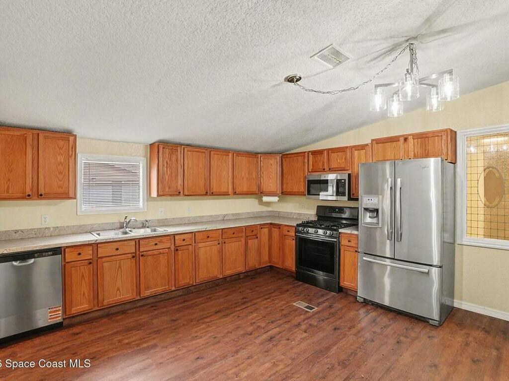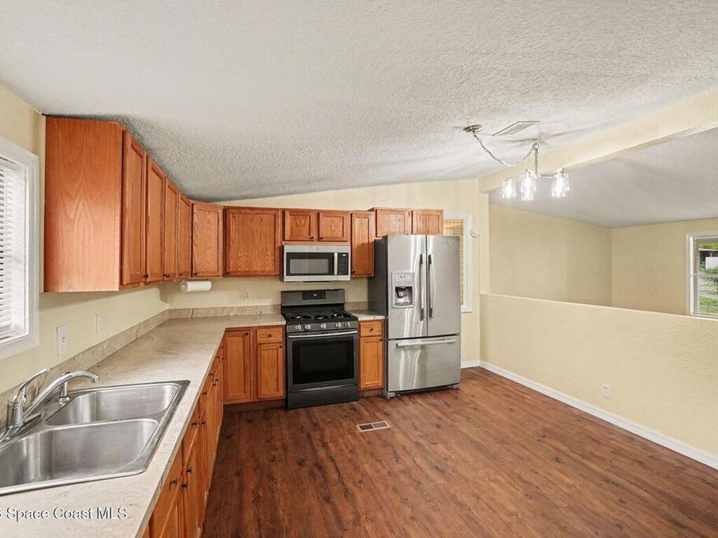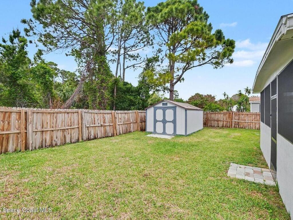 Welcome to this well-maintained 3-bedroom, 2-bath home in the Cocoa Bay community! This home features a spacious open floor plan with a large eat-in kitchen offering plenty of cabinet space, pantry, stainless steel appliances and great functionality for everyday living.The split bedroom layout provides added privacy, while the master suite includes a walk-in closet and en-suite bath. Laminate flooring runs throughout the main living areas, with tile in the bathrooms for easy maintenance. Additional features include an inside laundry room, a huge, screened in porch perfect for relaxing, and a fenced backyard with a storage shed for extra space. Covered parking is provided with a carport. Conveniently located near schools, shopping, dining, and just a short drive to the beaches, with easy access to I-95 and the Beachline for commuting.
