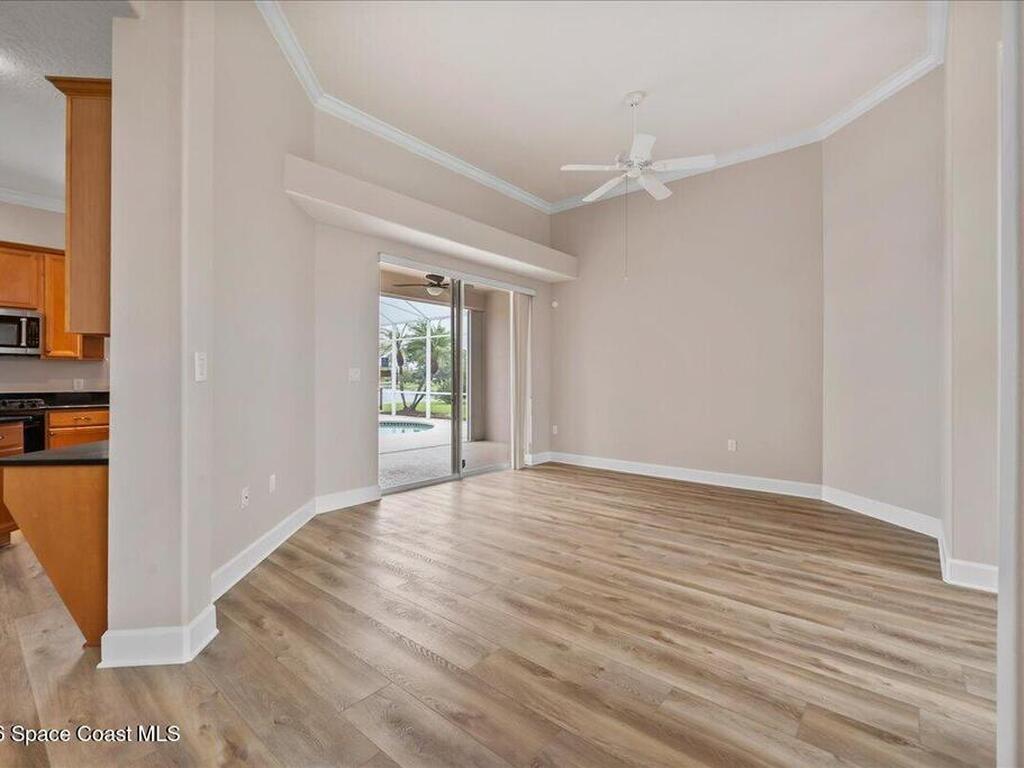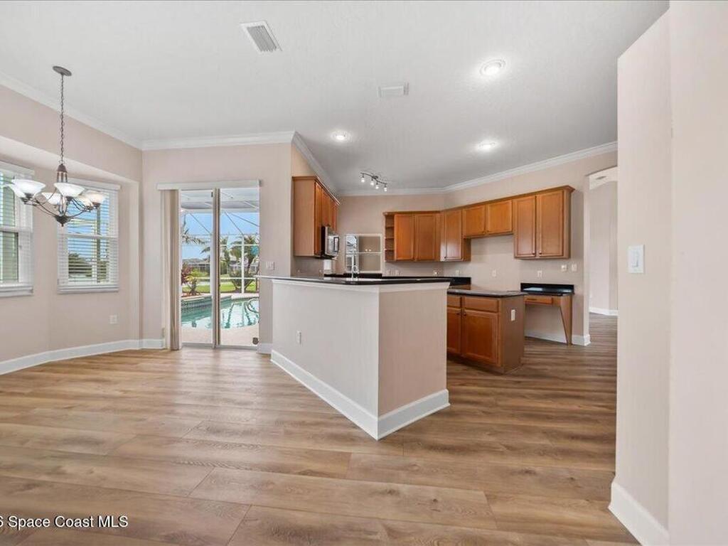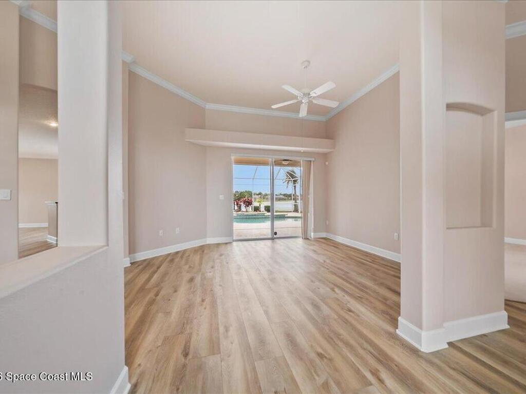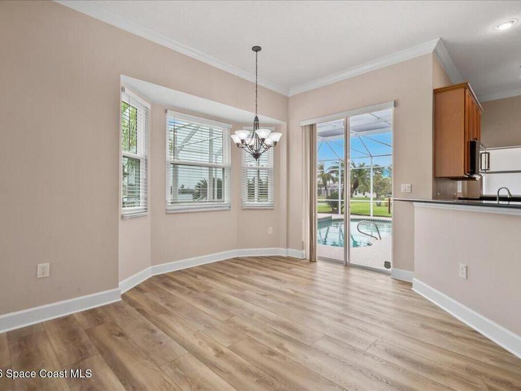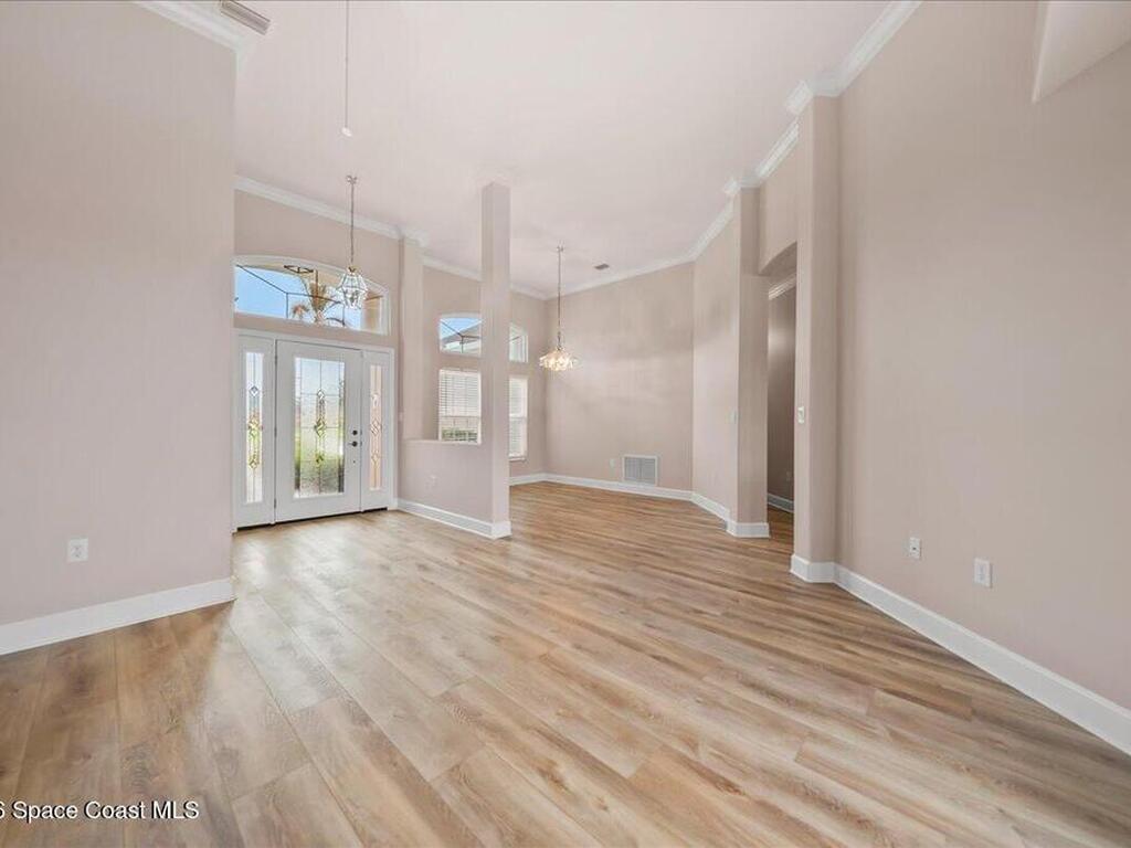 Live the Florida Lifestyle at Its Absolute Finest in the Heart of Viera. Welcome to an amazing pool home that truly defines what it means to live the Florida dream. Perfectly positioned on a premium waterfront lot with a long, tranquil lake view, this property offers a daily backdrop of shimmering water, colorful sunsets, and peaceful serenity that never gets old. From the moment you arrive, the extended driveway sets the tone--offering both impressive curb appeal and plenty of space for guests. Step through the brand-new leaded glass front door with sidelights, and you're immediately greeted by a light-filled interior enhanced by fresh interior and exterior paint, creating a crisp, move-in-ready experience. Inside, the home exudes style and comfort with luxury vinyl plank flooring in neutral tones, perfectly complemented by elegant crown molding that adds a refined, high-end feel throughout the main living areas. The kitchen is built to impress with real wood cabinetry**continued